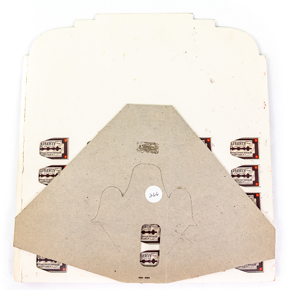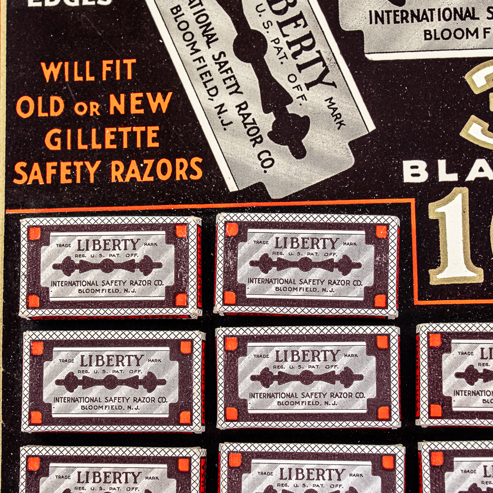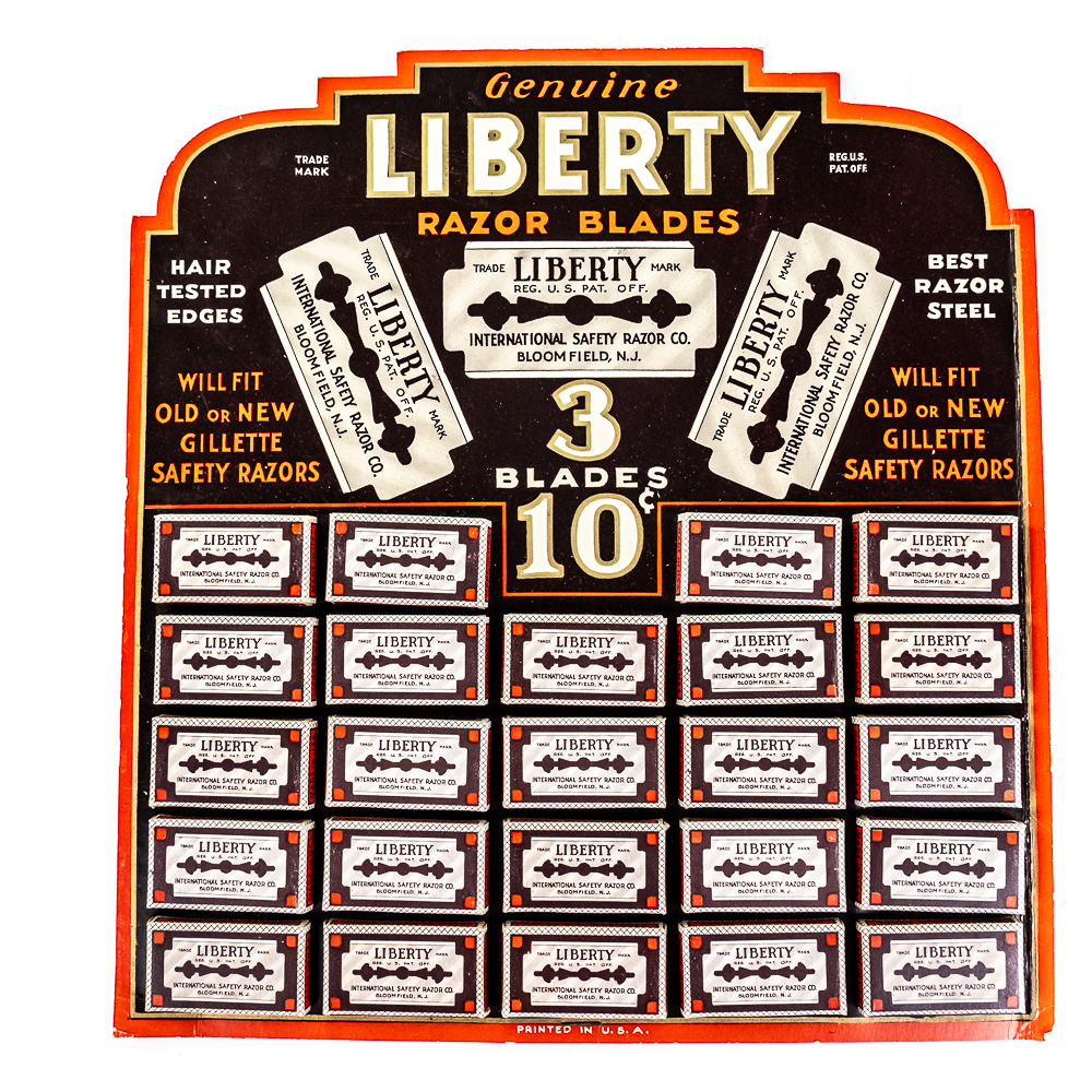 Vintage Liberty Razor Blade Display, Bloomfield, NJ, comes with 24 blade boxes, good condition, see photos, 11 1/2″ x 12 1/2″