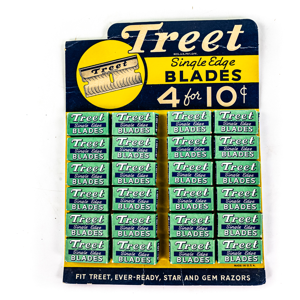 Vintage Treet Razor Blade Display, USA, comes with 24 blade boxes, minor creases, see photos, 8 1/2″ x 11″