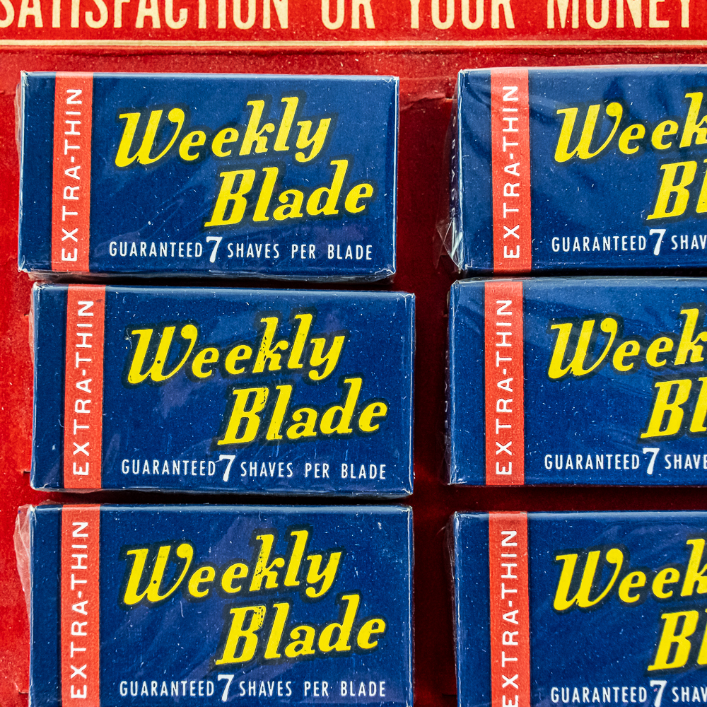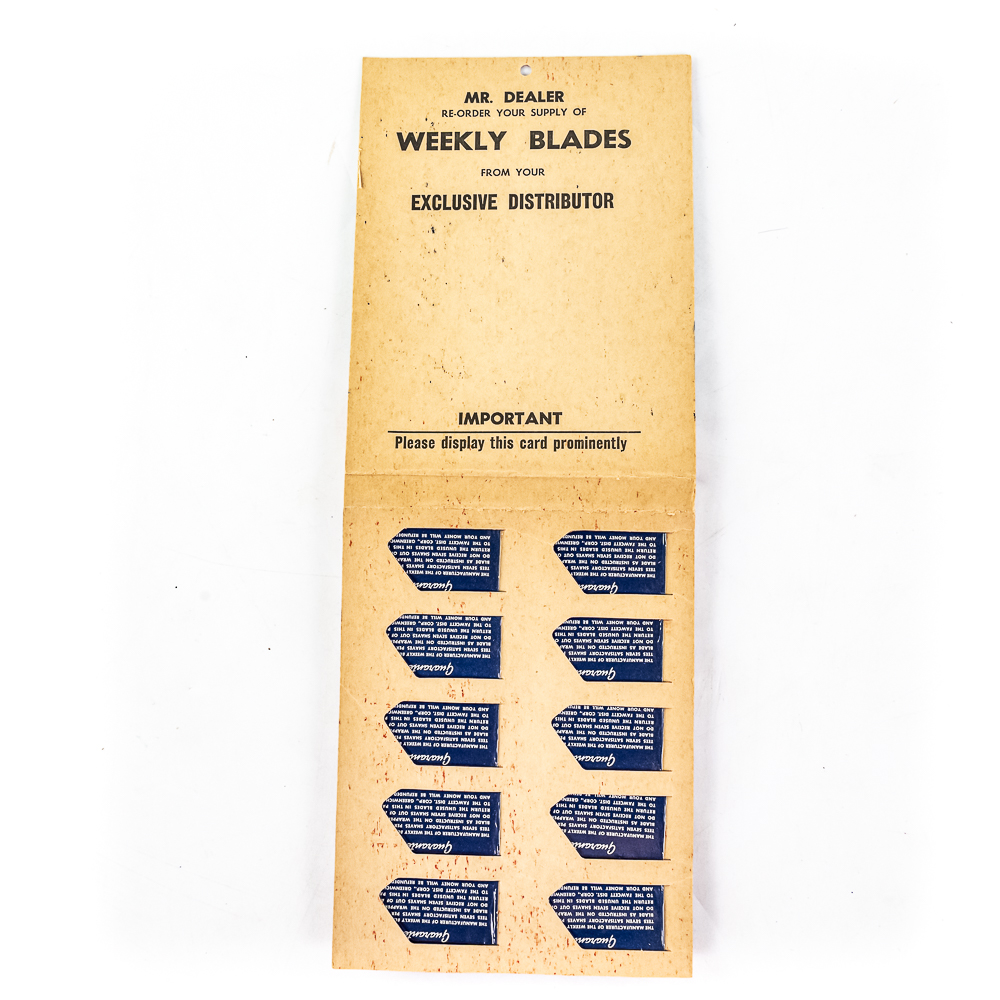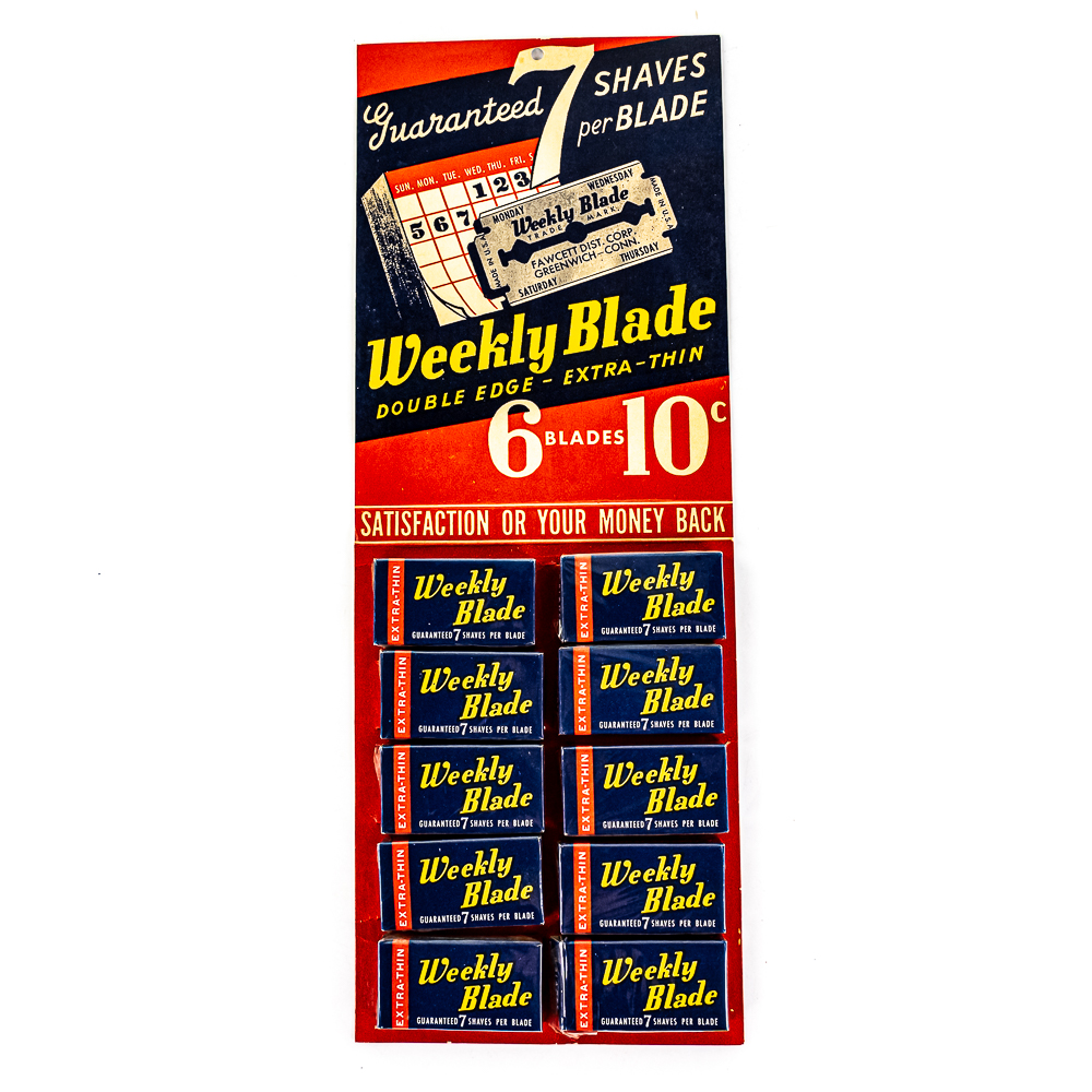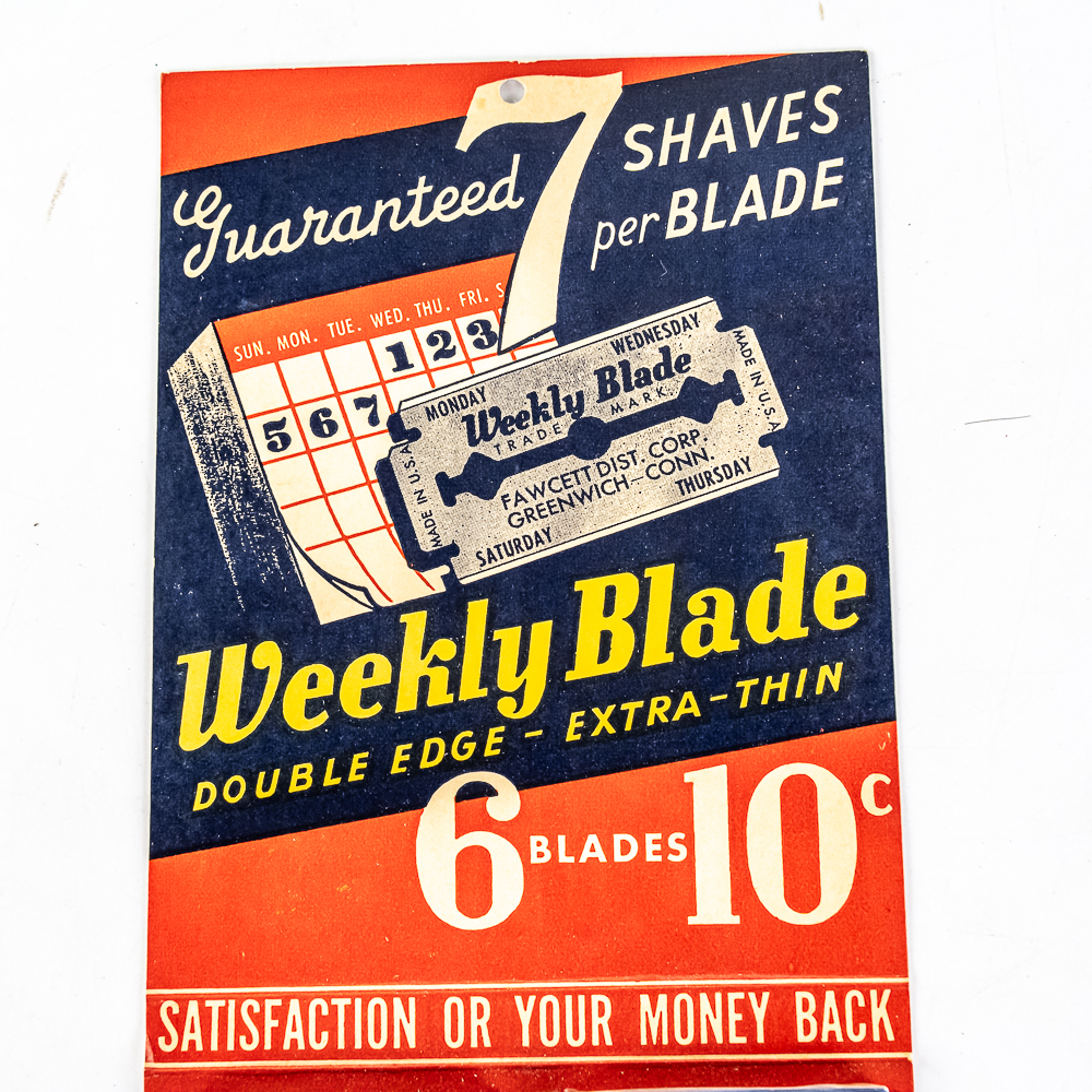 Vintage Weekly Blade Razor Blade Display, Greenwich, CO, comes with 10 blade boxes, good condition, see photos, 5 1/2″ x 14″