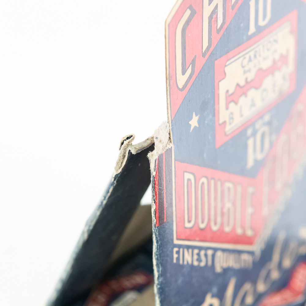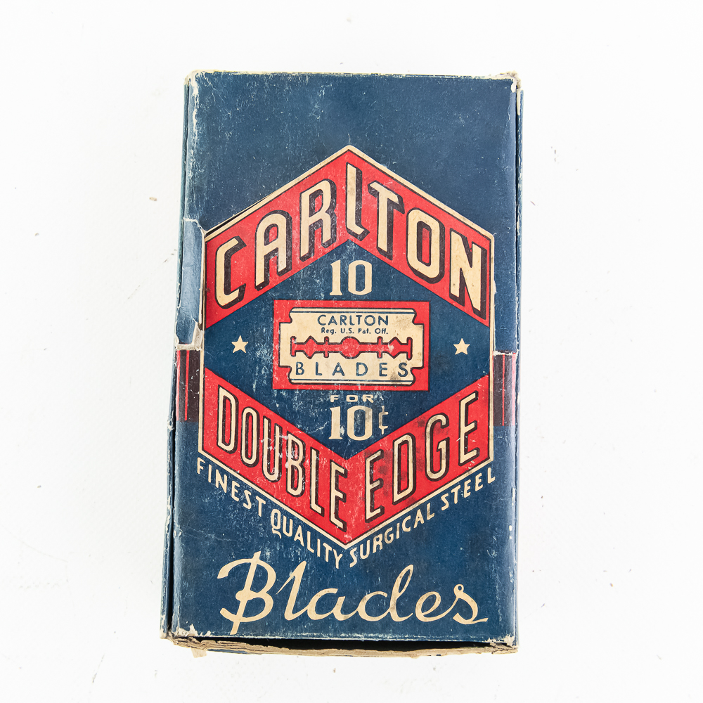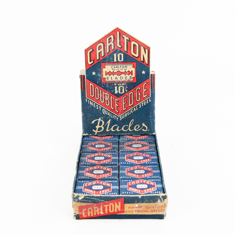 Vintage Box of Carlton Razor Blade Boxes includes 36 packages inside, see photos for condition.