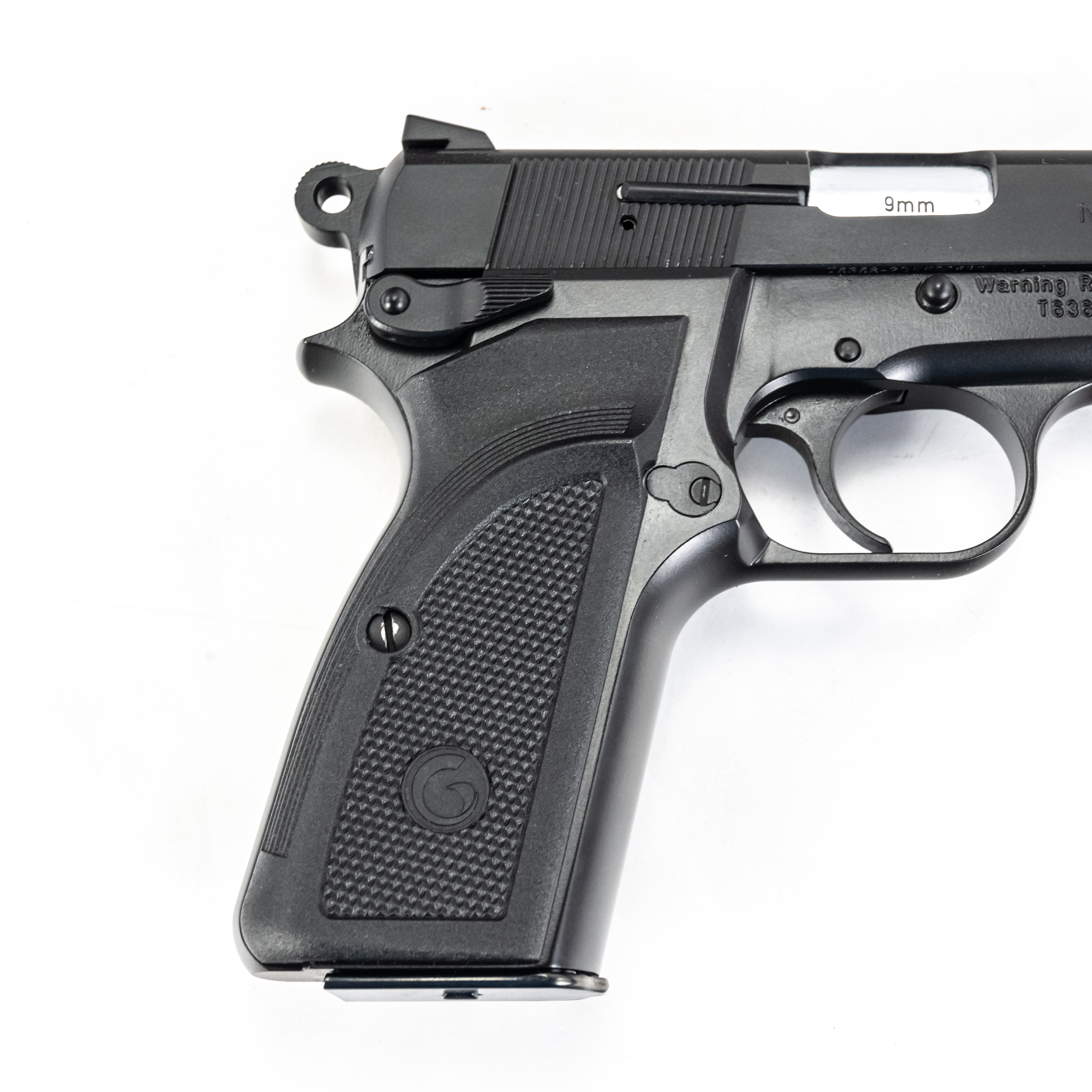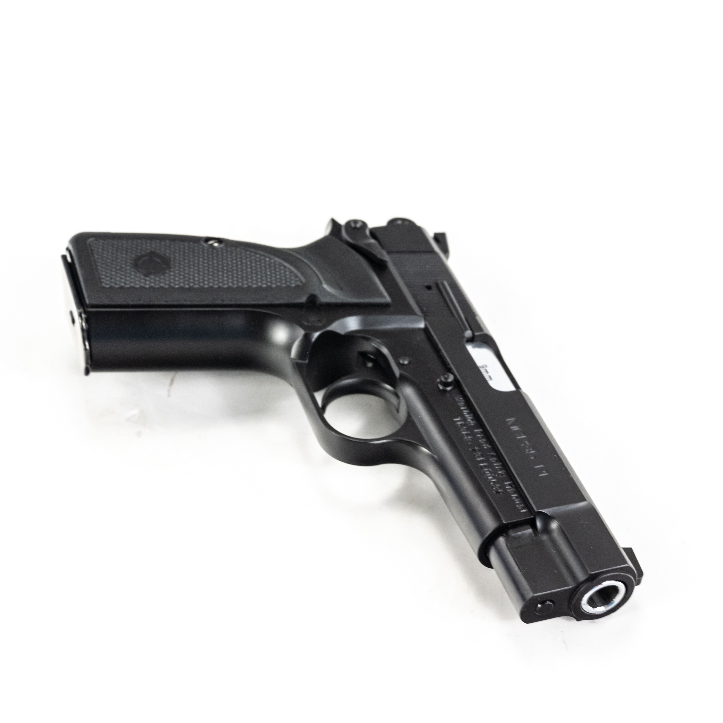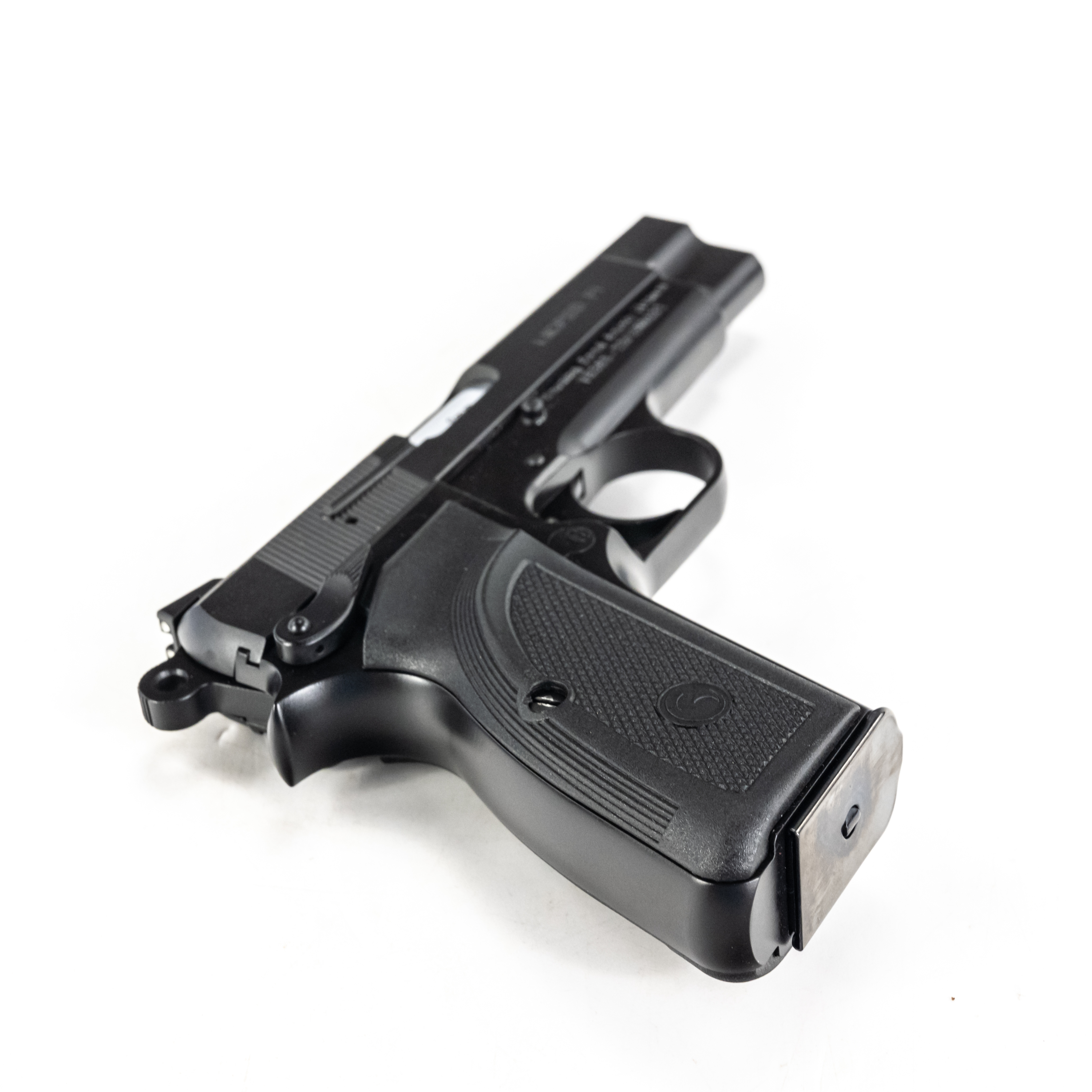 Girsan MCP35 PI pistol. Caliber 9mm Luger. Mid size copy of Browning Hi-Power design. Turkish made all steel pistol is like new in box and appears unfired. Smaller dimensions make pistol perfect for concealed carry. See photos.