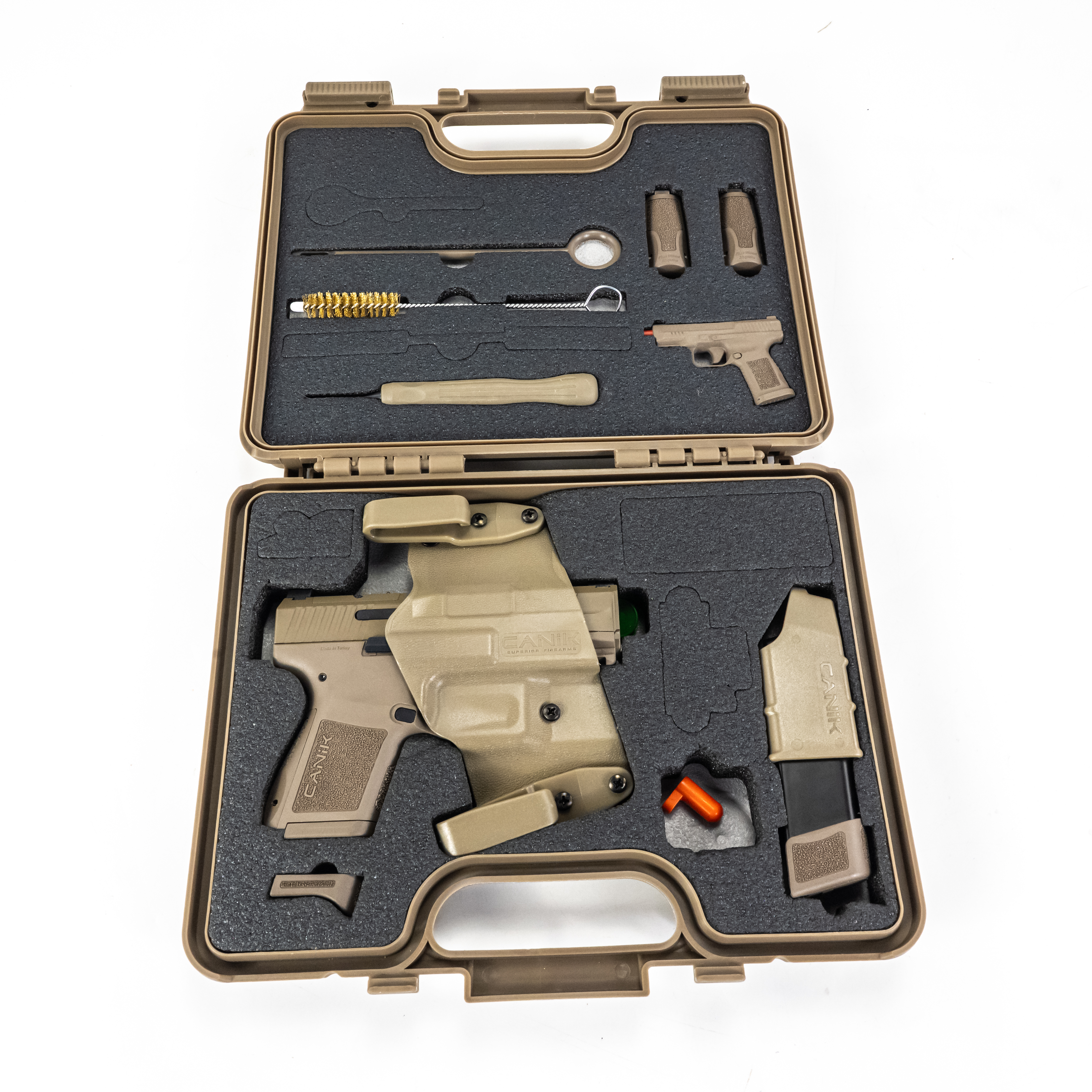 Canik METE MC9 Pistol. Caliber 9mm Luger. Turkish made Micro-compact concealed carry pistol with factory optics cut. FDE finish gun appears to be like new in hard case with all accessories. Full set up for concealed carry . See photos.
