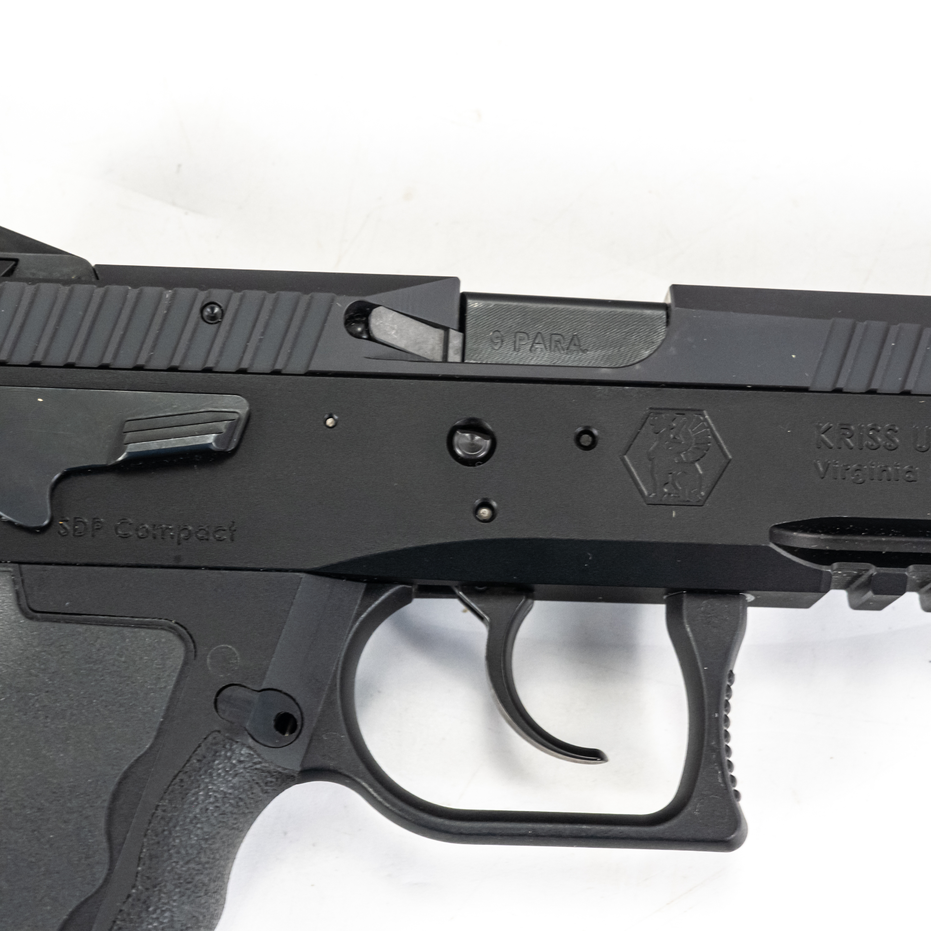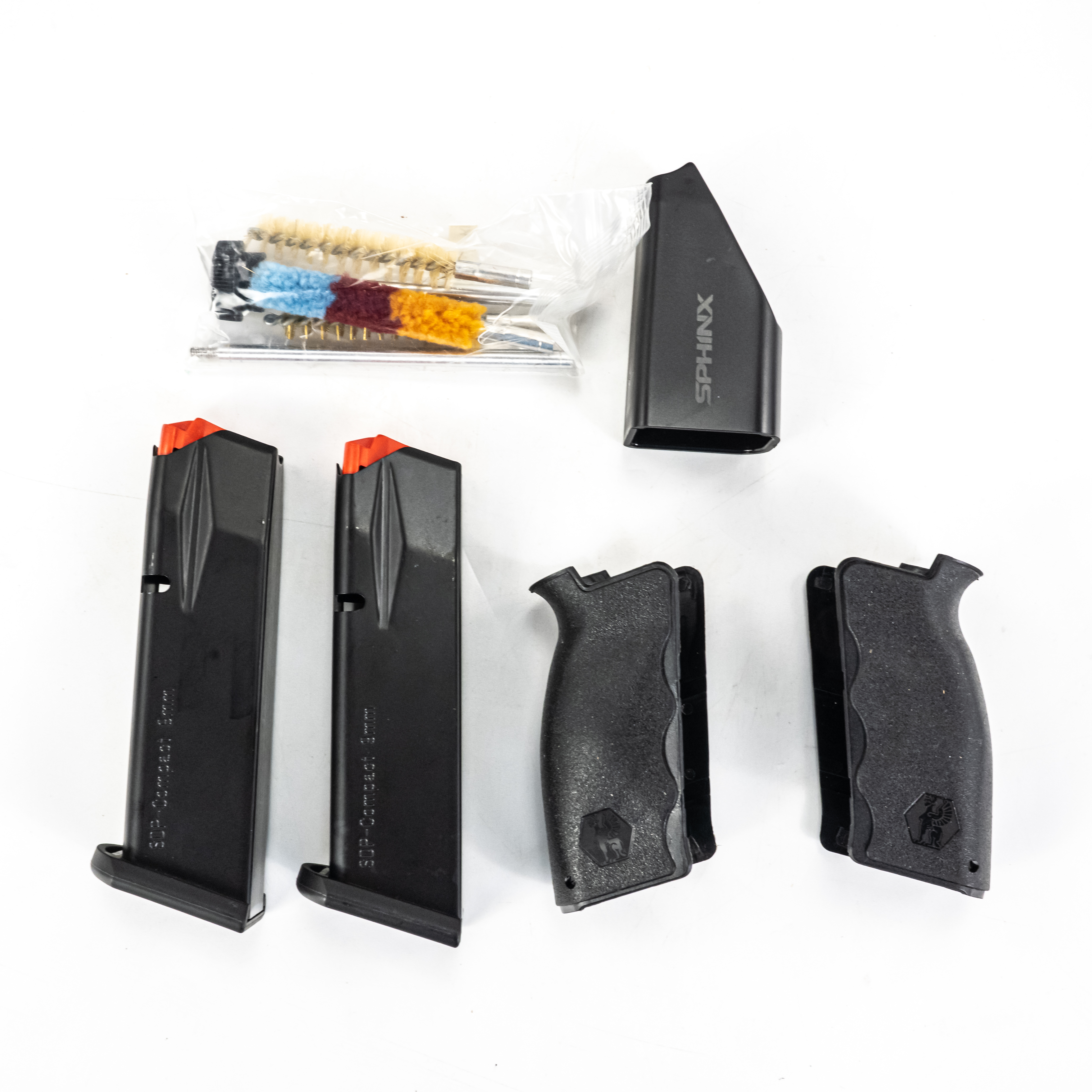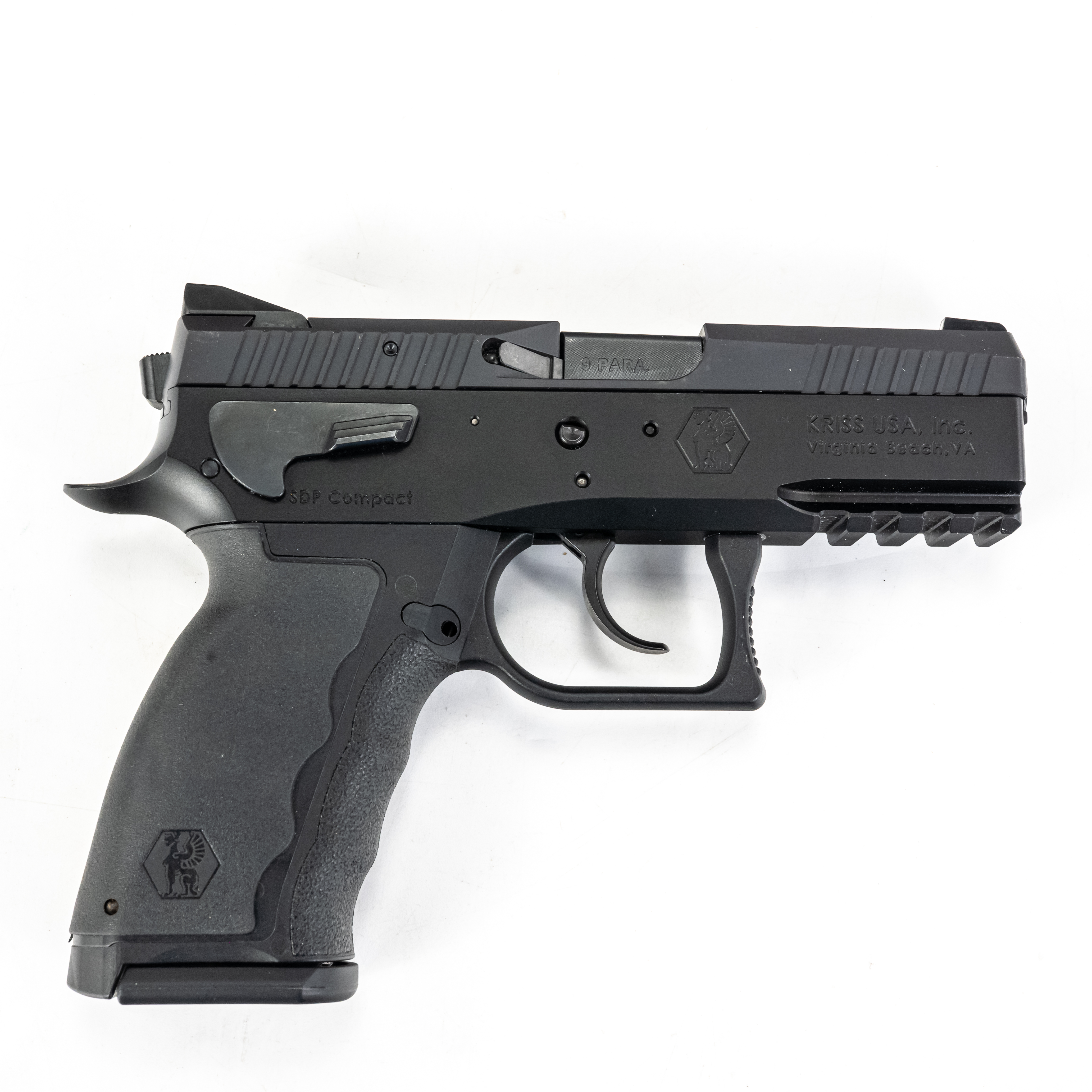 Kriss USA Sphinx SDP Pistol. Caliber 9mm. CZ-75 pattern pistol made in Switzerland. Extremely well fitted metal frame pistol made for personal defense. SA/DA action with decocker. Pistol appears to be new and unfired in box with extra magazines and palm swells. Very hard to find. See photos.
