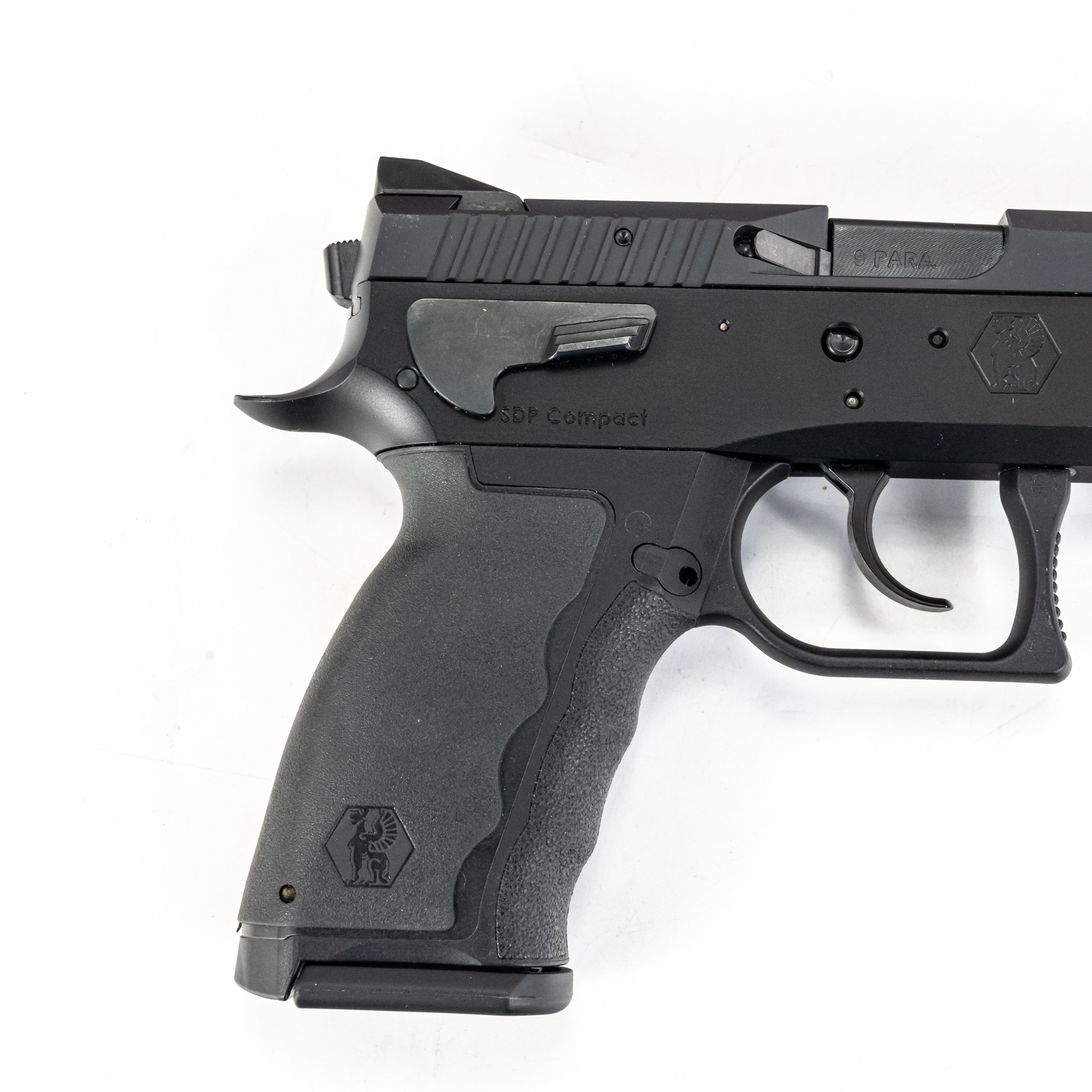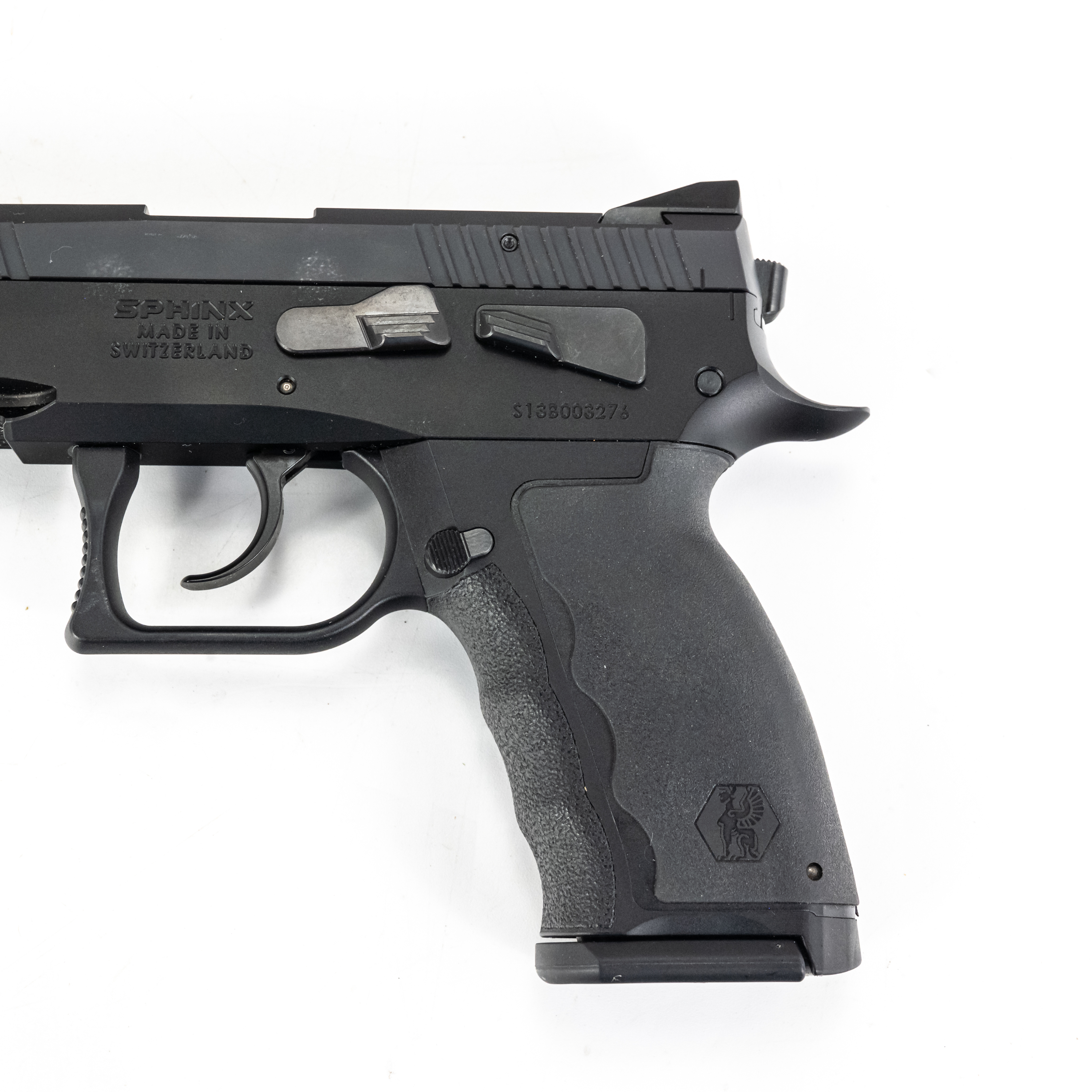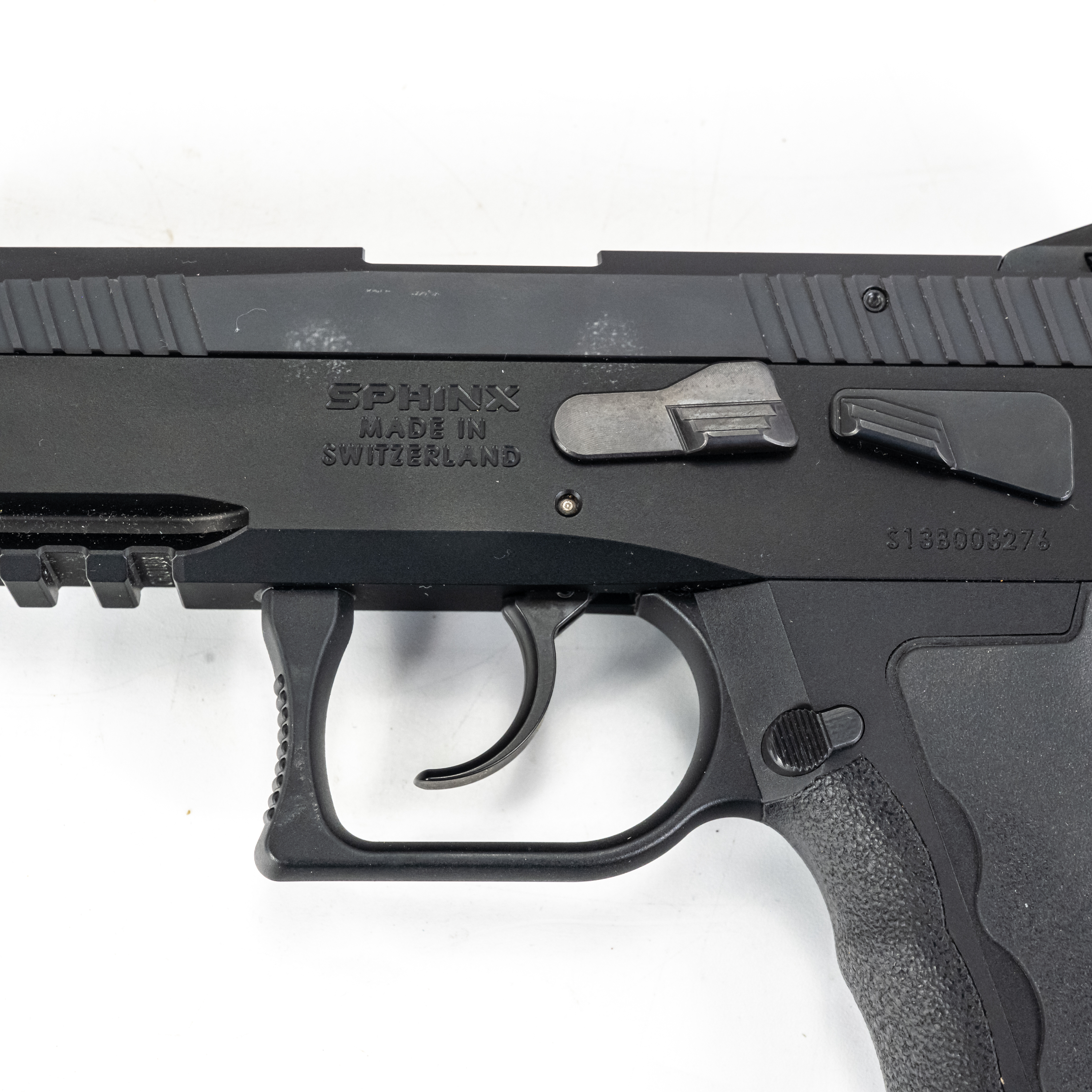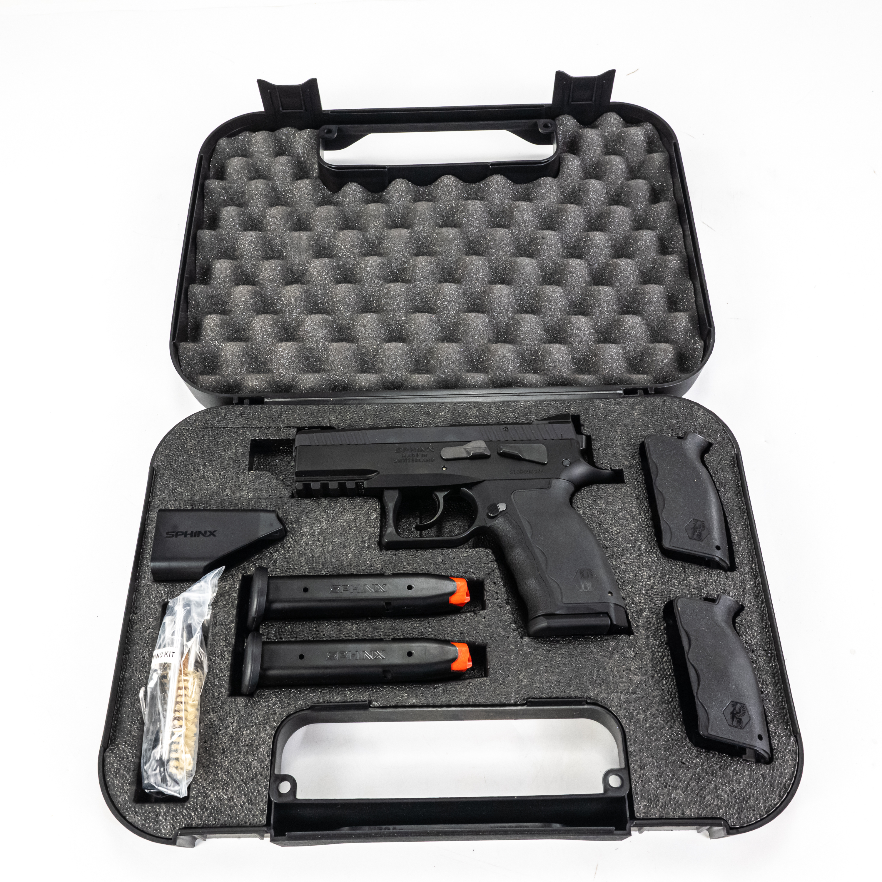Kriss USA Sphinx SDP Pistol. Caliber 9mm. CZ-75 pattern pistol made in Switzerland. Extremely well fitted metal frame pistol made for personal defense. SA/DA action with decocker. Pistol appears to be new and unfired in box with extra magazines and palm swells. Very hard to find. See photos.