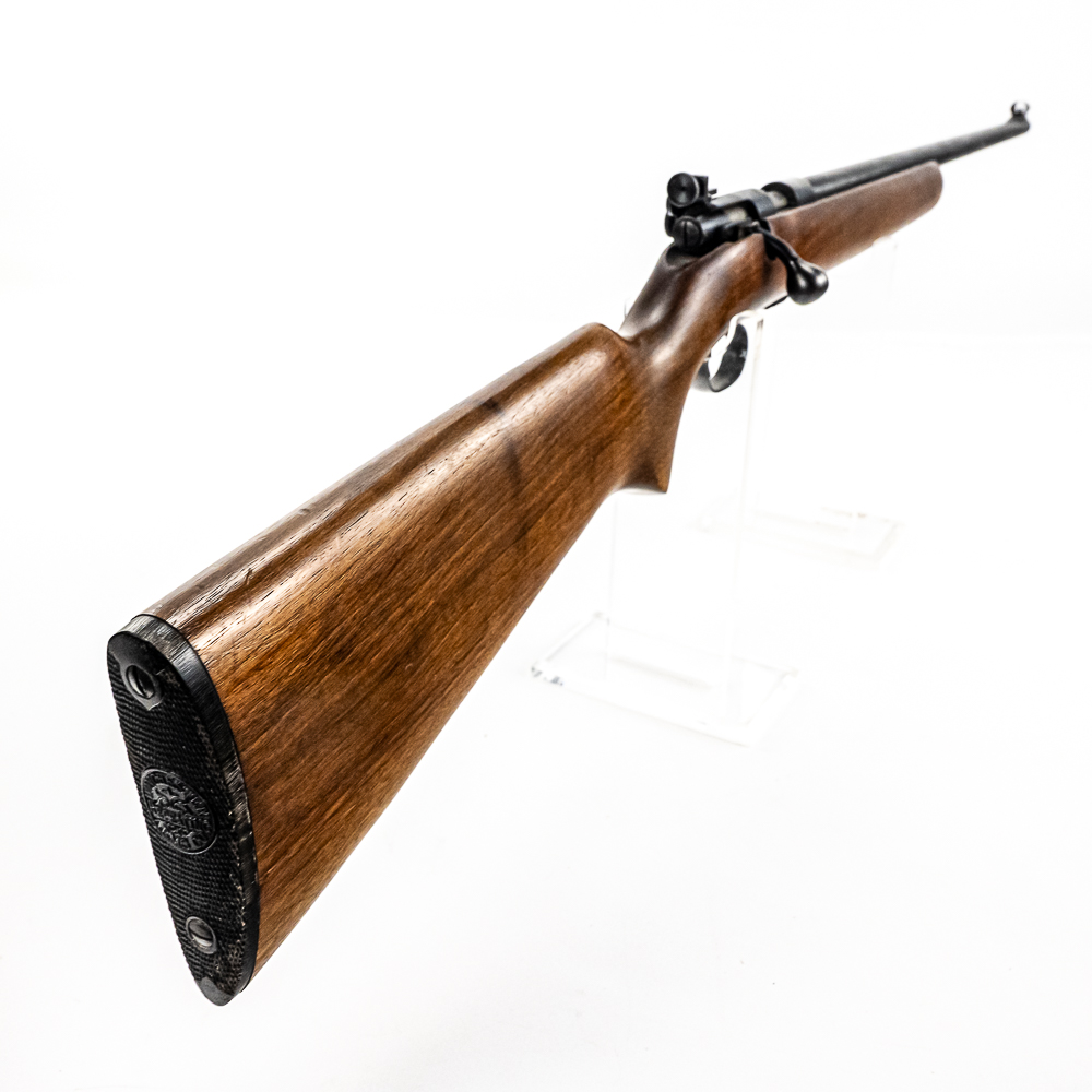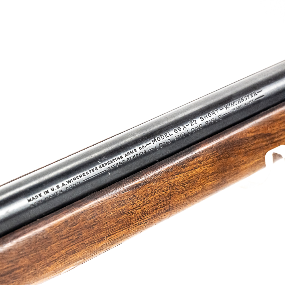 Winchester 69A 22lr Rifle in very good condition with light wear. The bore is very good. Comes with peep rear sight, hooded front sight and 1x magazine. C&R Eligible NSN