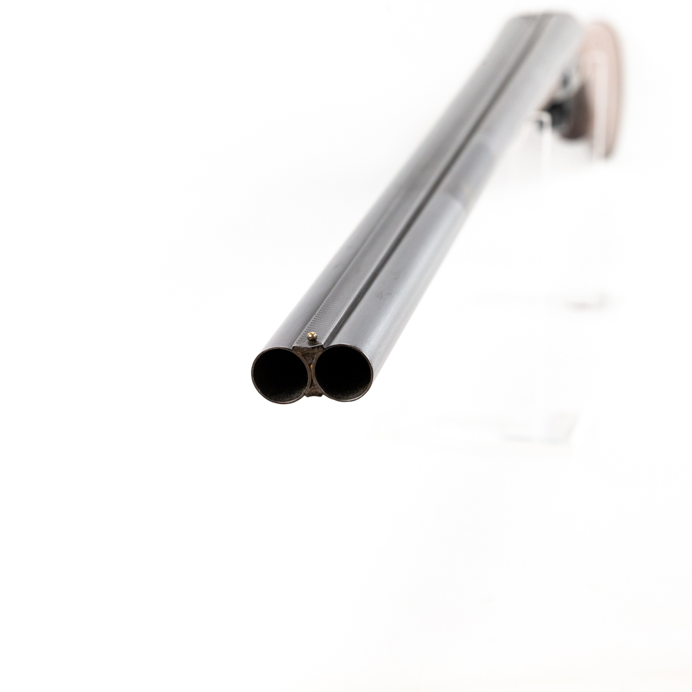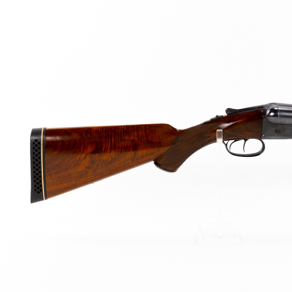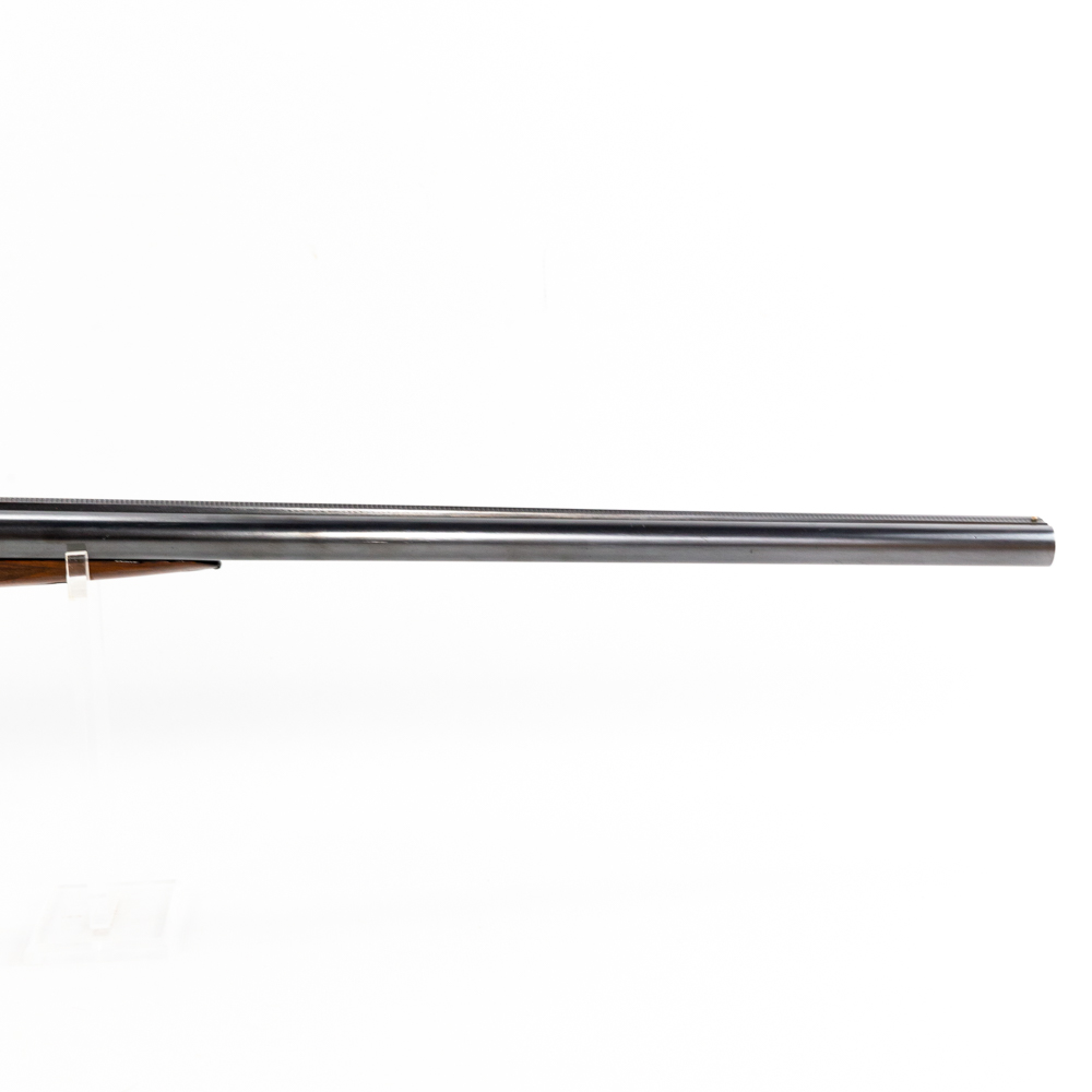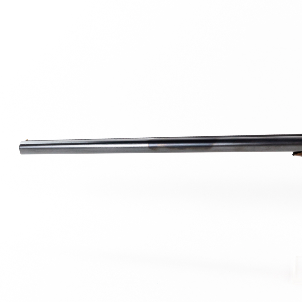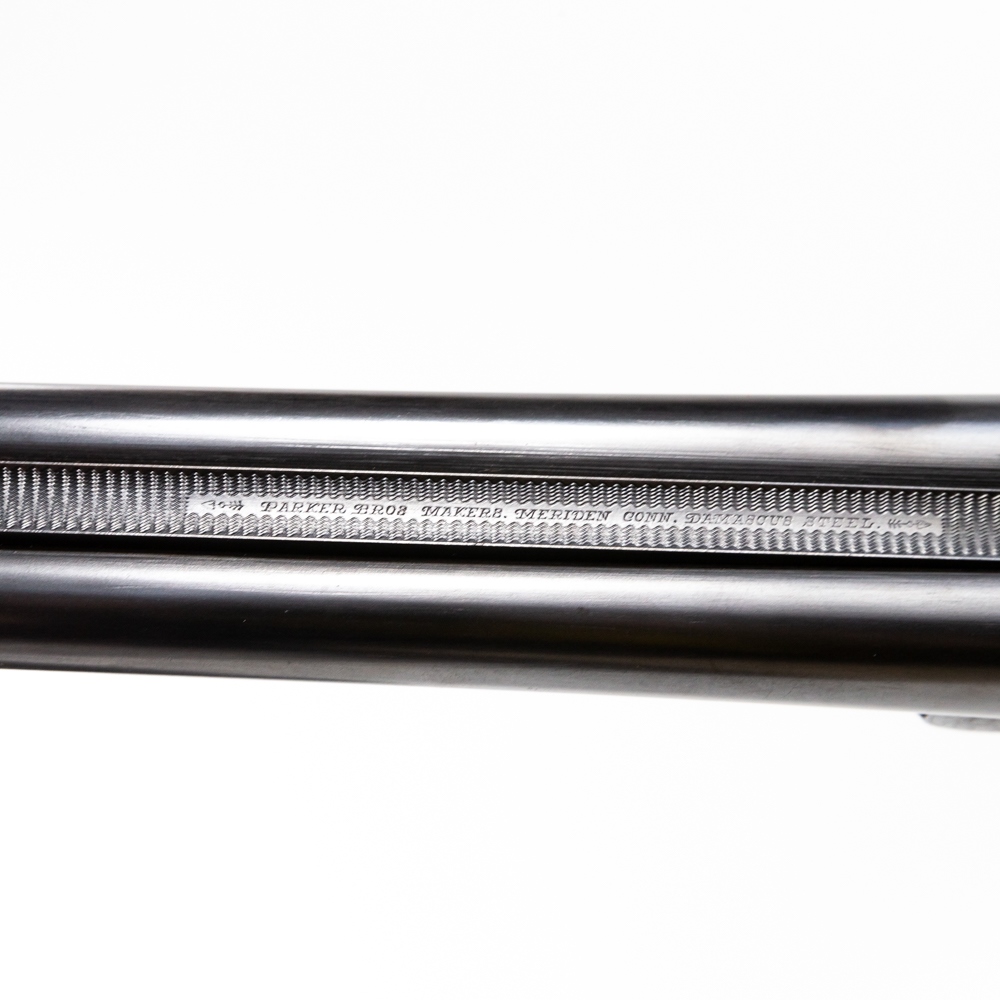 Parker GHD2 12g 27-1/4″ 14-1/2″LOP Hammerless Shotgun in good condition with some pitting, oxidation and dings. Gun was refinished and blued in the past and fitted with a Pachmayr recoil pad. Screws show some tool marks. Action is smooth and seems fully functional and the bore is shiny and smooth. Missing sling mount under barrels. Capped, pistol grip stock and double triggers.. CYL/CYL. Original barrels. MFG 1888 C&R Eligible S/N: 60556