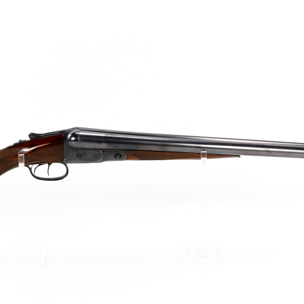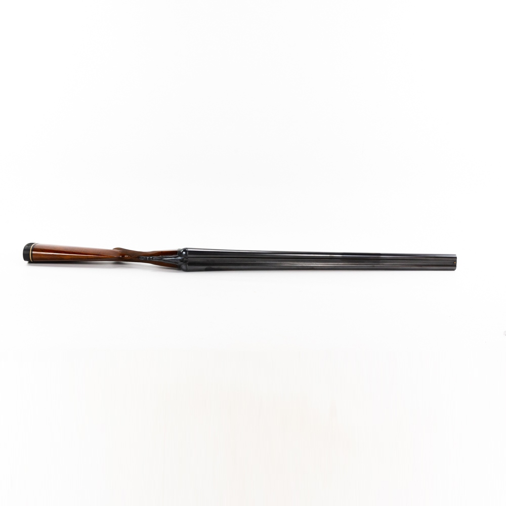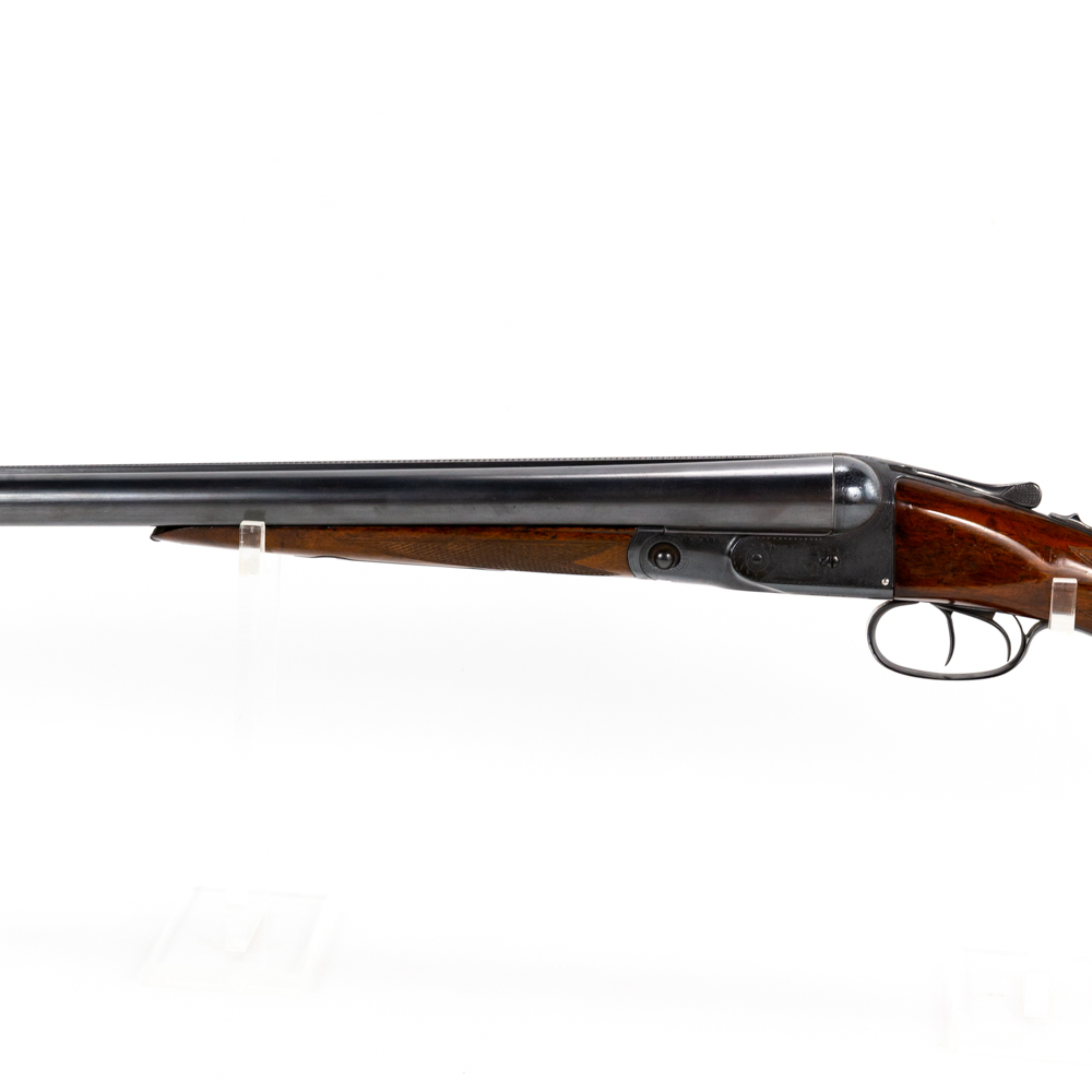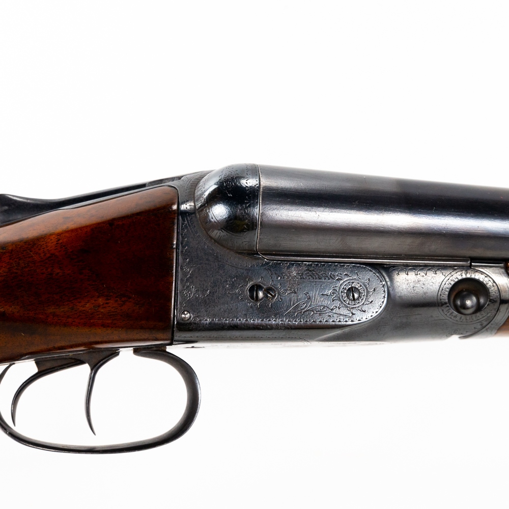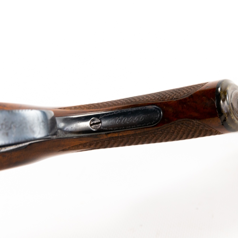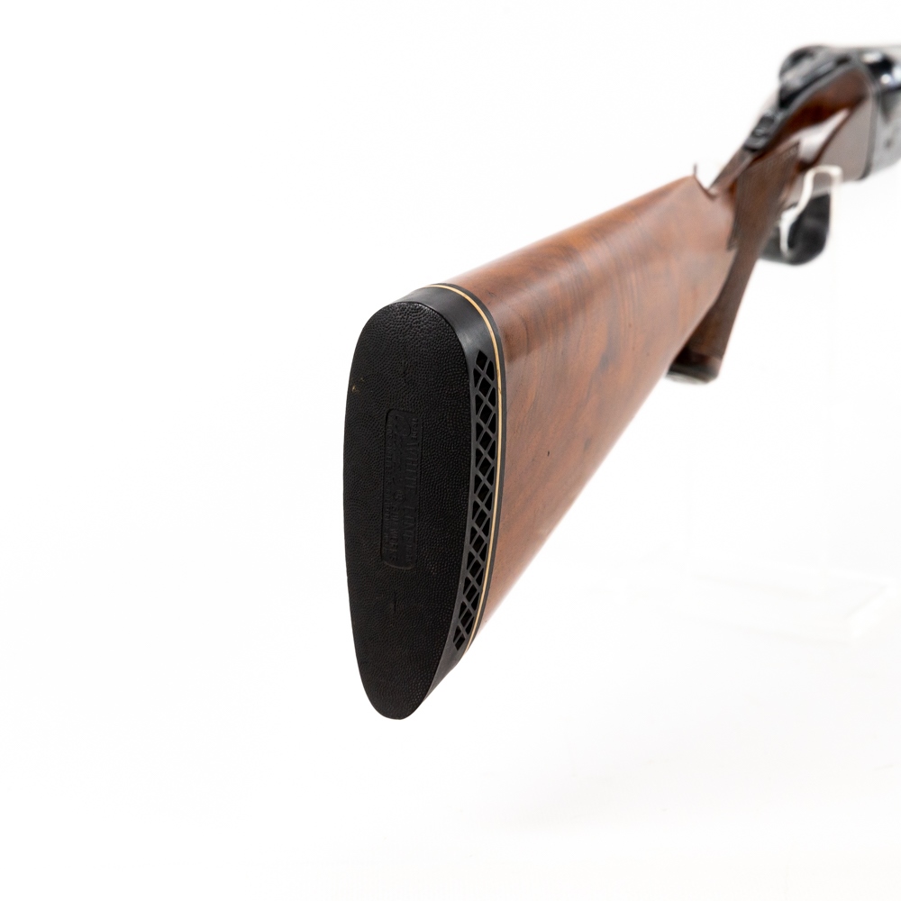 Parker GHD2 12g 27-1/4″ 14-1/2″LOP Hammerless Shotgun in good condition with some pitting, oxidation and dings. Gun was refinished and blued in the past and fitted with a Pachmayr recoil pad. Screws show some tool marks. Action is smooth and seems fully functional and the bore is shiny and smooth. Missing sling mount under barrels. Capped, pistol grip stock and double triggers.. CYL/CYL. Original barrels. MFG 1888 C&R Eligible S/N: 60556