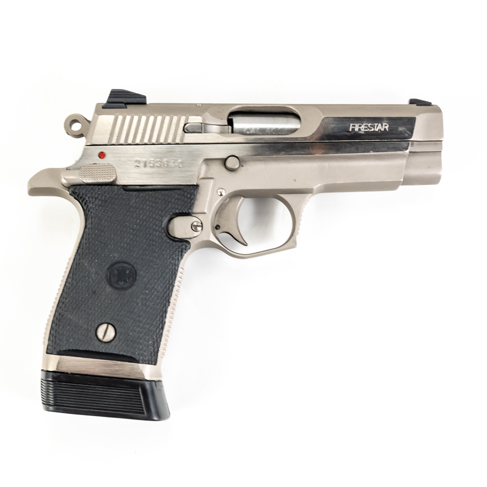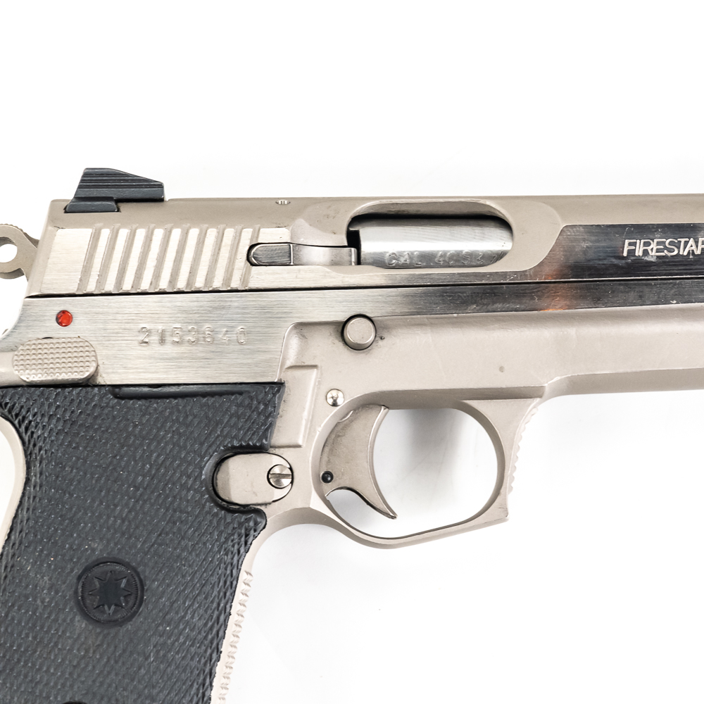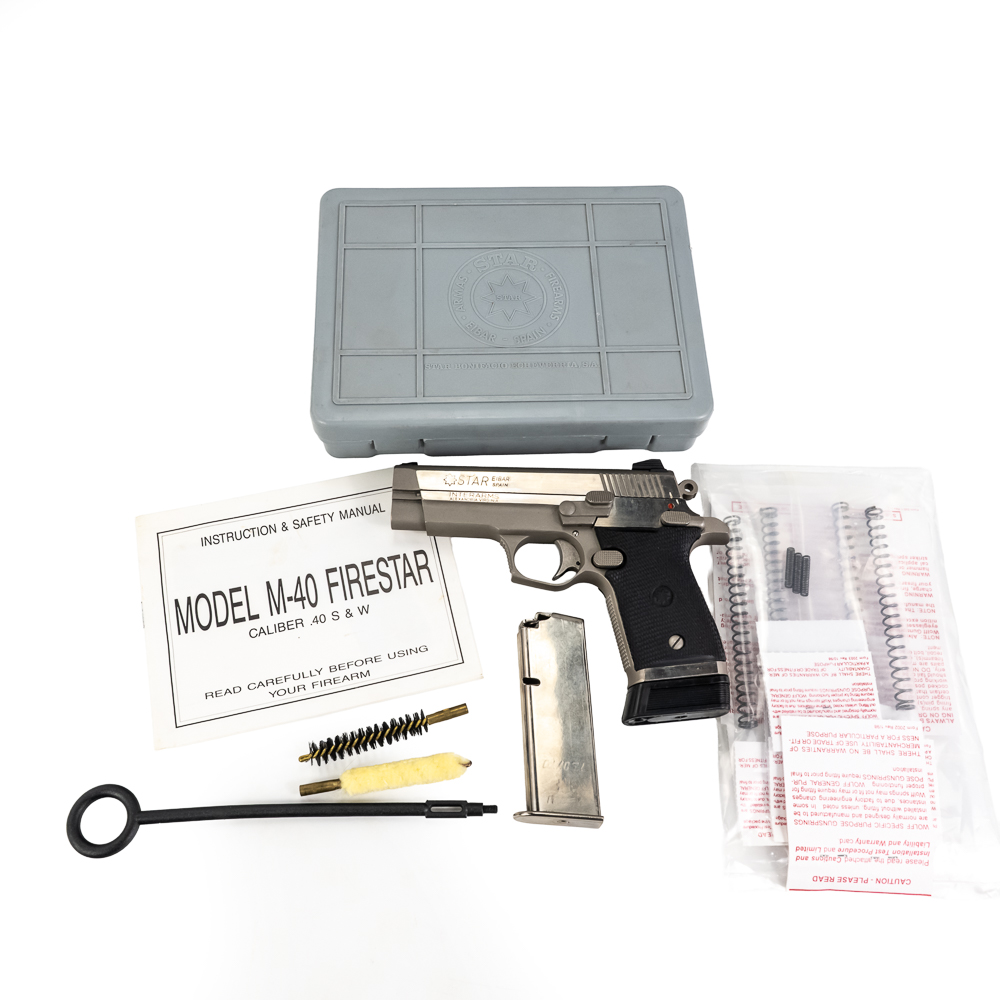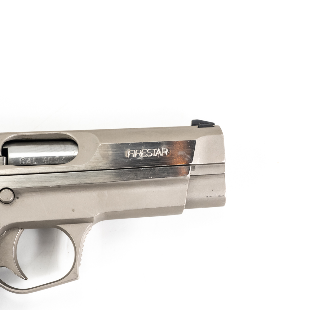Star Arms Firestar Pistol. Caliber .40S&W. Very nice Spanish made full Stainless steel carry pistol. Older InterArms imported pistol is in excellent condition with minor finish wear on slide. Pistol comes in original factory plastic case with extra magazine and Wolff Spring kit. Very nice CZ pattern pistol is ready to use. See photos.