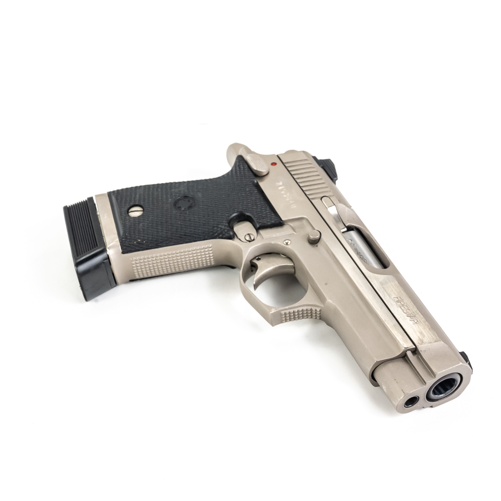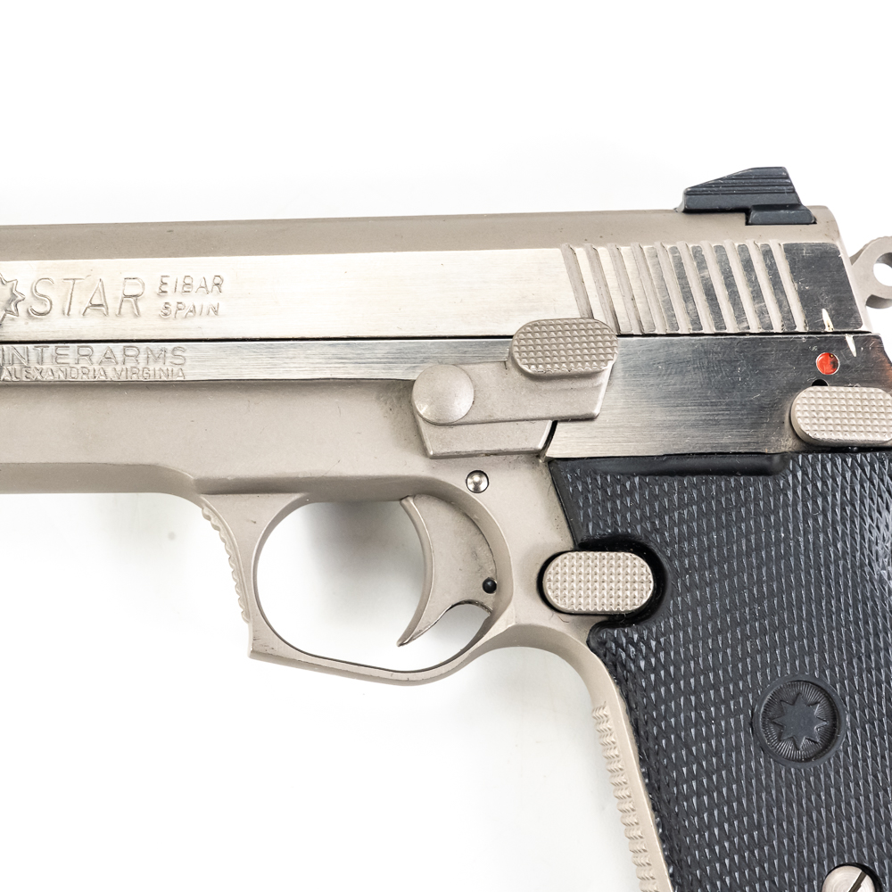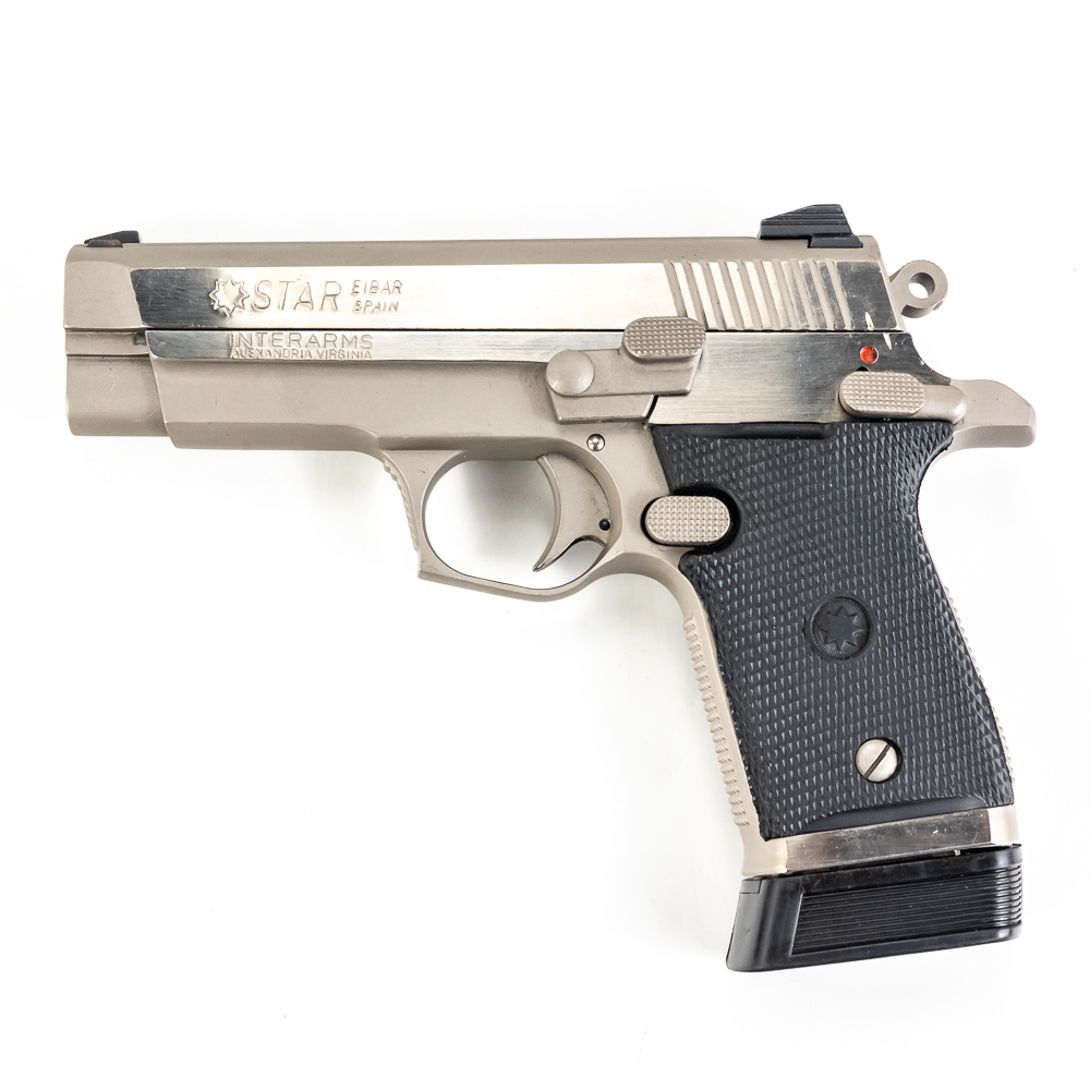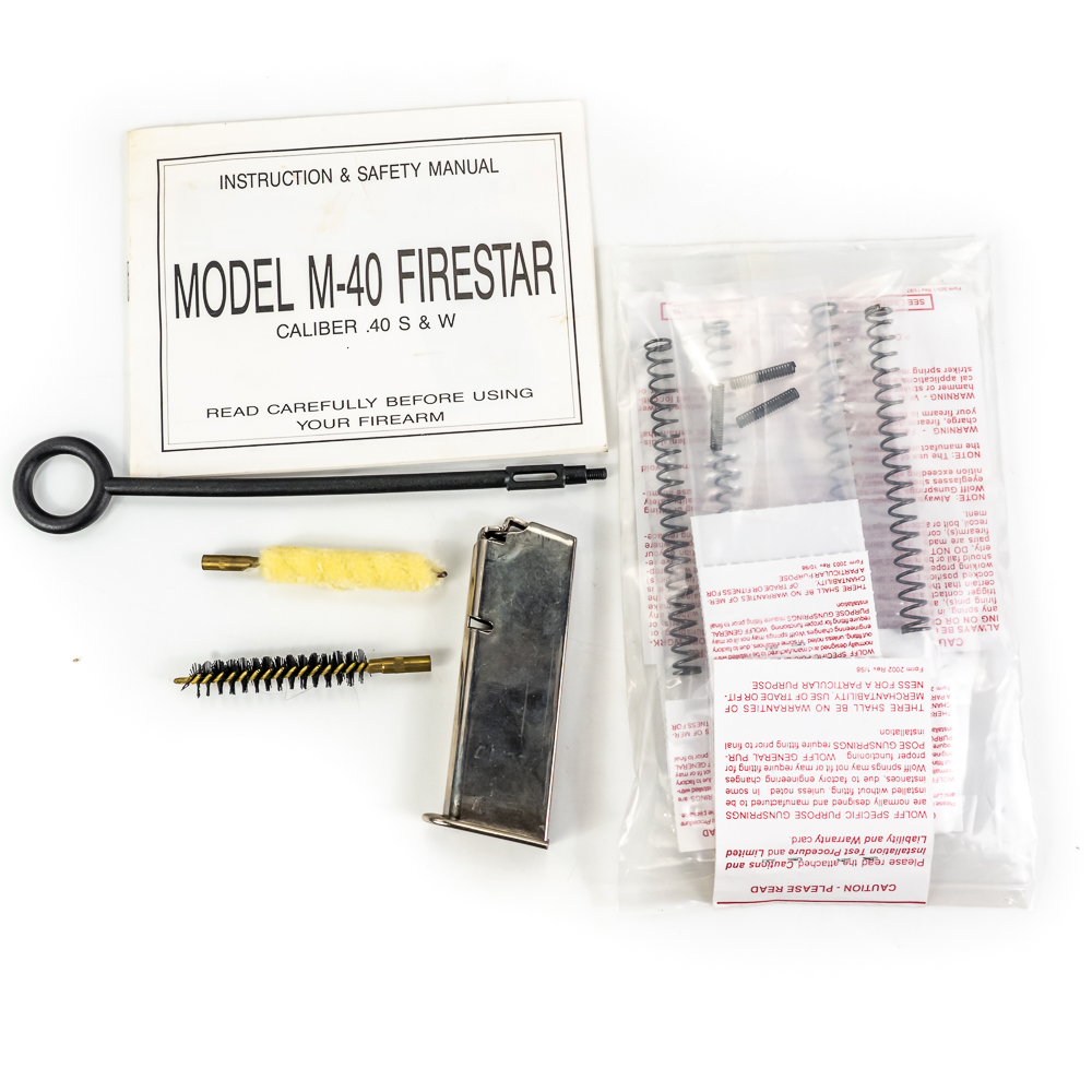 Star Arms Firestar Pistol. Caliber .40S&W. Very nice Spanish made full Stainless steel carry pistol. Older InterArms imported pistol is in excellent condition with minor finish wear on slide. Pistol comes in original factory plastic case with extra magazine and Wolff Spring kit. Very nice CZ pattern pistol is ready to use. See photos.