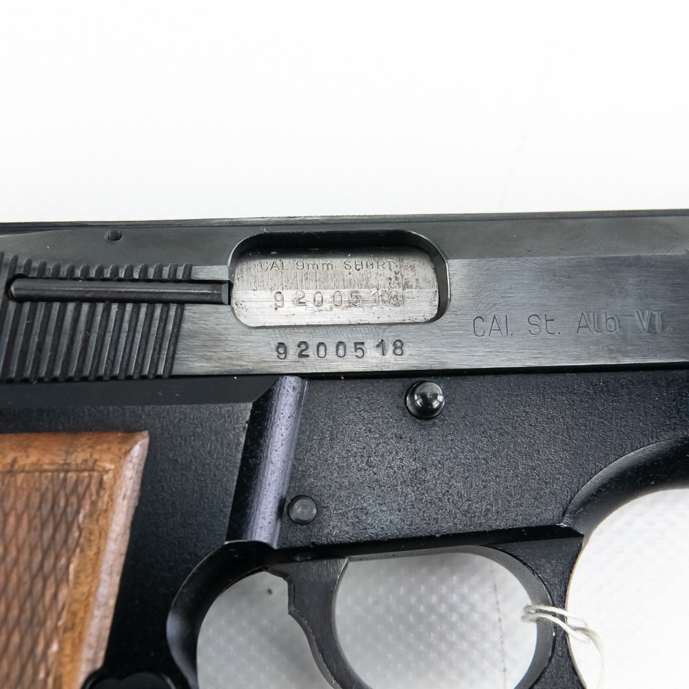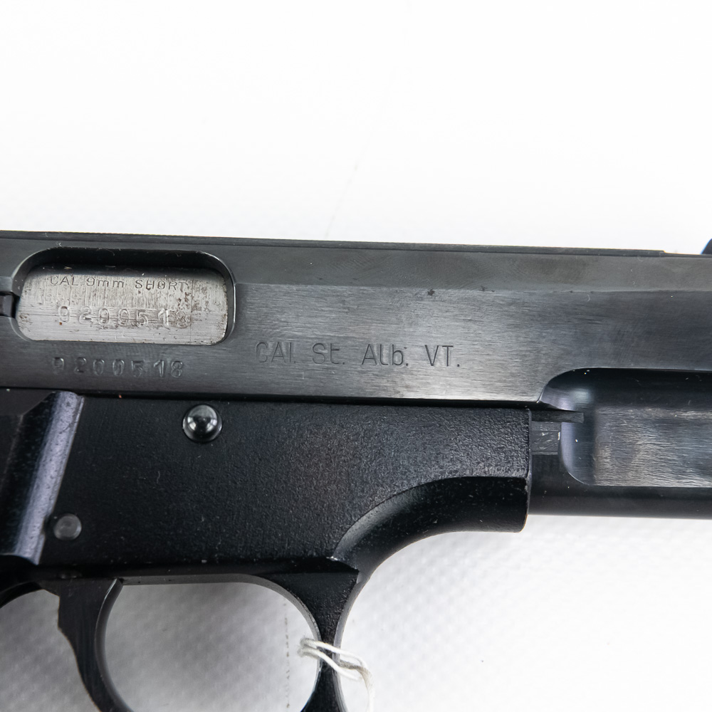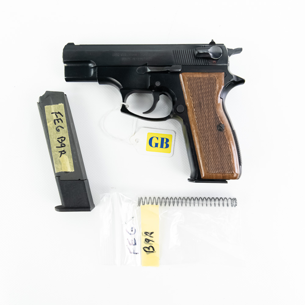 FEG model B9R pistol. Caliber .380/9mm short. Hungarian copy of Smith and Wesson 59 series pistols. Full metal construction pistol with double stack magazine. Pistol comes with extra magazine and recoil spring. Very soft shooting due to size and caliber. Excellent carry or collector piece. See photos.