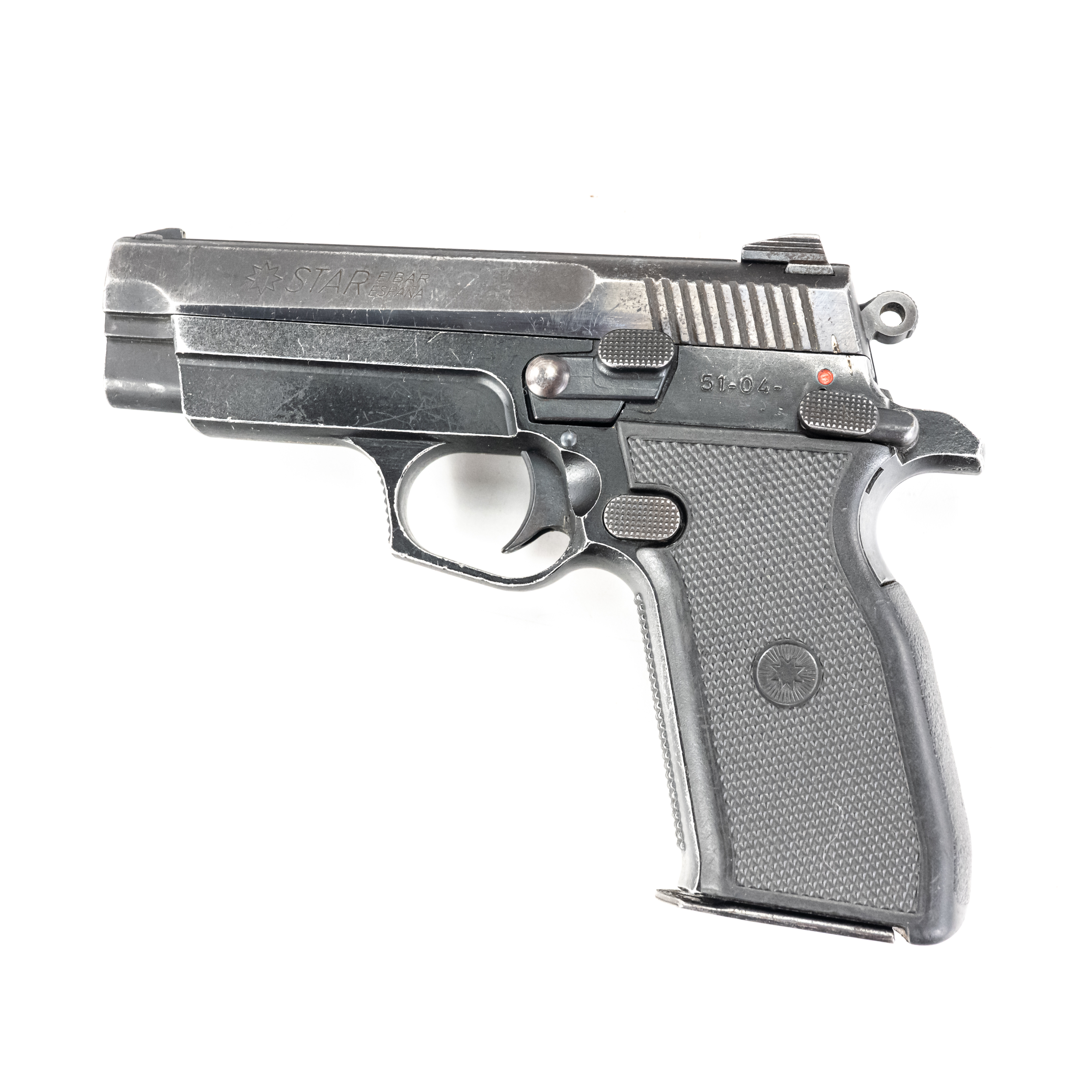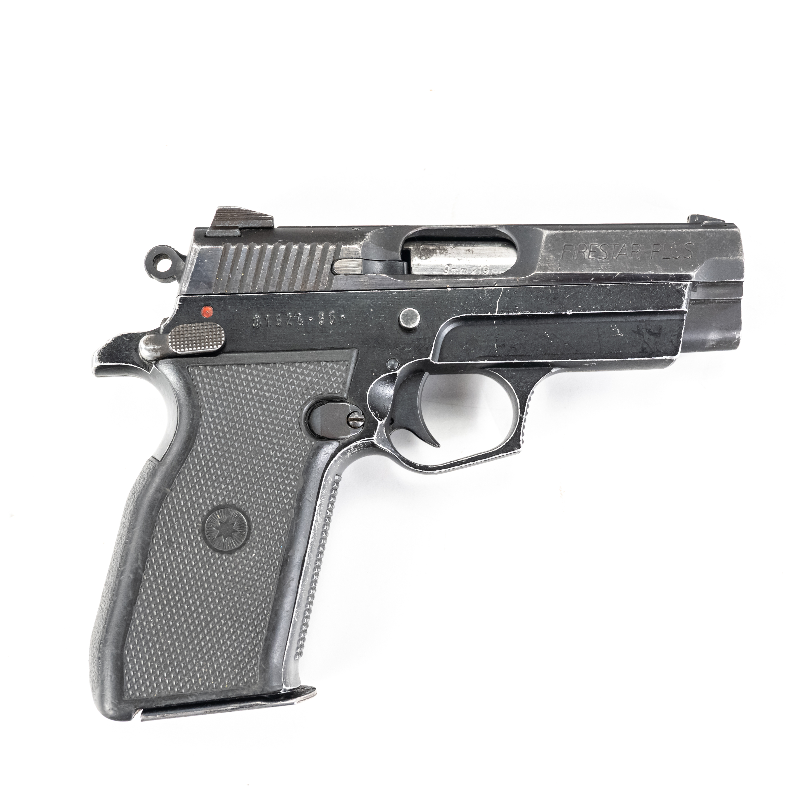 Star Firestar Plus pistol. Caliber 9mm Luger. Older Spanish made full metal pistol. Compact size, single action with thumb safety. Pistol is in very good used condition with some finish wear from being carried and used. Pistol comes with 1 10rd magazine. See photos.