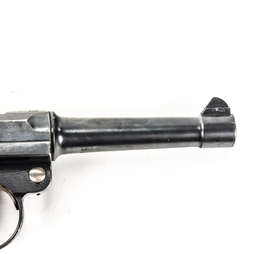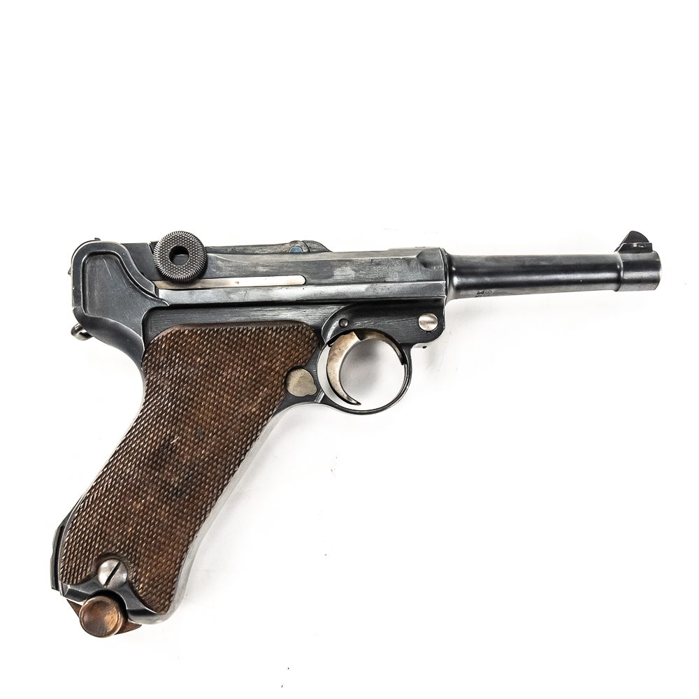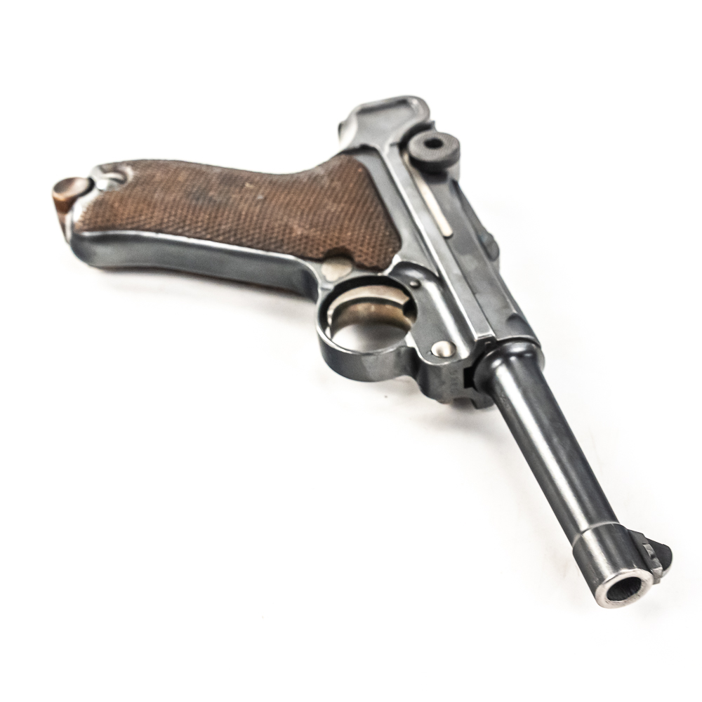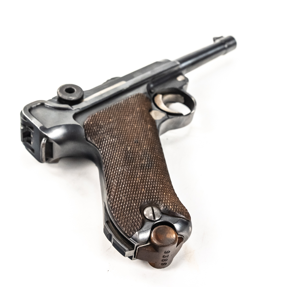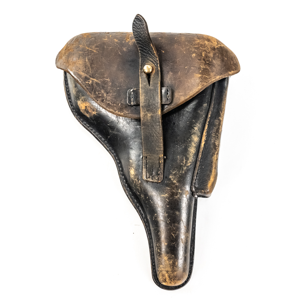 Russian Capture Dual Date DWM Luger 9mm Pistol in VERY good vintage condition. Slide serial number x’d out (Russian capture) the rest of the visible serial numbers match match to the re-stamp including the wooden base magazine. This is a dual date stamp (1918-1920). Comes with a police holster (Otto-Sindel Berlin 1934), tool second magazine (aluminum base). C&R Eligible S/N:9386