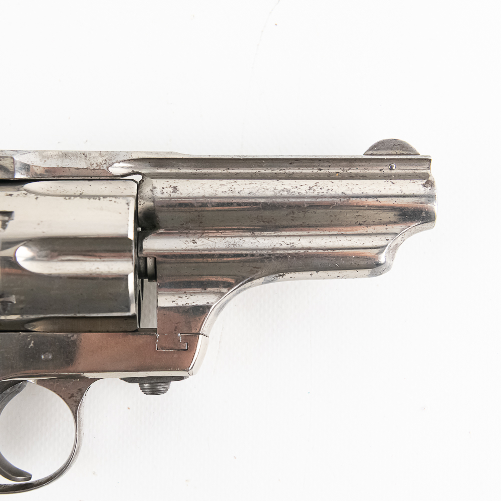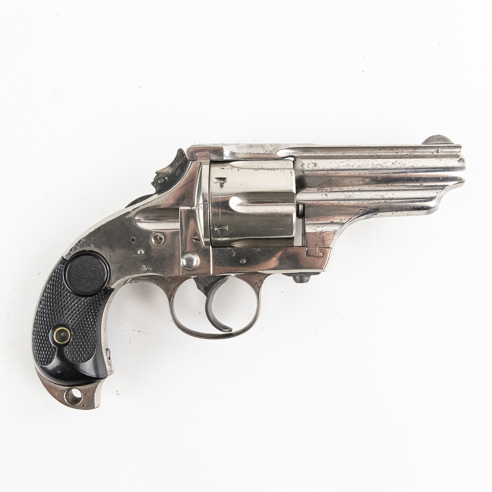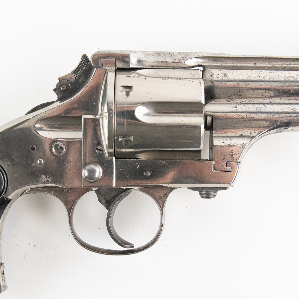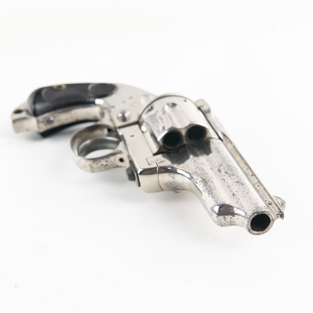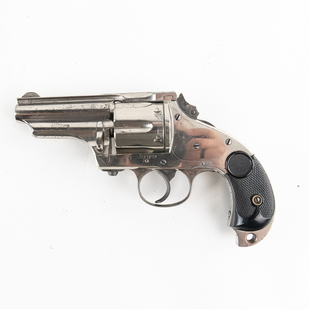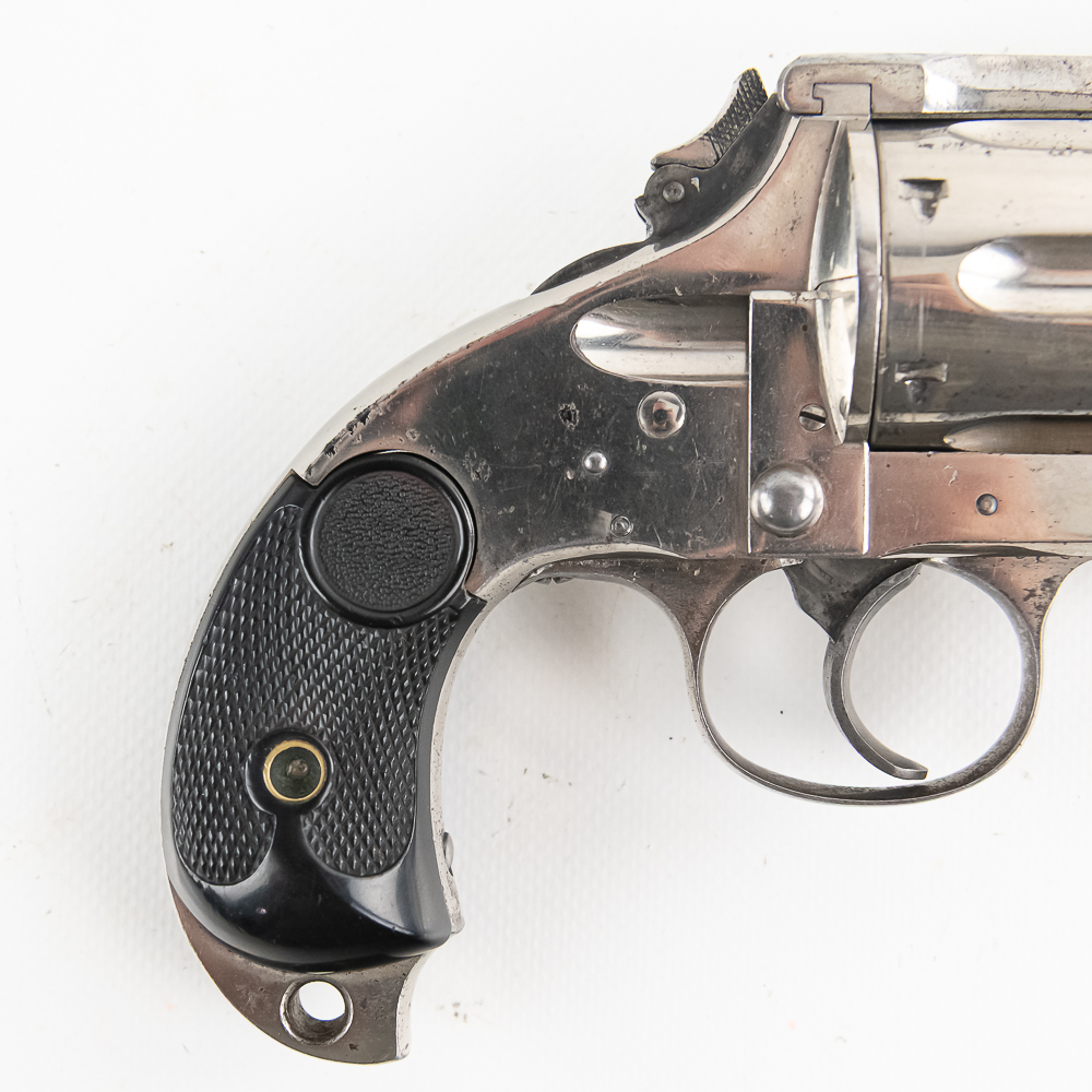 Merwin & Hulbert 1873 .44-40 Revolver in excellent vintage condition with an excellent bore. Folding hammer. Jesse James, Bass Reeves, Pat Garret, were all users of what was considered to be the best made and most innovative of the Large Frontier Revolvers, the products of Merwin, Hulbert Co., including the very well known example we have here a 3rd Model Pocket Army in the man killing .44-40 caliber. Known as the “Skull Crusher” due to the heavy extended birdshead grip. This is a great example with the factory original black grips and the company standard nickel finish. The gun has seen little actual use with a excellent bore and no evidence of corrosive black powder use and about 85% of the original nickel finish remaining. Mechanically the gun is tight. At the time of its widespread use on the Frontier of the Old West, the Merwin Hulbert Large Frame Revolvers were highly thought of. They could be unloaded and reloaded more quickly than any other revolver of the day and they were much stronger and were built like a Swiss Watch with tolerances that are the equal of anything made today, 150 years later. Indeed a serious attempt was made to reproduce them in 2014 and it came to naught because of the high cost that would be involved in re-creating such intricate perfection. C&R Eligible S/N:278