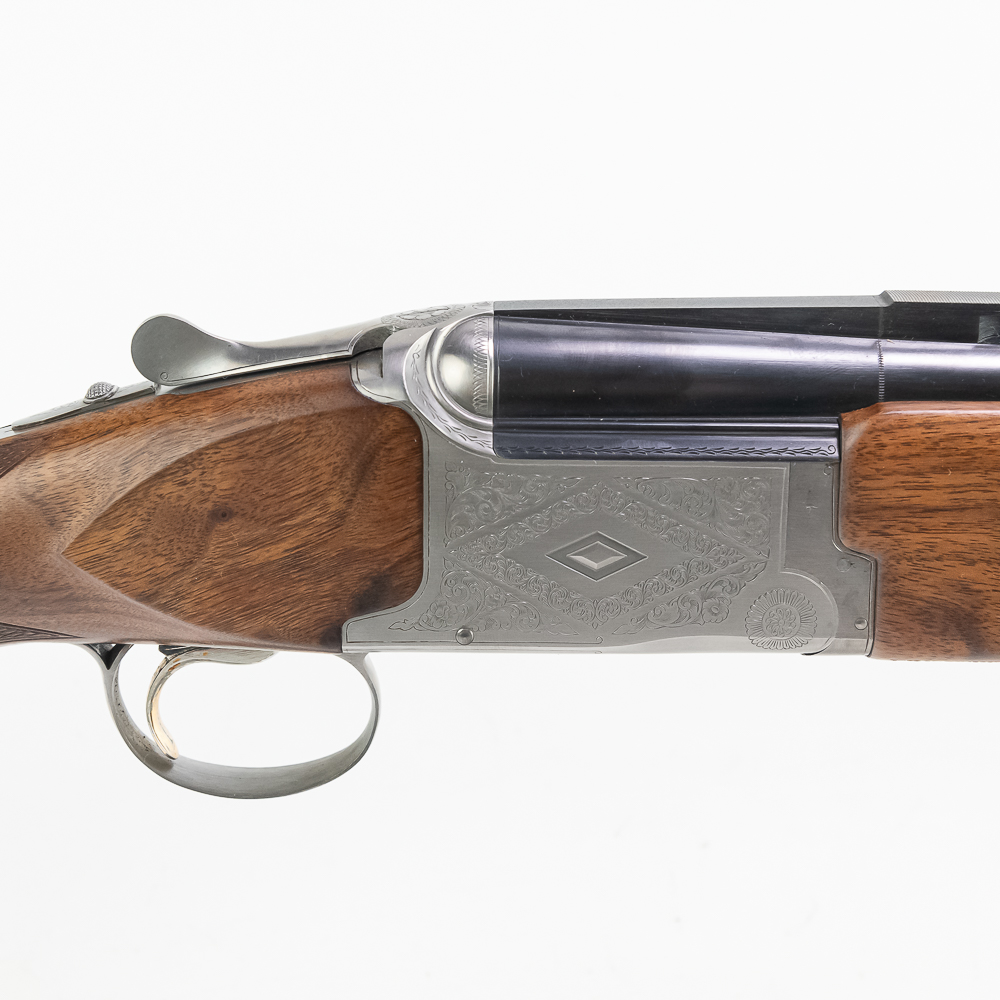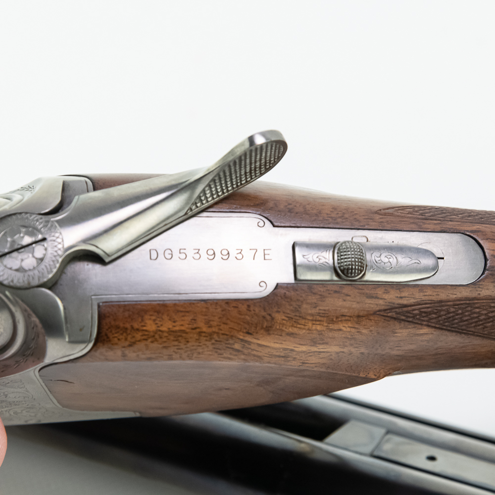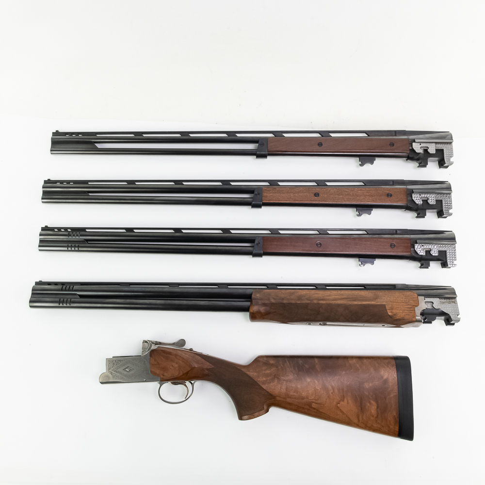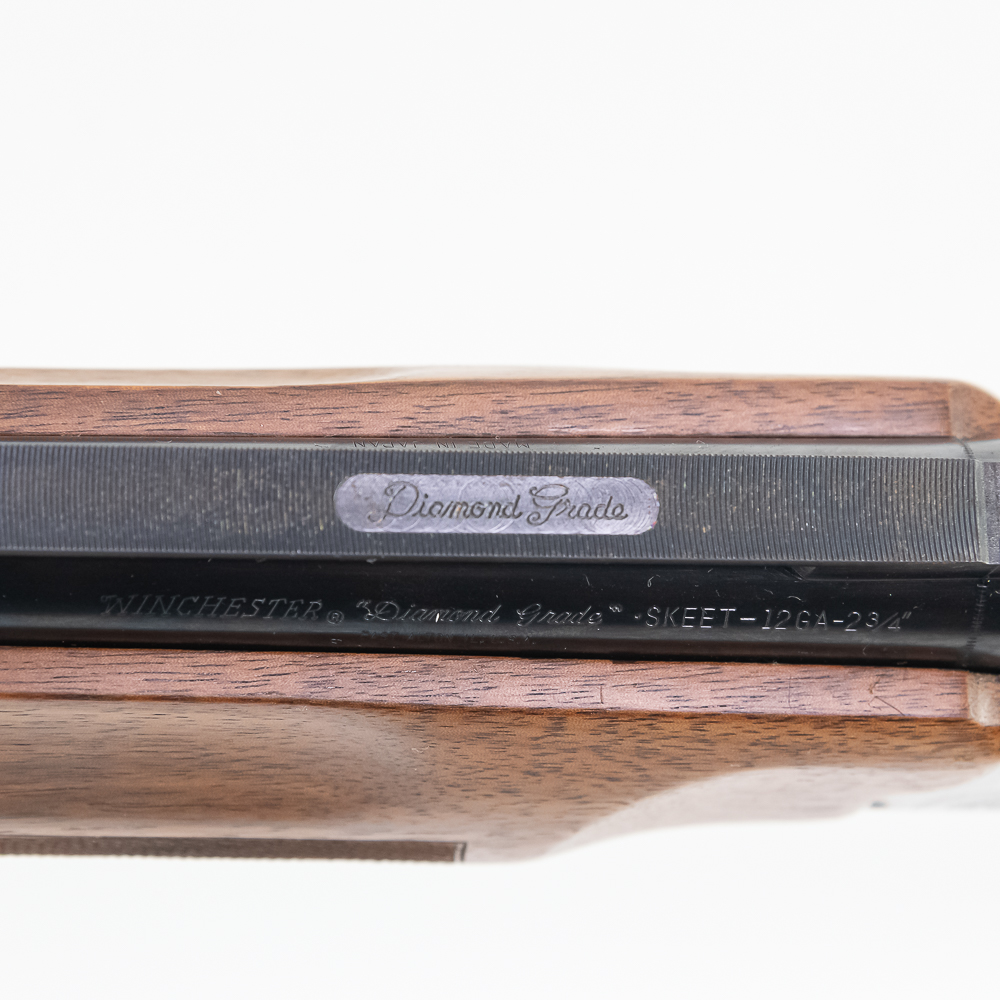 Winchester Diamond Grade SKEET 12/20/28/410 4x barrel set 28″ Shotgun EXCELLENT condition. The 12g & 20g barrel sets are ported. All barrel sets are wide vented ribs with mid-beads. Beautiful, oil finished HIGH GRADE WOOD and a nickel receiver with EXQUISITE floral engraving! Soft Decelerator recoil pad. LOP=14-3/8″. All comes in a Winchester Diamond grade Take-down hard case. S/N:DG539937E