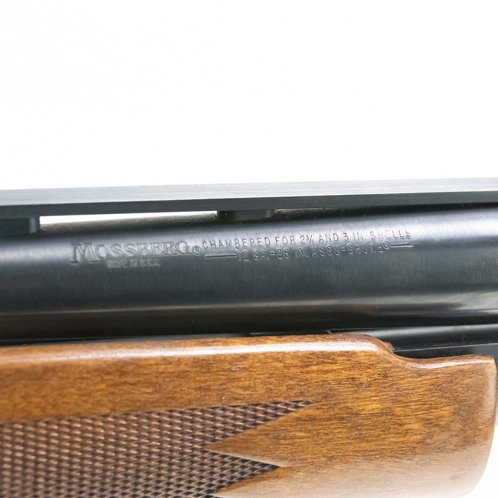Mossberg 500 12g 28″ Shotgun in very good condition with light wear. The bore is bright. It has a vented rib with mid-bead S/N:K276636