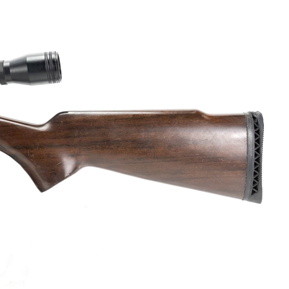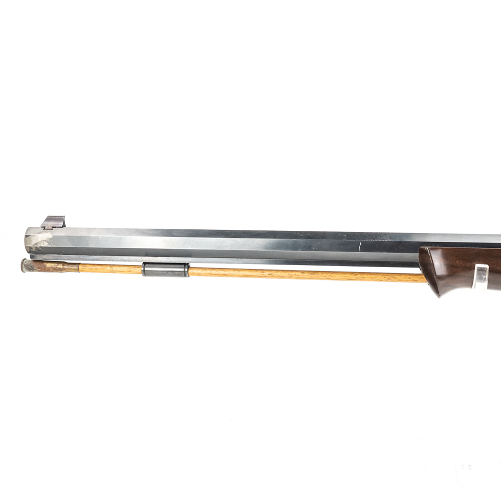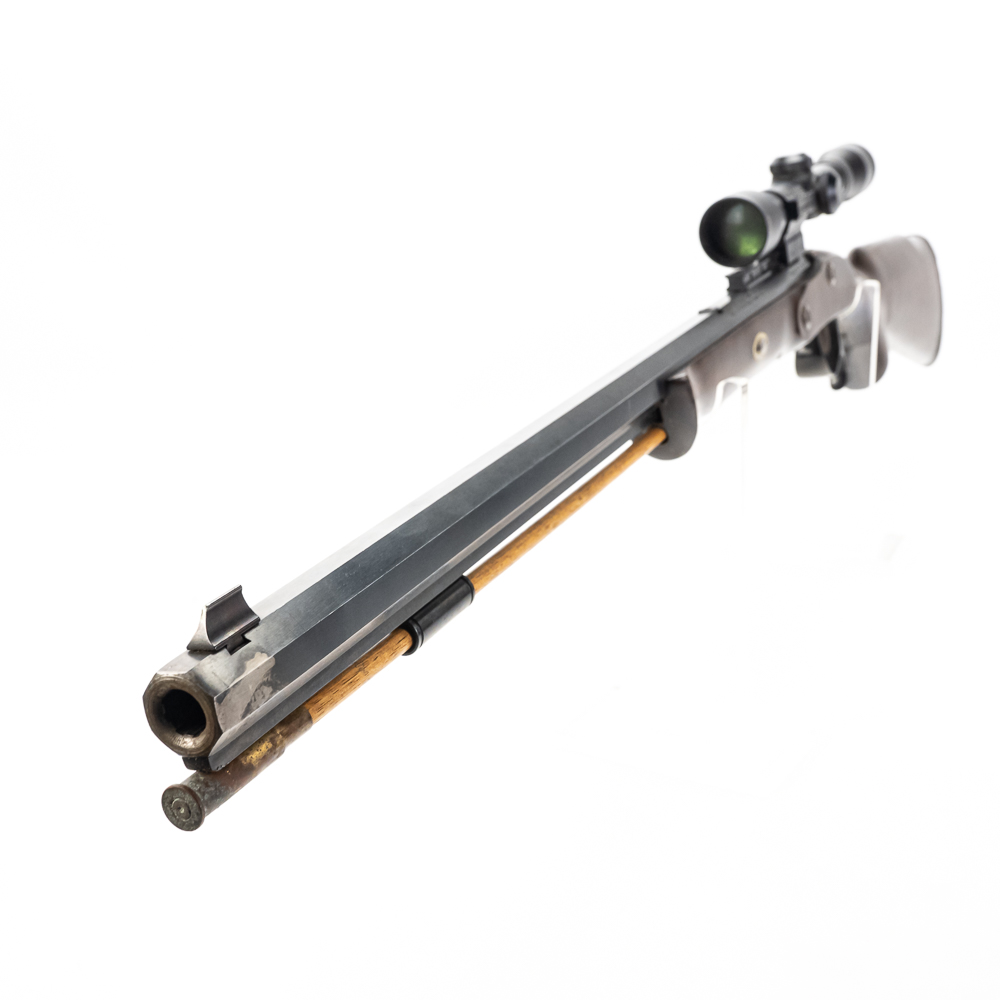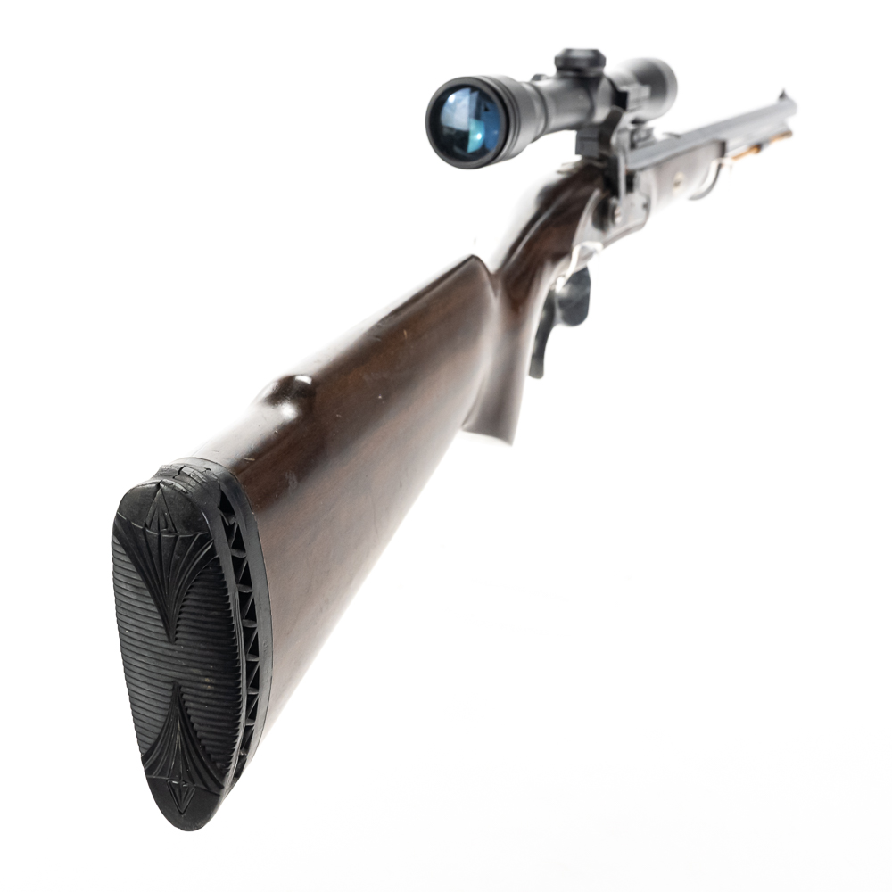 Connecticut Valley Arms Frontier Hunter Rifle. Spanish reproduction black powder rifle with modifications to make easier to use. 24″ octagonal barrel with 4×32 scope mounted and recoil pad on special longer length stock. Rifle is in good used condition with wear to metal and wood from being used. Barrel has some surface rust and bluing lost from use. Good muzzleloader for a beginner. See photos.