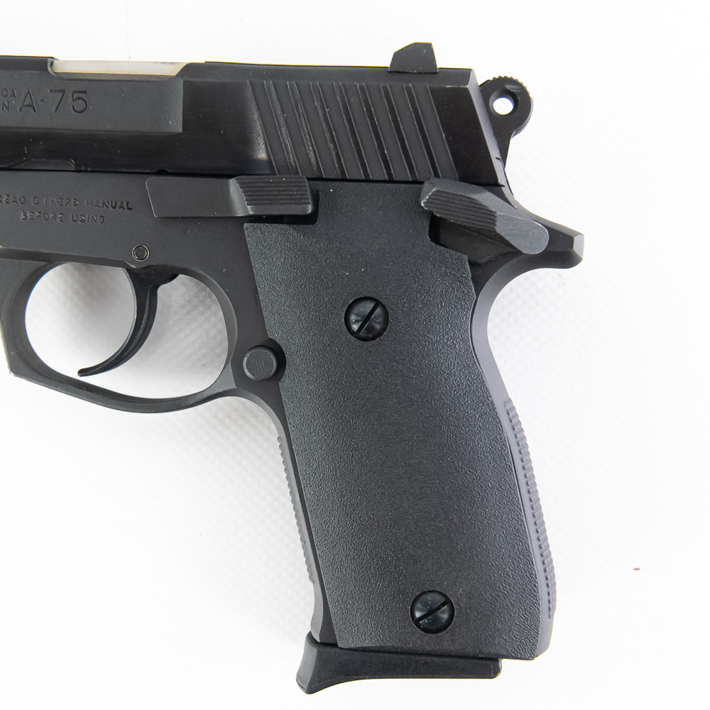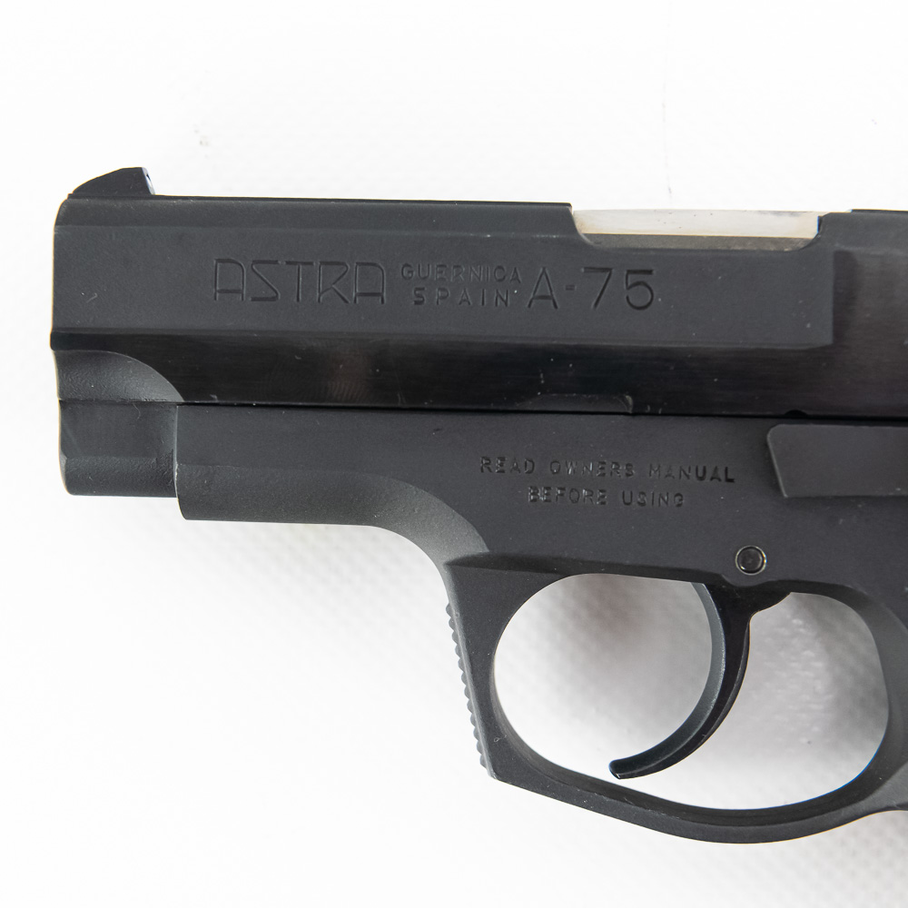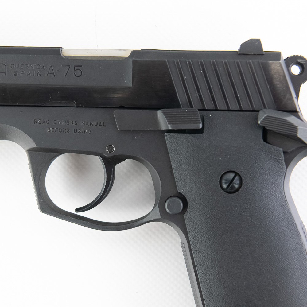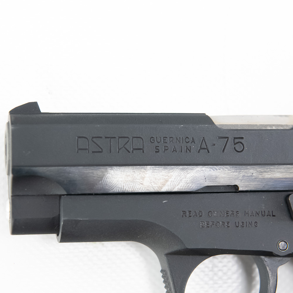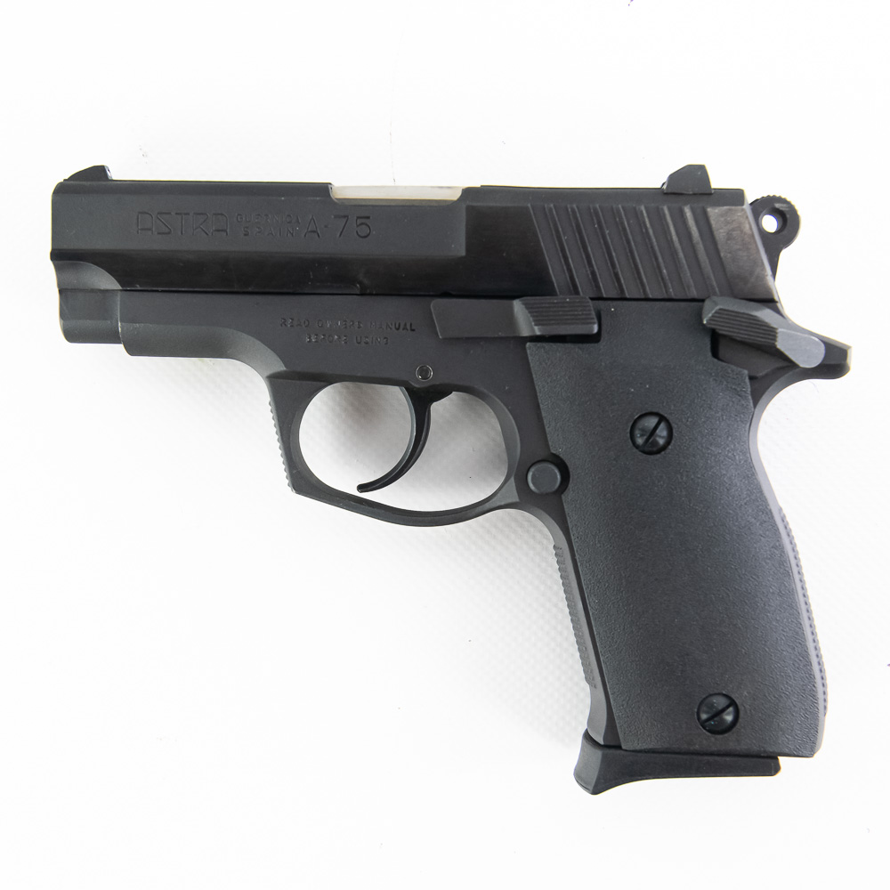 Astra Model A-75 Pistol. Caliber .40S&W. Spanish made copy of Smith 59 series pistols. Full steel construction with single stack magazine. Older EAA imported gun is in fantastic used condition with minor handling marks and replacement polymer grips. Very nice compact carry pistol. See photos.