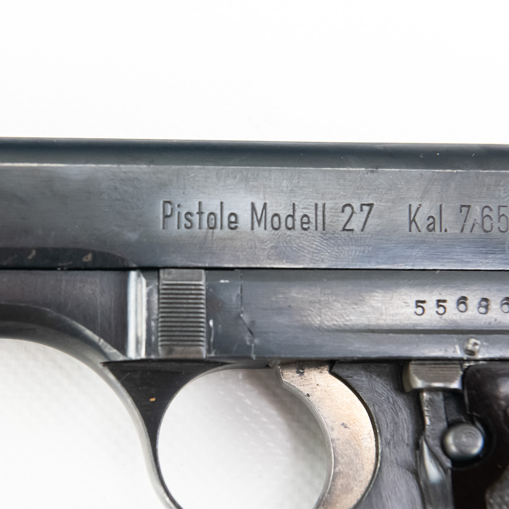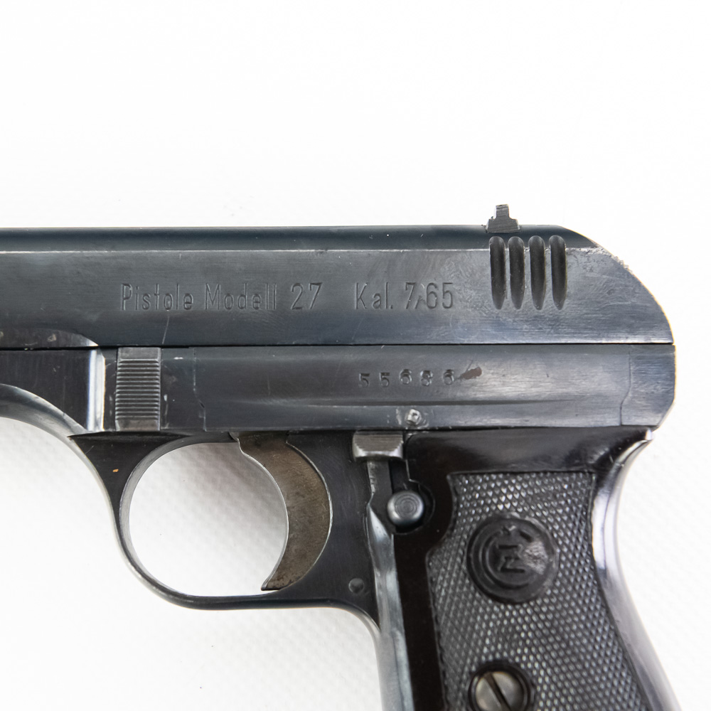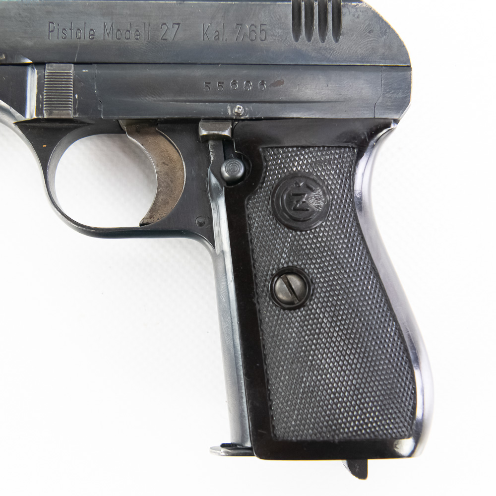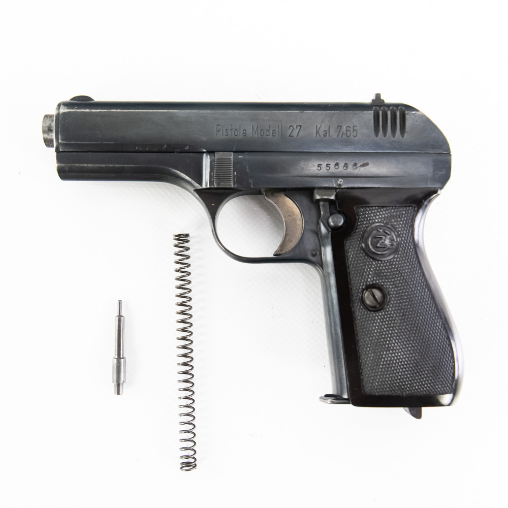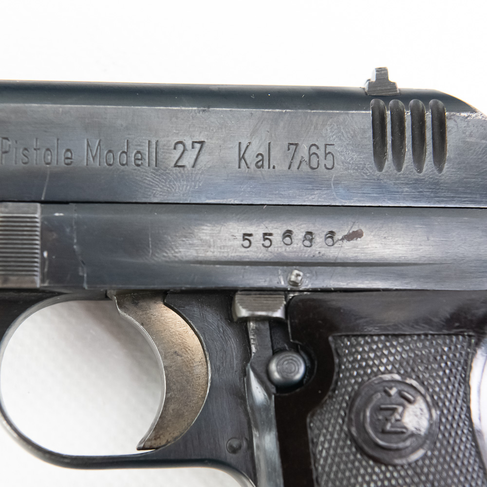 CZ Model 27 Pistol. Caliber .32ACP/7.65mm. Czech pistol made for German military during World War II. Pistol has German slide markings and poorly stamped WAA mark on right side of frame. Pistol is in good condition and retains 75+% of original bluing. Pistol comes with extra mainspring and firing pin. Nice vet bringback pistol. See photos.