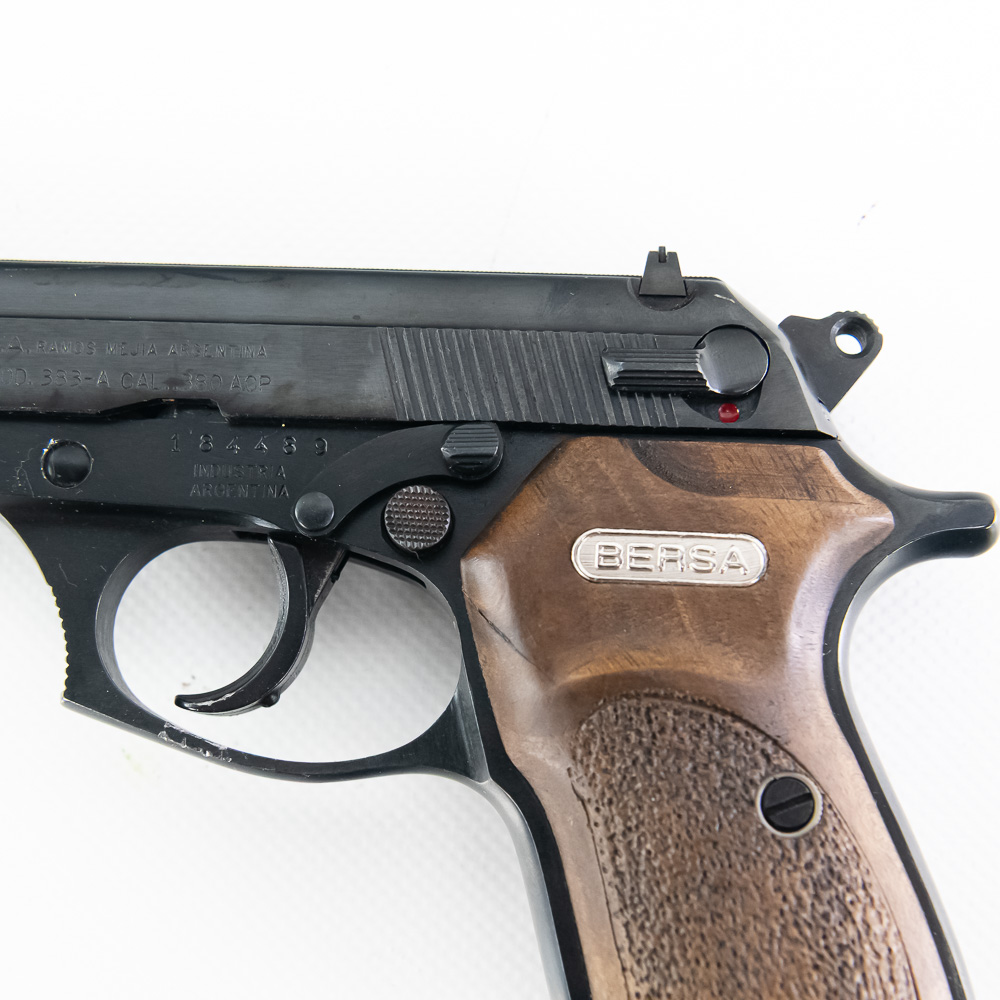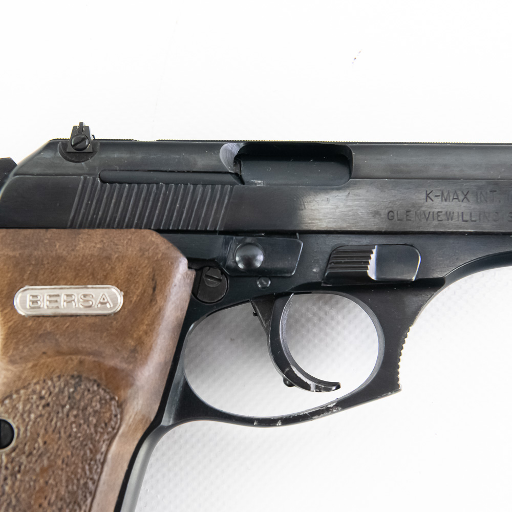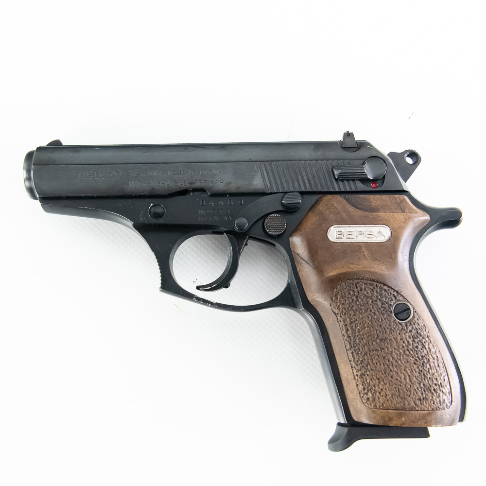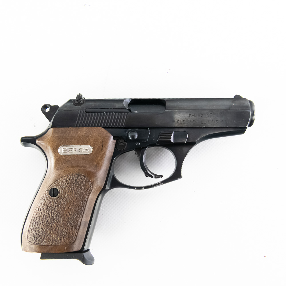 Bersa Model 383-A Pistol. Caliber .380ACP. Older K-Max imported Argentina made pistol. Pistol is in excellent used condition with minor handling marks. Pistol comes with 3 extra magazines and recoil spring. Nice concealed carry pistol. See photos.
