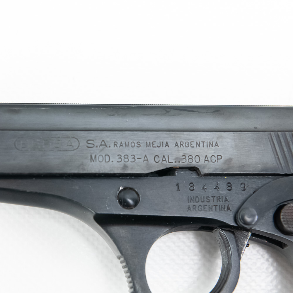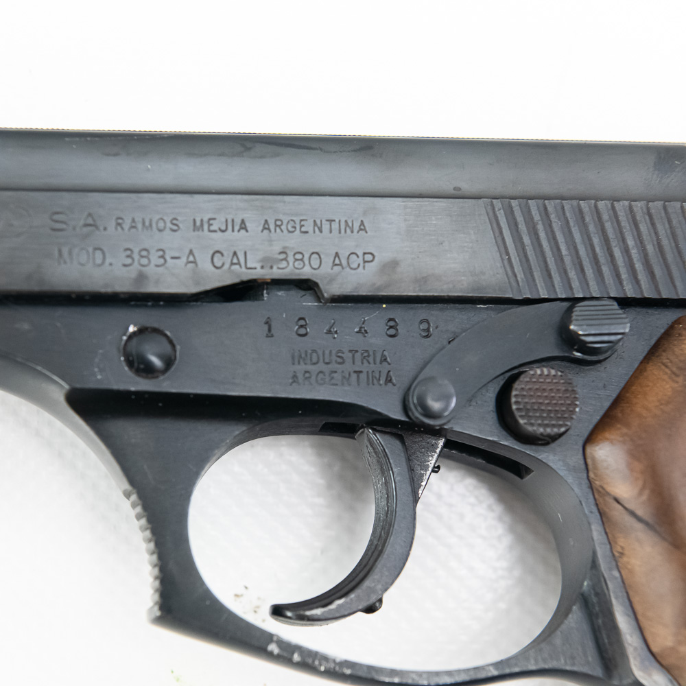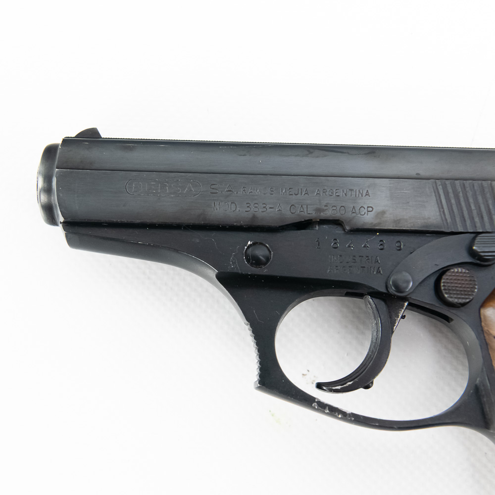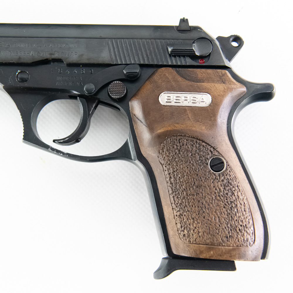 Bersa Model 383-A Pistol. Caliber .380ACP. Older K-Max imported Argentina made pistol. Pistol is in excellent used condition with minor handling marks. Pistol comes with 3 extra magazines and recoil spring. Nice concealed carry pistol. See photos.
