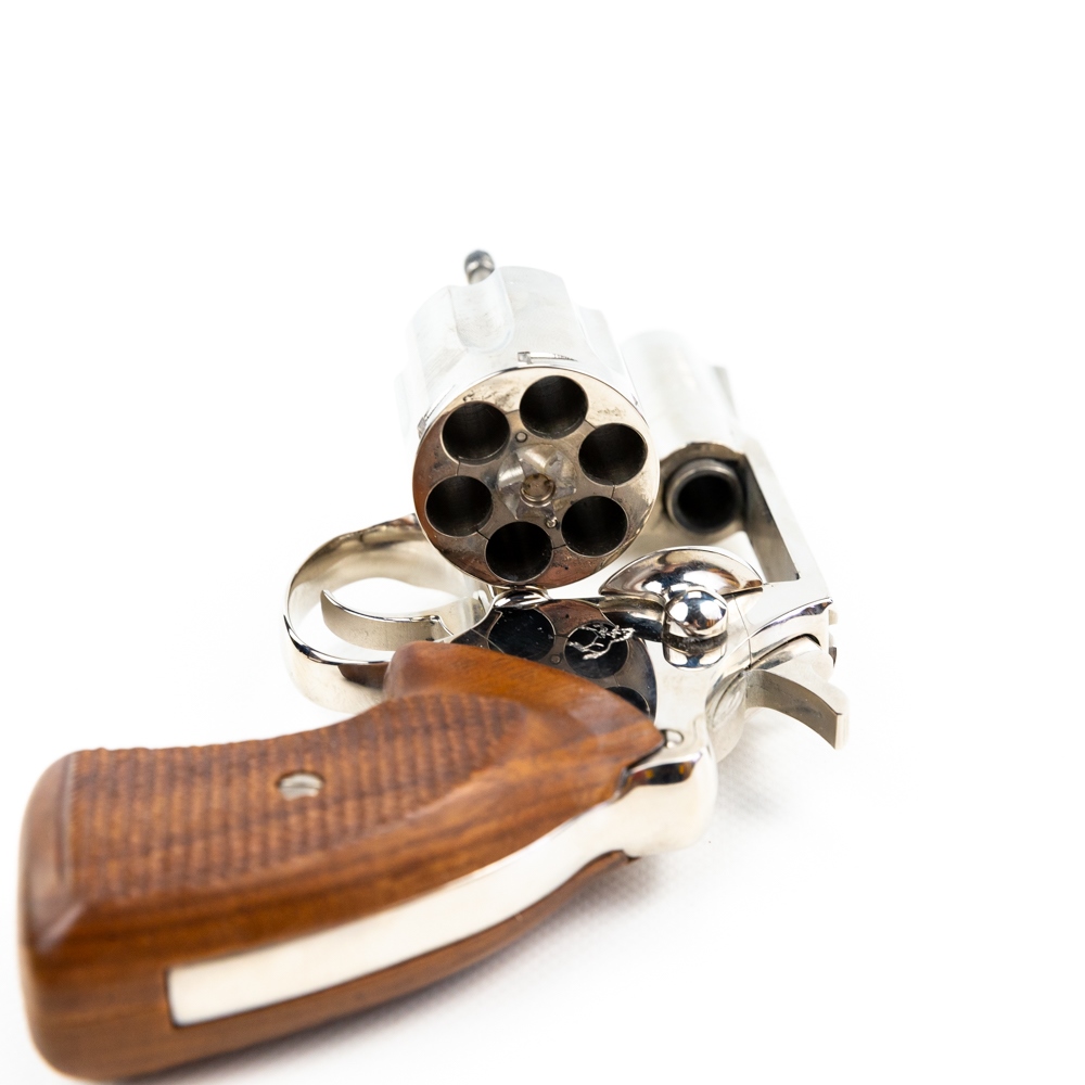 1976 Colt Detective Spec .38spl 2″ Nickel Revolver in excellent “Like New” condition. BEAUTIFUL!! Comes with the original box, manuals and wrappings. The trigger guard tag is still attached!!! MFG 1976 S/N:16085M