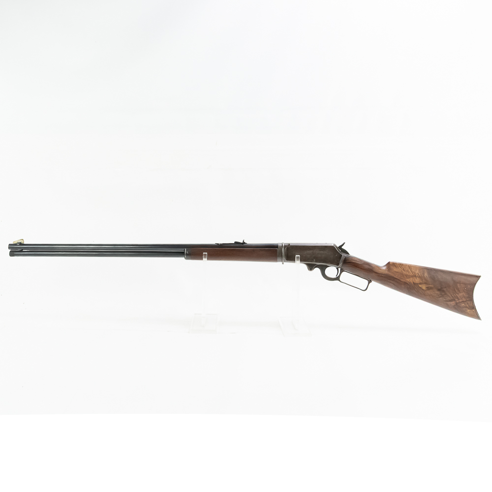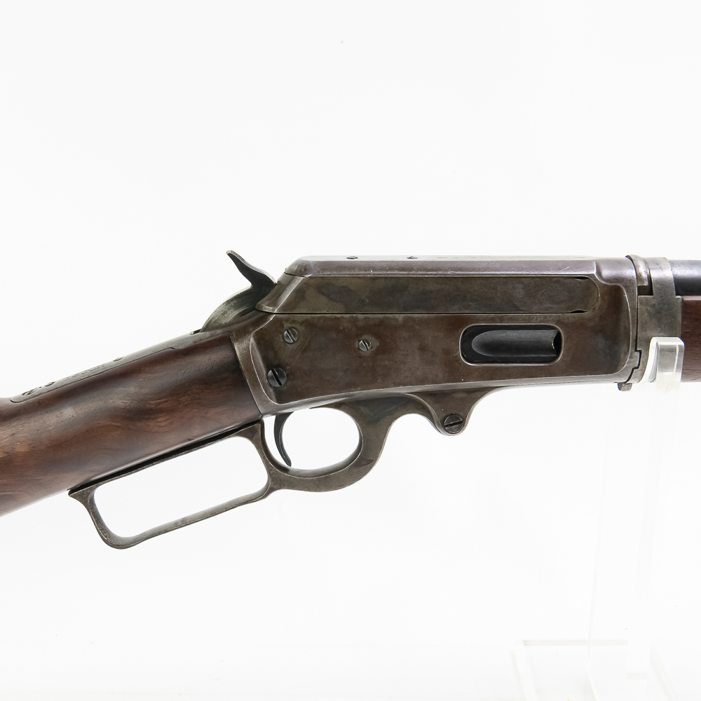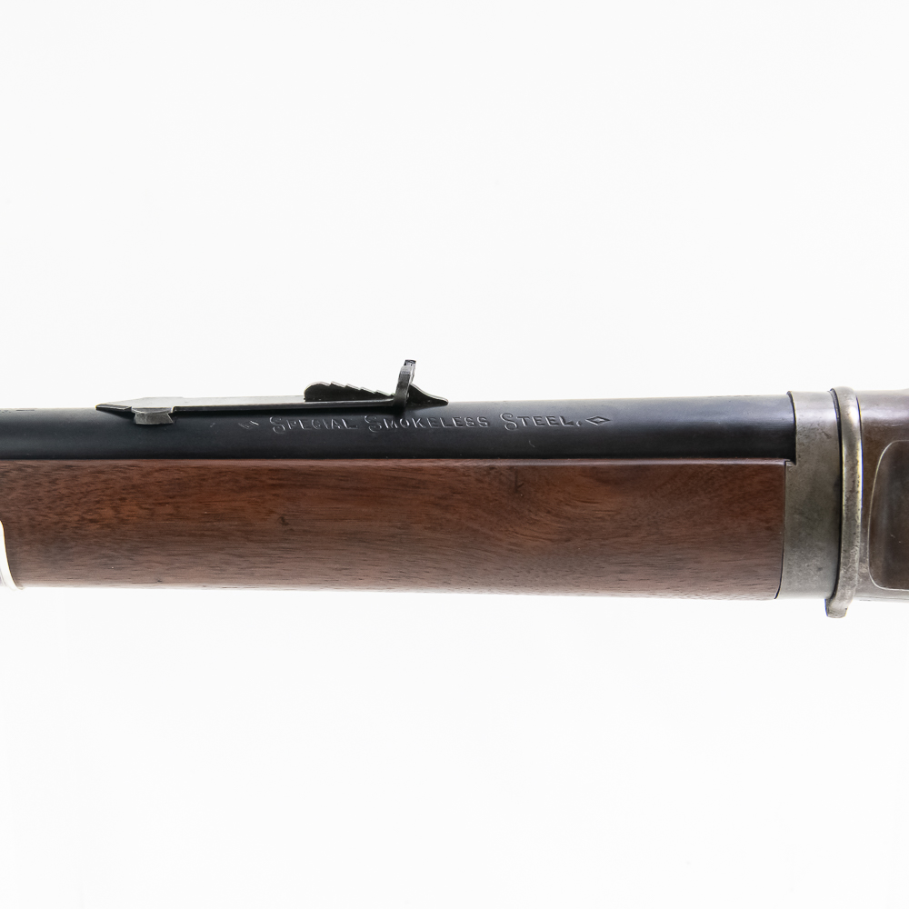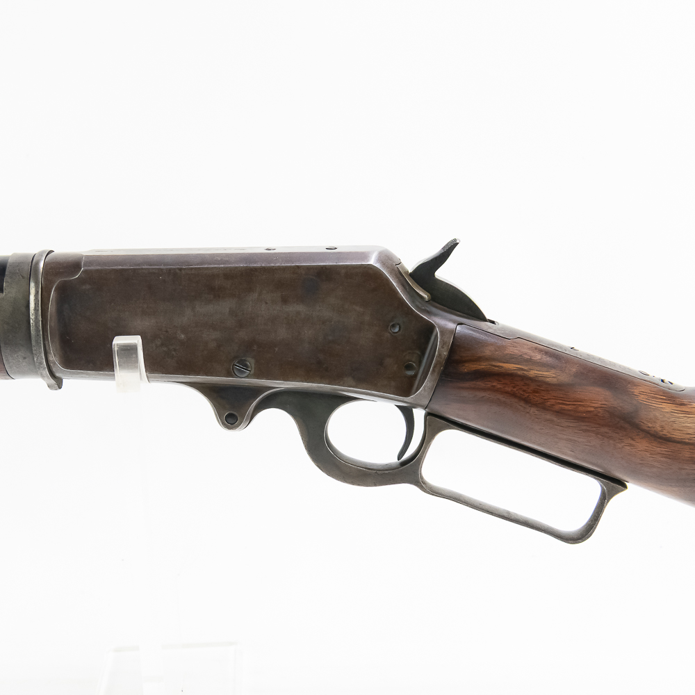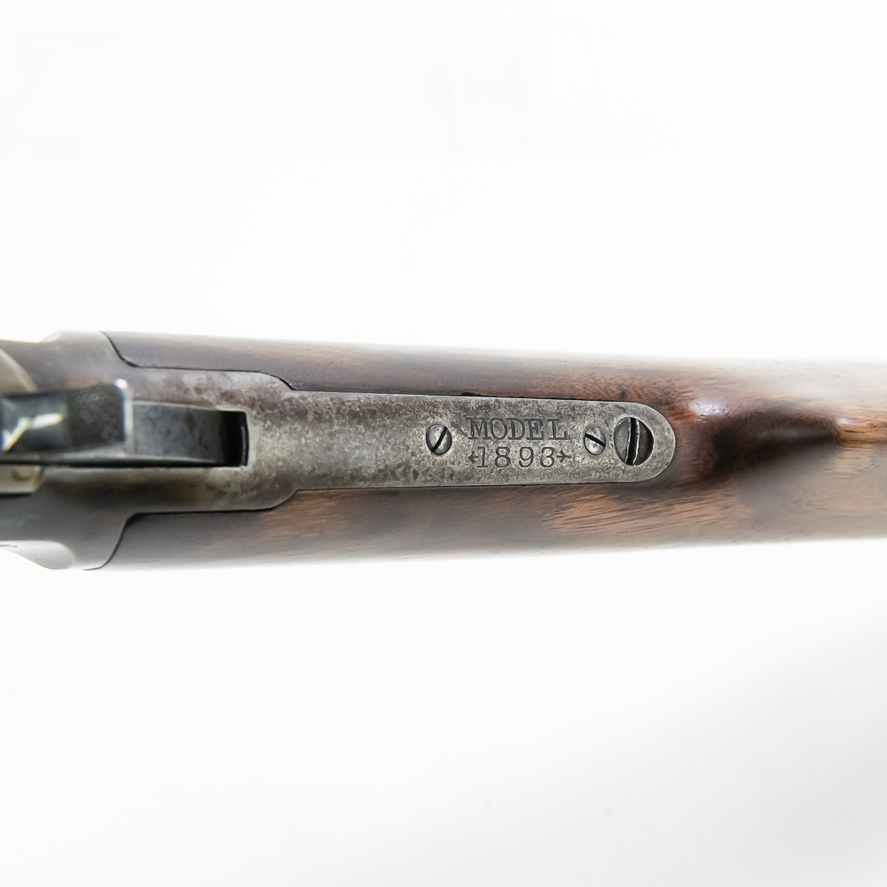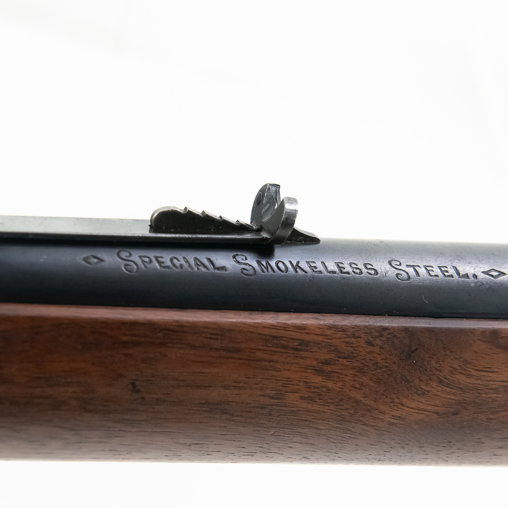 Marlin 1893 .30-30 28″ Takedown Rifle in very good vintage condition with some light wear, 60-65% case finish remains. The wood is exceptional and fitted well. The action is smooth and seems fully functional and the bore has very light frosting. The barrel is marked “Marlin Fire-Arms Co., New-Haven, Ct. U.S.A. / Pat’d Oct. 11. 1887. April 2. 1889. Aug. 1. 1893” / “32-40”, and “Special Smokeless Steel”. The top of the receiver is marked “Marlin Safety”.