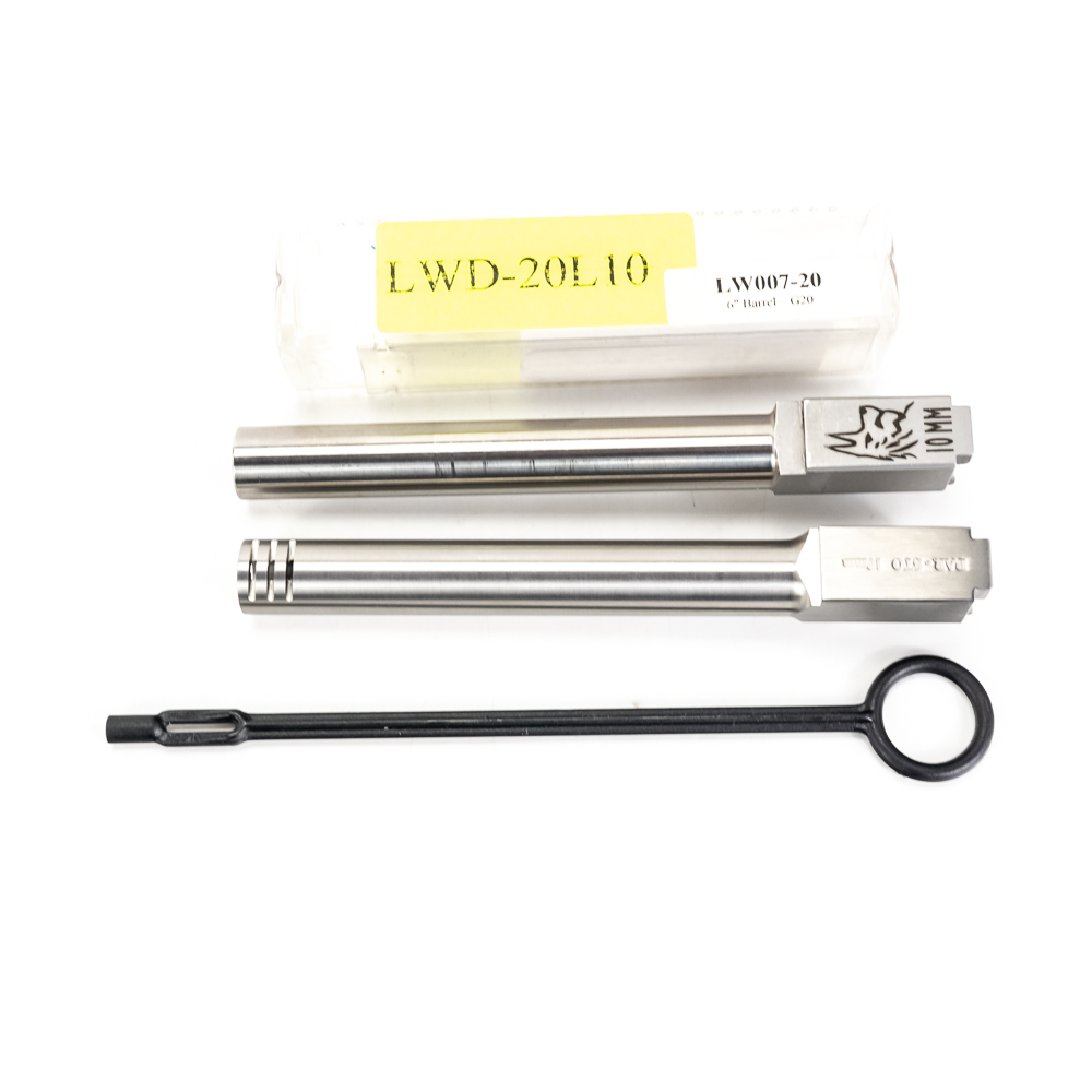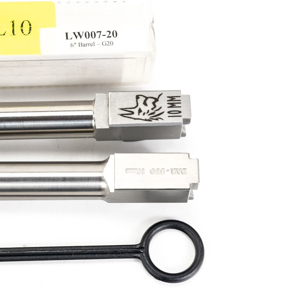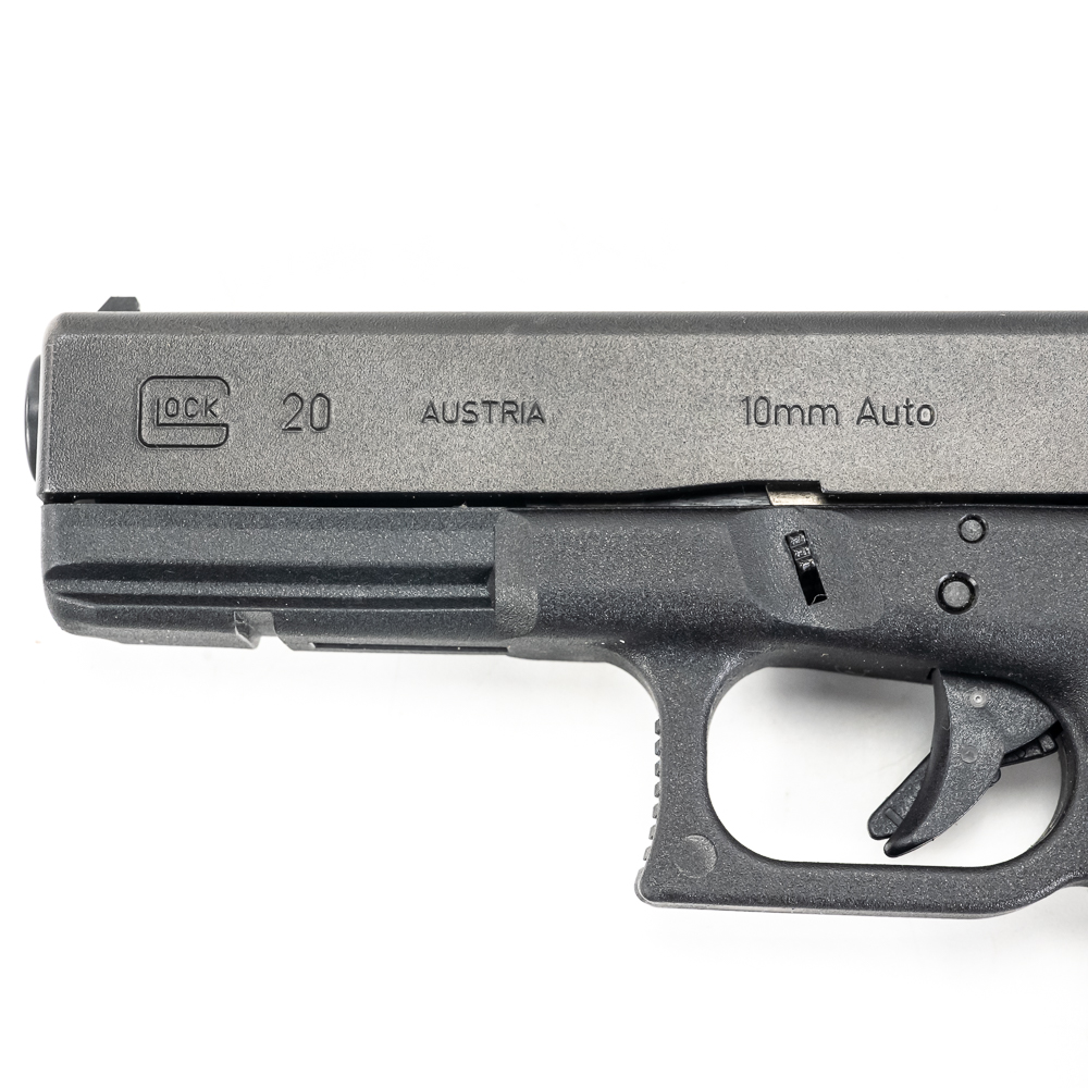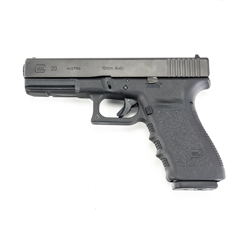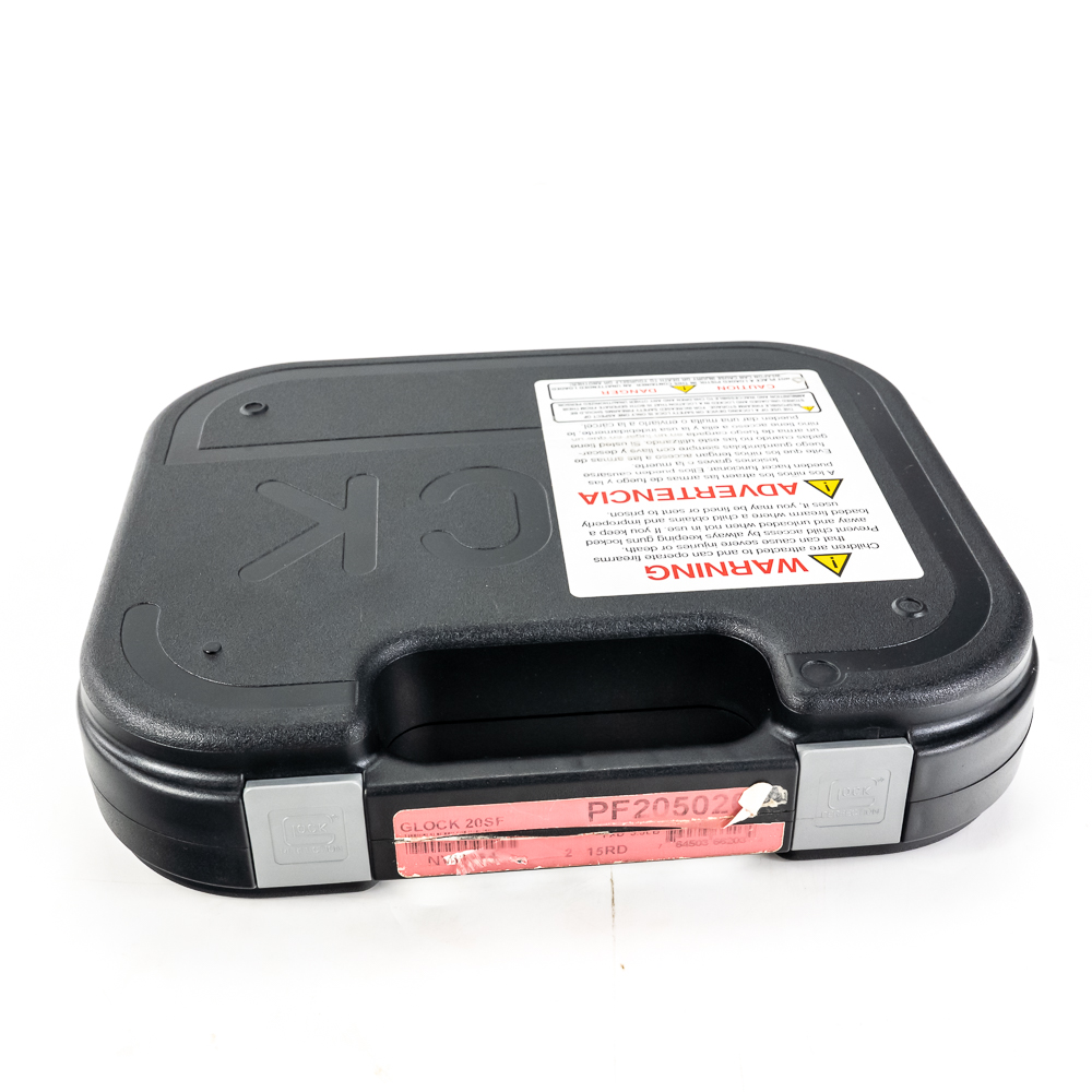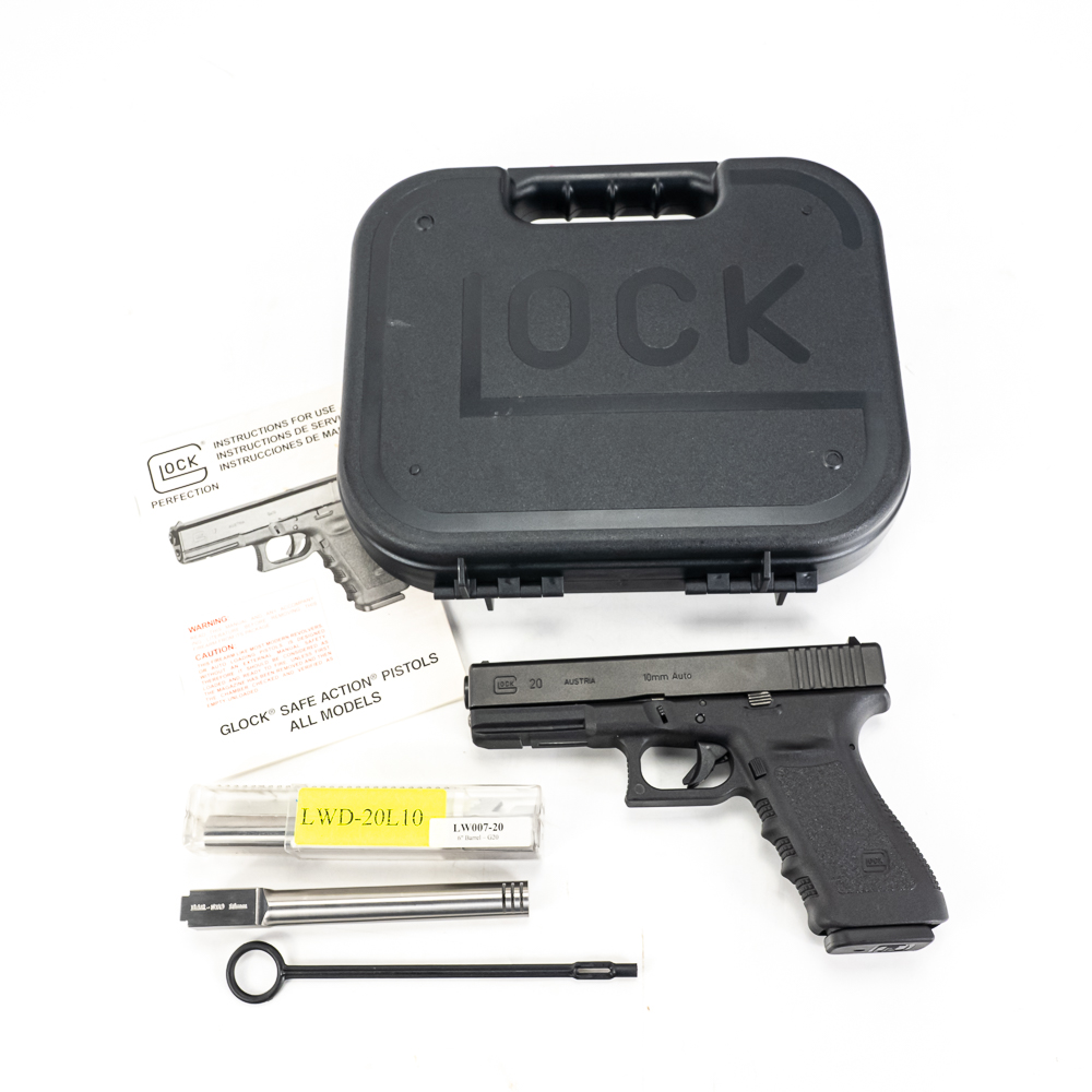 Glock Gen 3 model 20SF pistol. Caliber 10mm Auto. Pistol is Like new in box and appears almost unfired. Pistol also comes with 2 extra aftermarket barrels and has upgraded firing pin and metal back plate on slide. 1 Lone wolf 6″ extended barrel and 1 Bar-sto 6″ extended compensated barrel. Ready to shoot every kind of 10mm from factory to hot hand loads for grizzly bears. These pistols are now discontinued and will be hard to find. See photos.