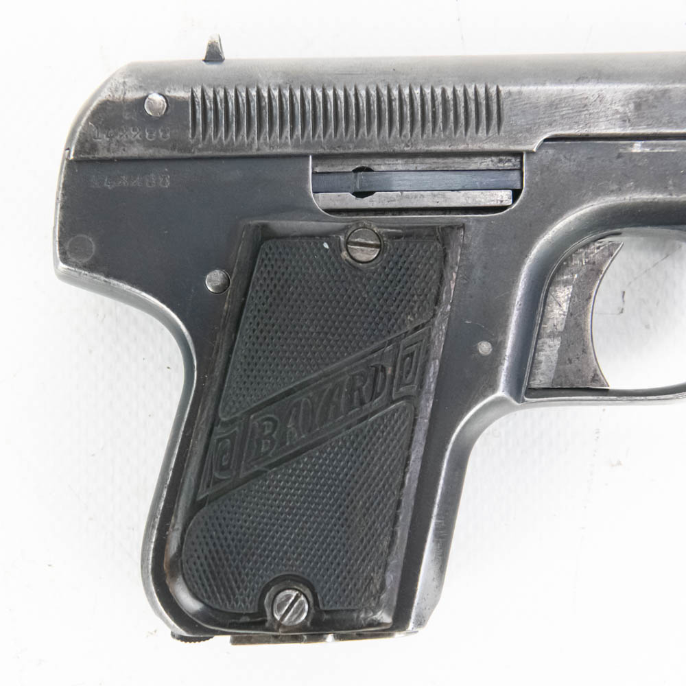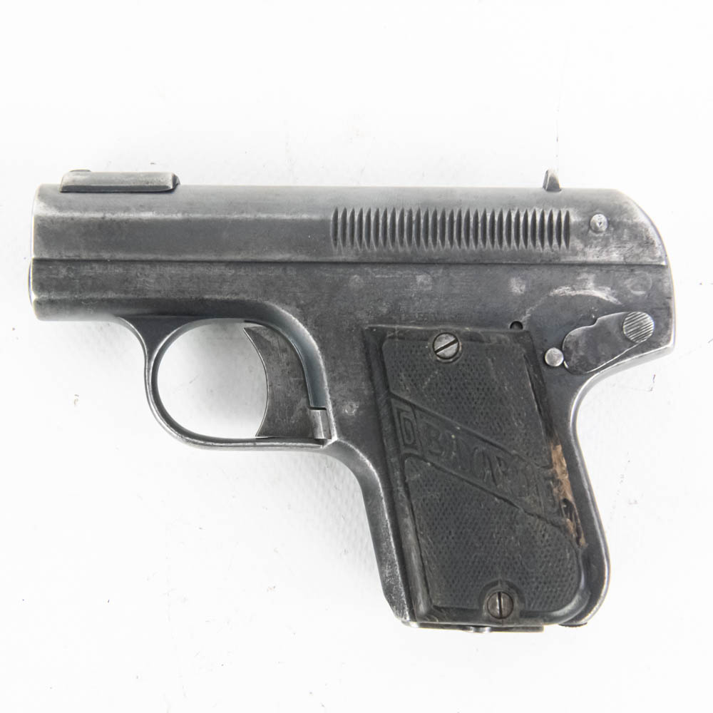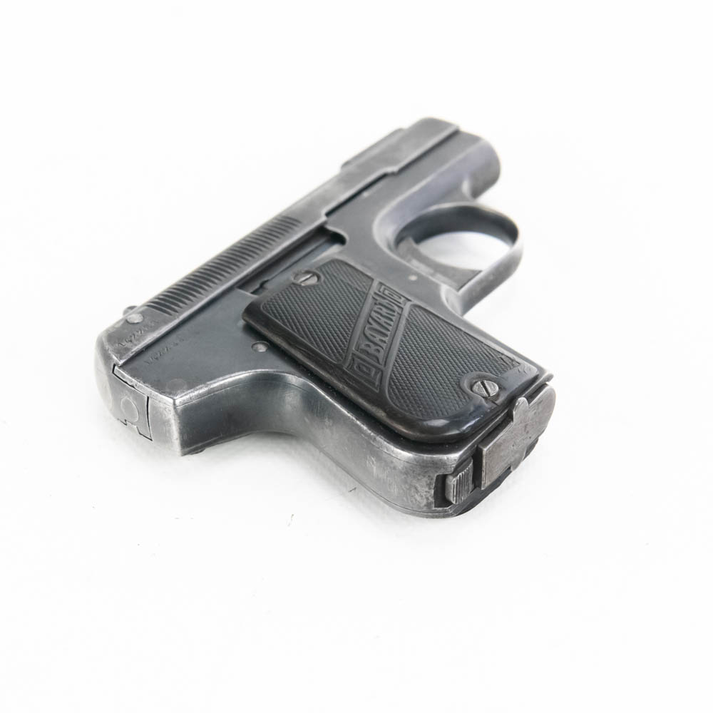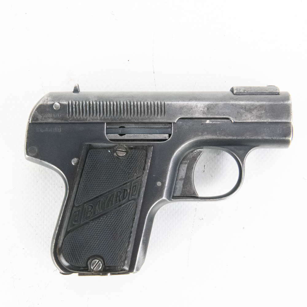 Bayard Pieper model 1908 pocket pistol. Caliber 7.65/32ACP. Interesting spring over barrel design similar to Browning 1900. Pistol is in good condition for age, but bears a lot of finish wear from being carried and used. Pistol features Imperial German proof marks and comes with leather German military holster in fair to rough shape. These guns were issued to soldiers in both World Wars, so this is likely a Bringback that the vet kept using. See photos. S/N 142288
