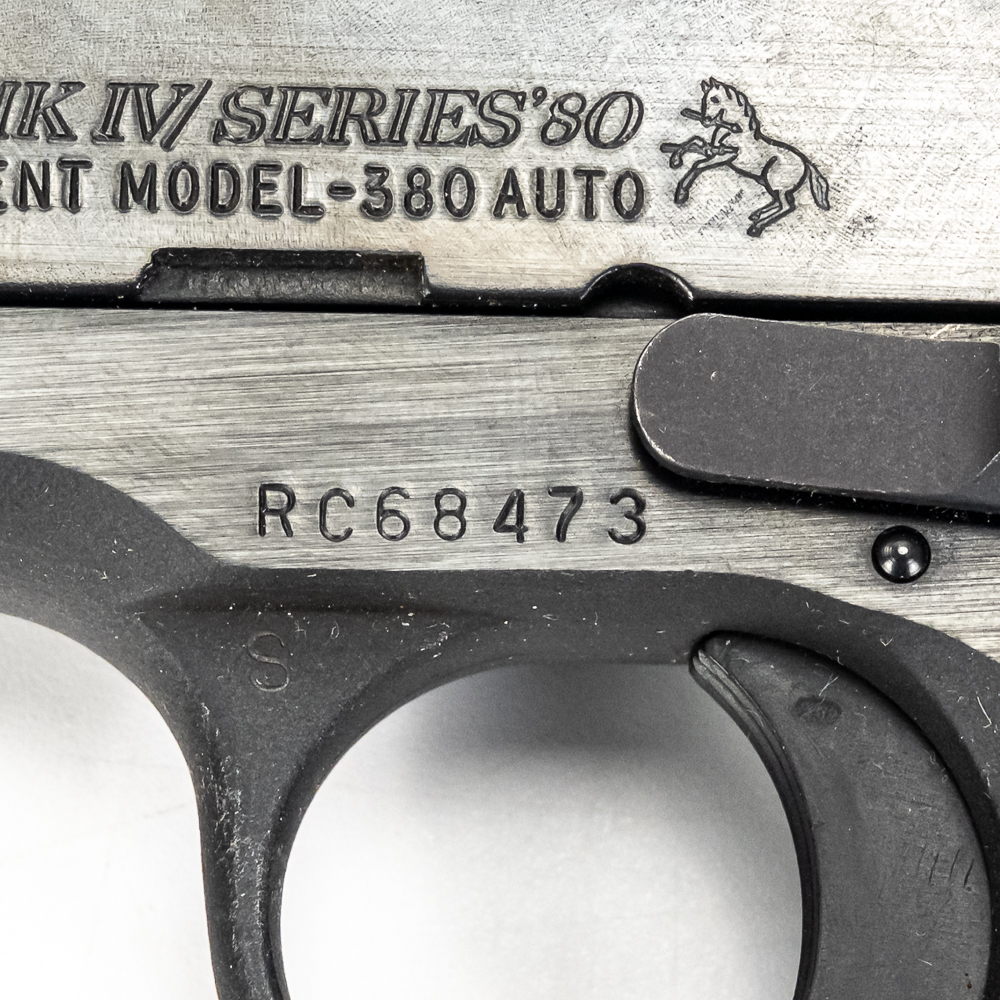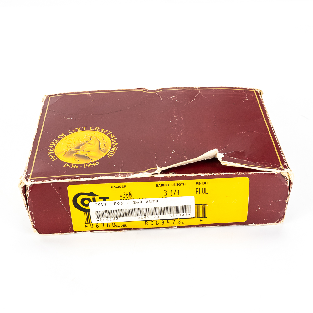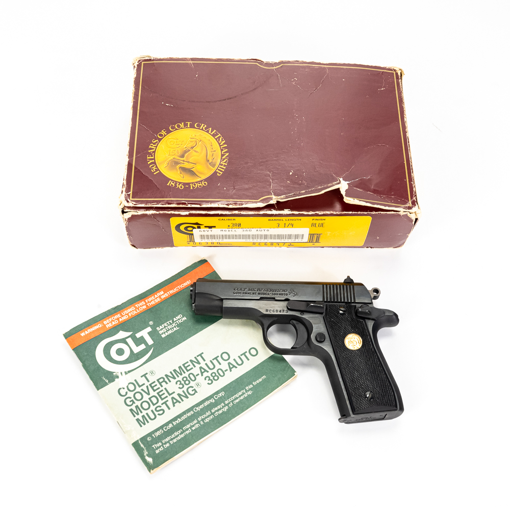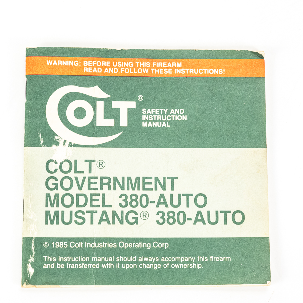 Colt Mustang Mark IV Series 80 Pistol. Caliber .380 With one magazine and manual in original box. Very nice Vintage Colt miniature Government model pistol chambered in .380ACP. Pistol is in excellent, used condition and comes with original box and manual. Finish has minor handling marks, but appears almost unfired. Nice concealed carry pistol. See photos.