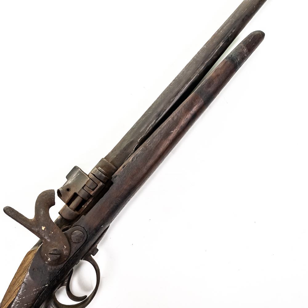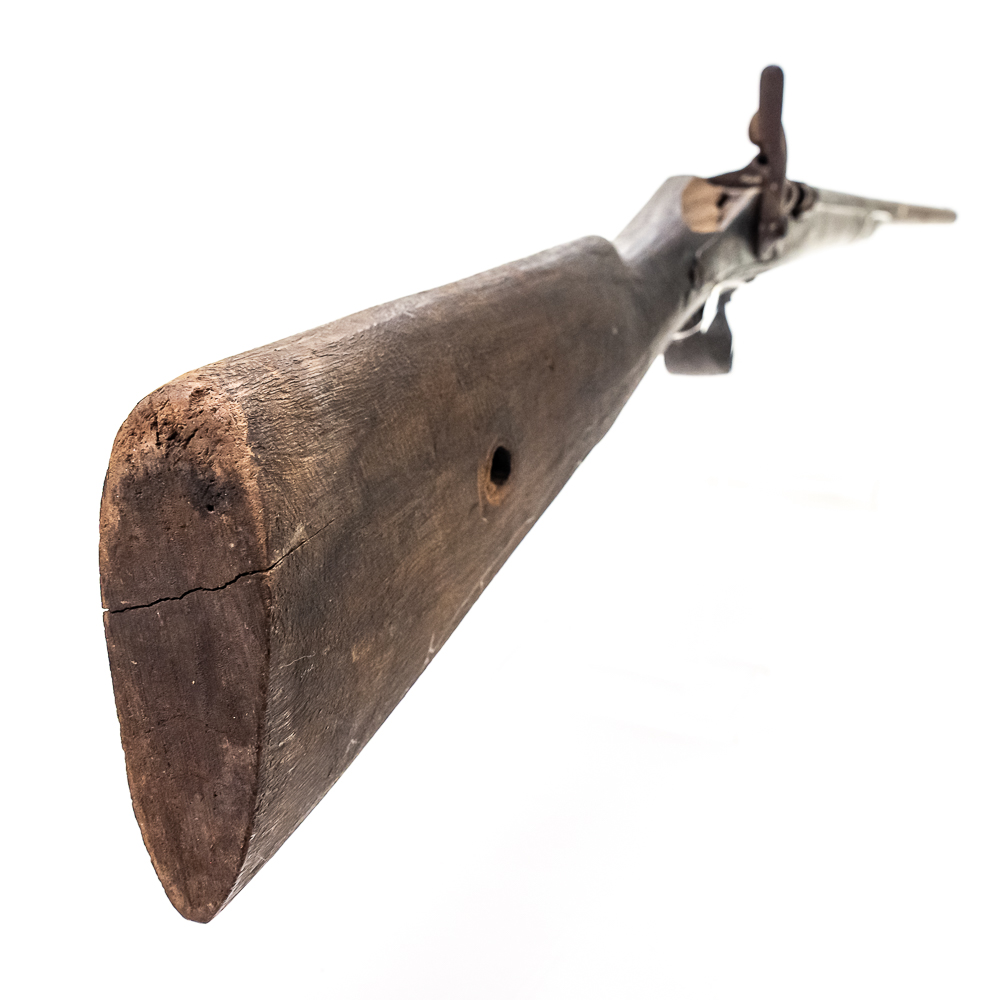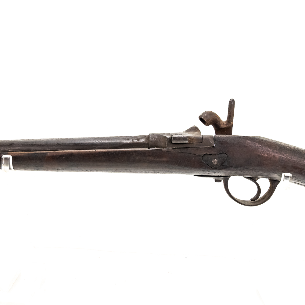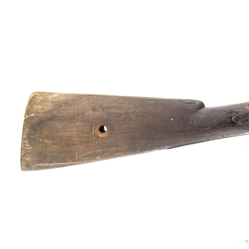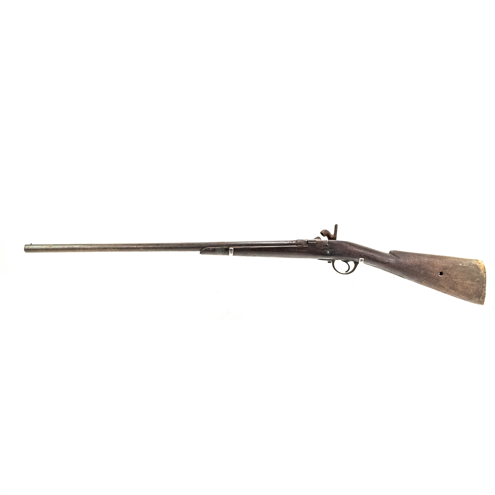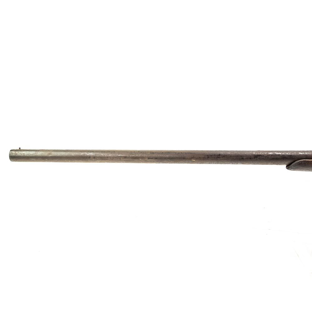Belgian made musket converted to 12ga breech loading shotgun for sale to African and East Asian tribesmen. 32″ barrel is in very rough condition, Snider patent breech mechanism is missing firing pin and metal is heavily corroded. Stock is cut down and had hole drilled to hang on wall. Sold as wall-hanger only but must still go to FFL due to Illinois law.