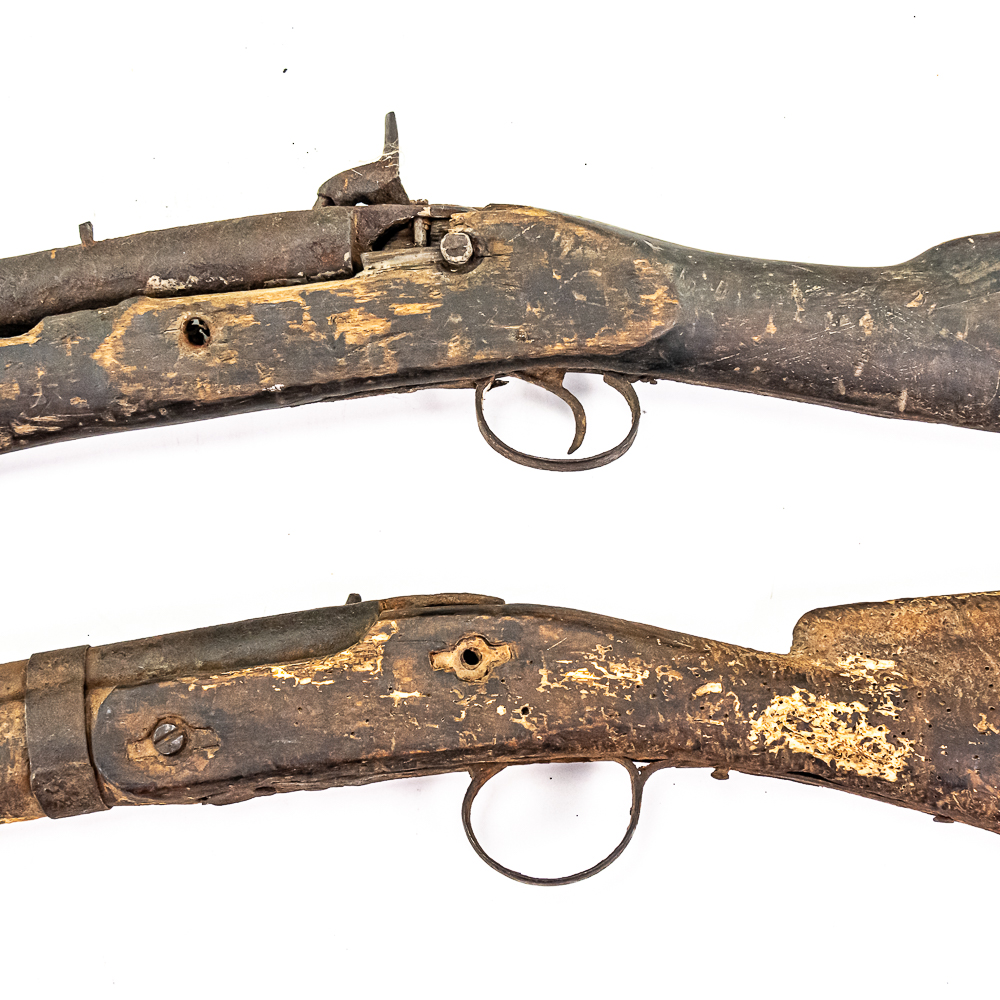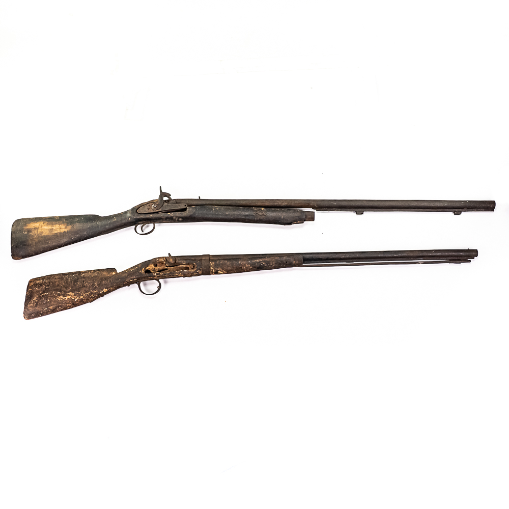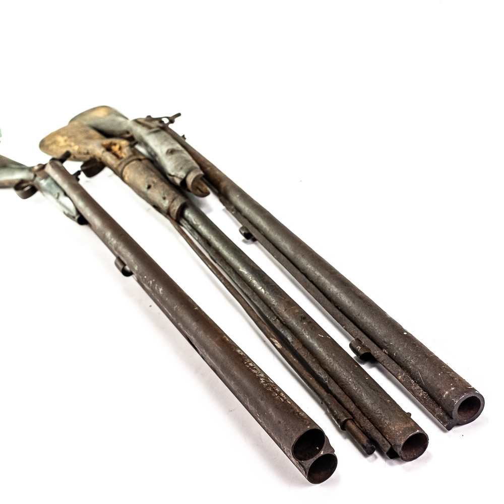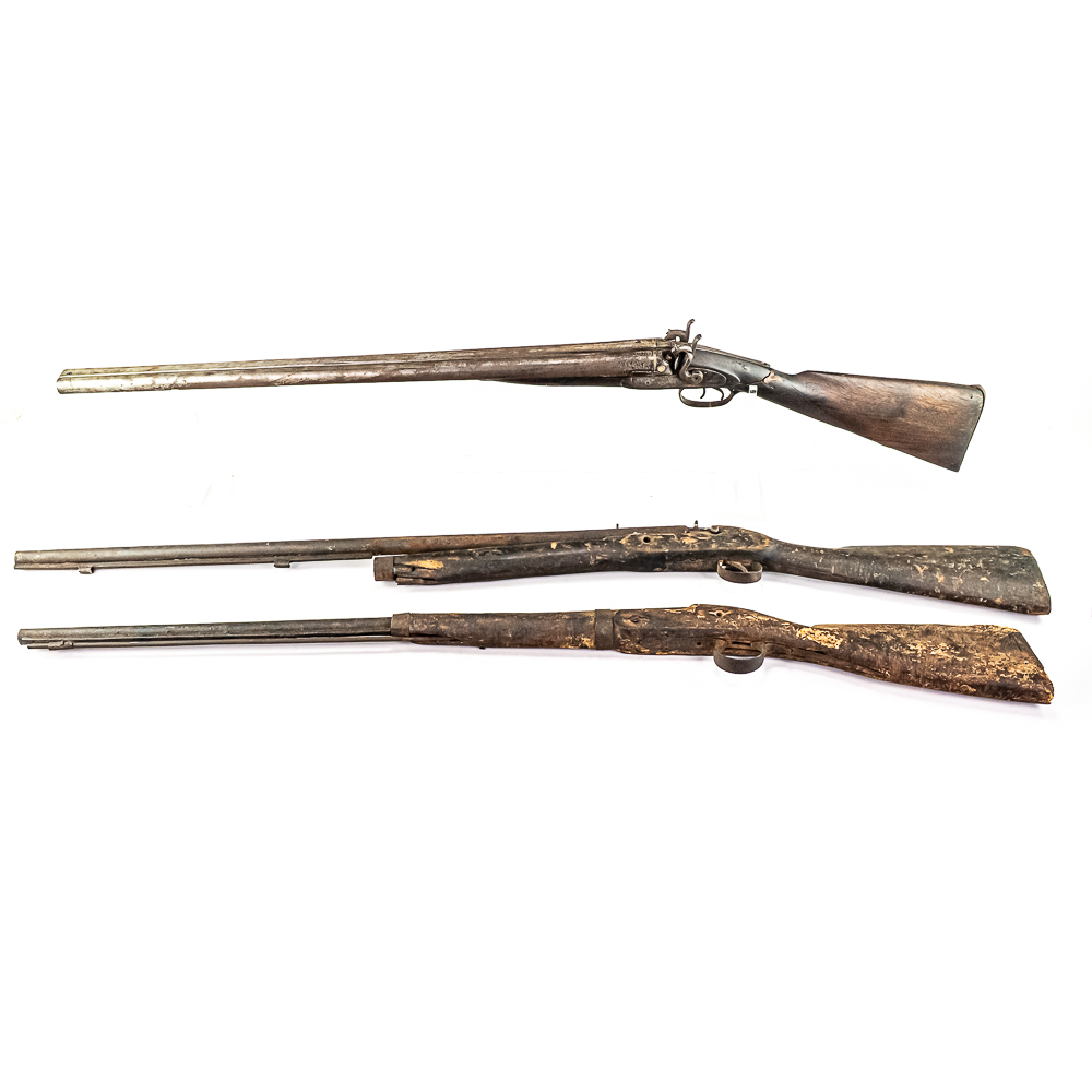 3x Wall Hanger / Gunsmith Blackpowder Unknown MFG Shotguns: 1x 10g SxS and 2x 12g Singles