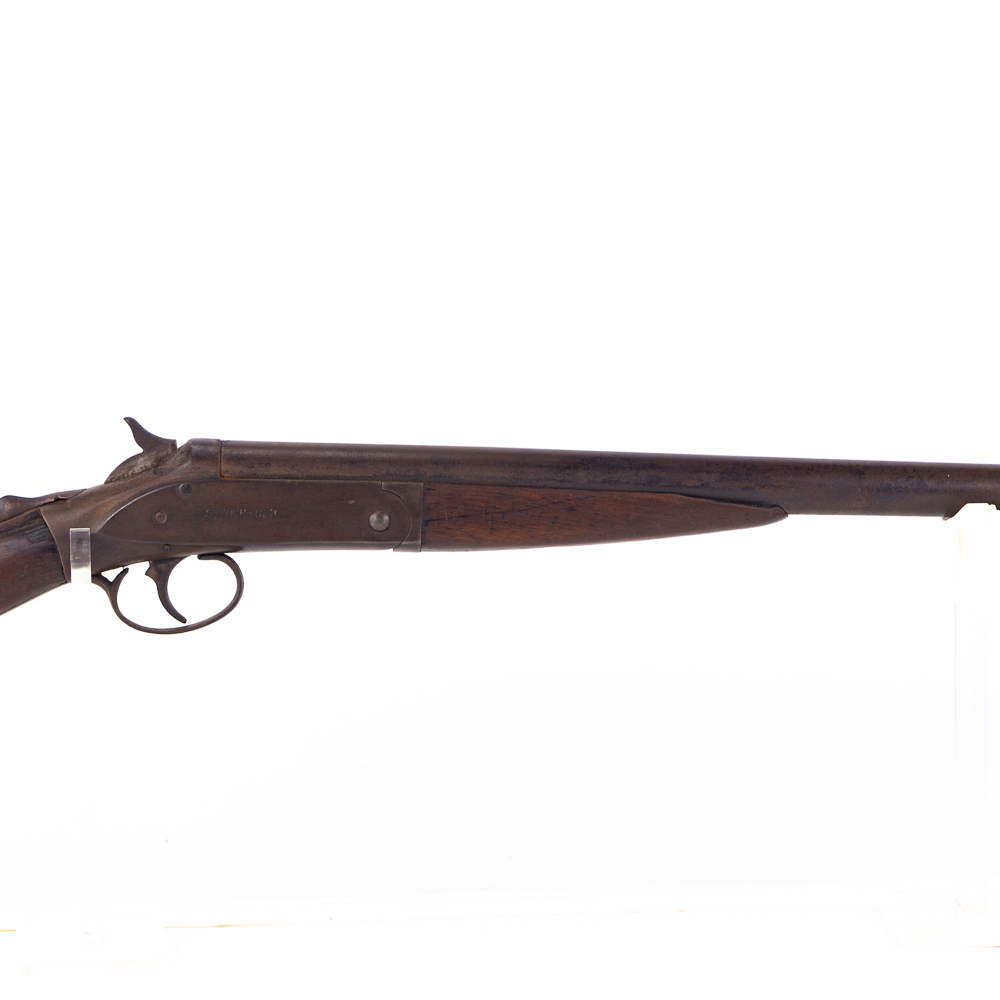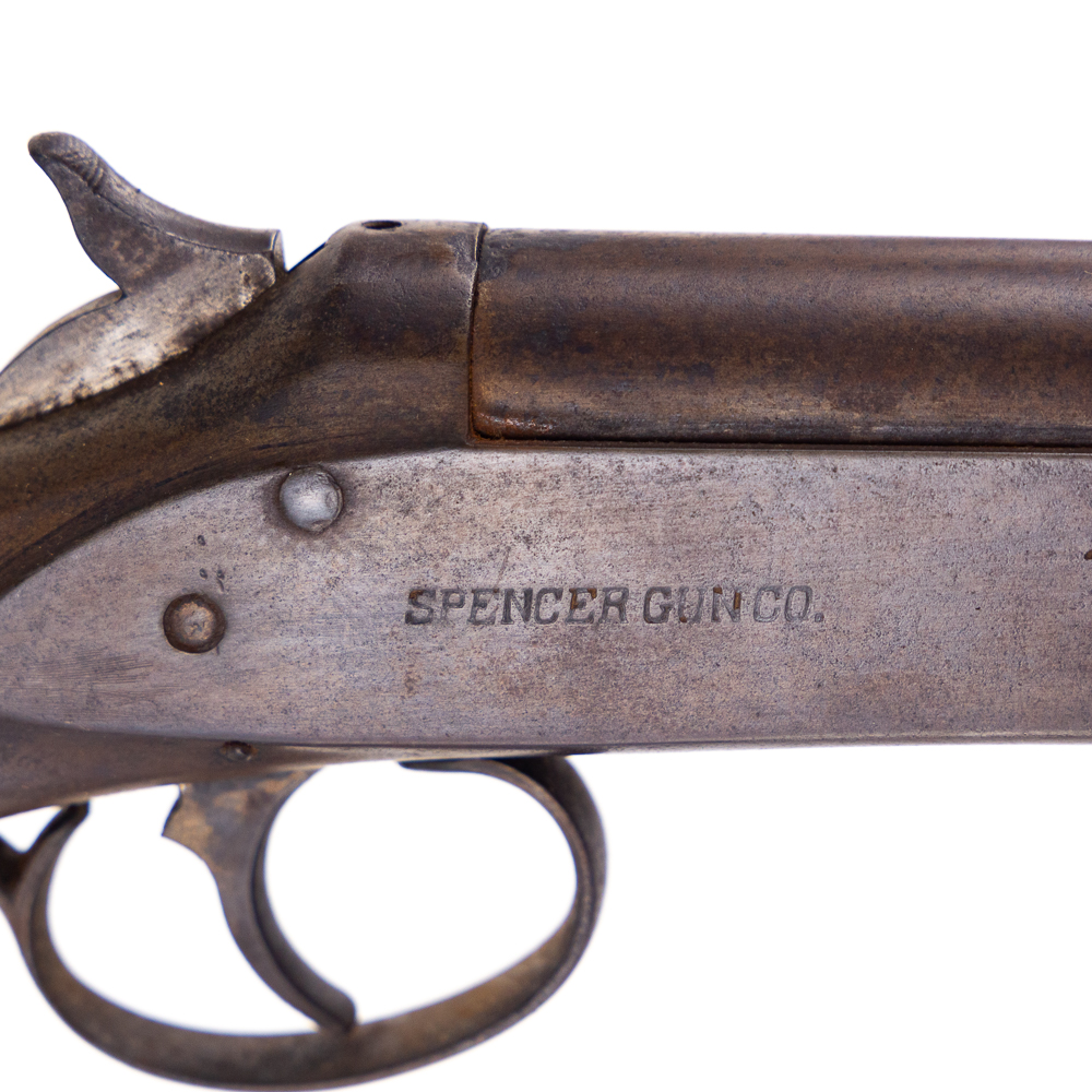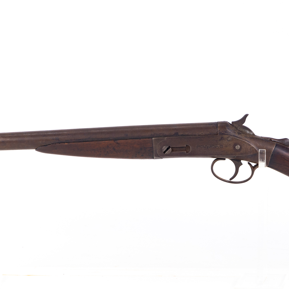 Spencer Single 12g Shotgun in very good, vintage condition. The action is tight and seems fully functional and the bore is shiny ( though a little dirty). The finish has browned with some dark spots. The stock has cracked and has an OLD repair, the forend has a crack MFG 1890-90 C&R Eligible (Illinois law) S/N:154075