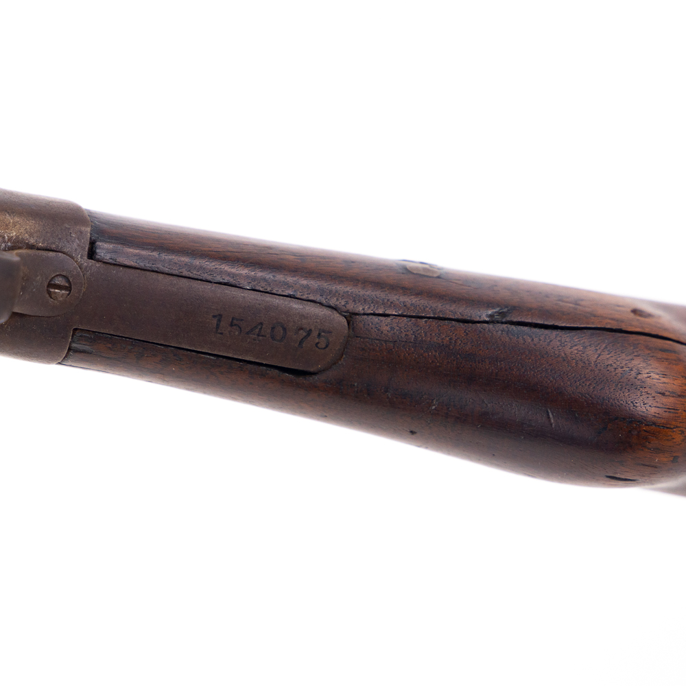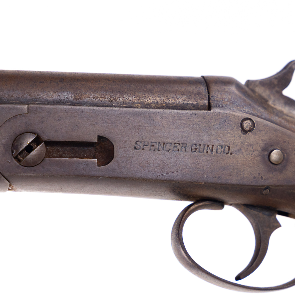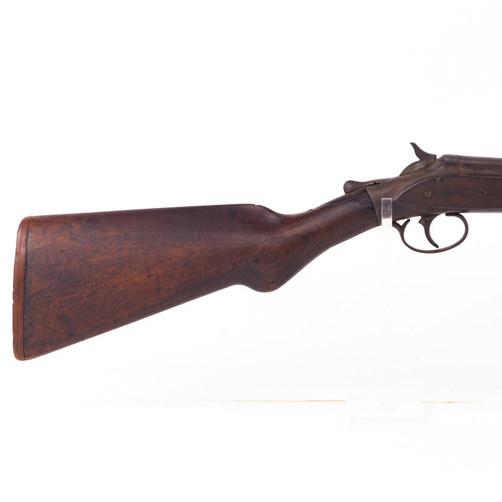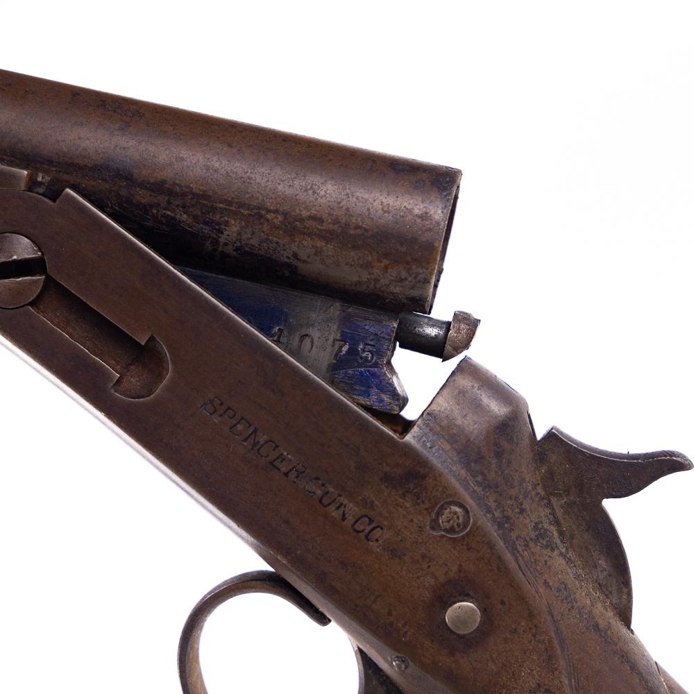 Spencer Single 12g Shotgun in very good, vintage condition. The action is tight and seems fully functional and the bore is shiny ( though a little dirty). The finish has browned with some dark spots. The stock has cracked and has an OLD repair, the forend has a crack MFG 1890-90 C&R Eligible (Illinois law) S/N:154075