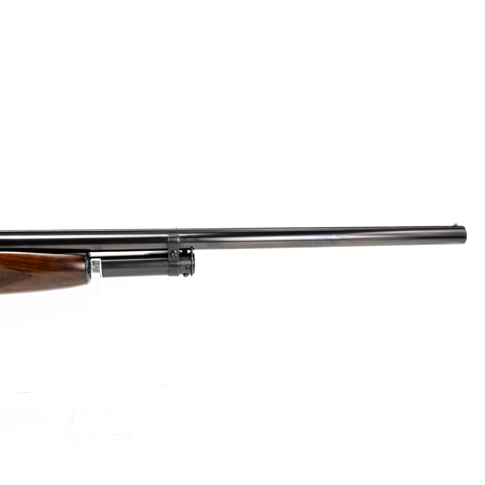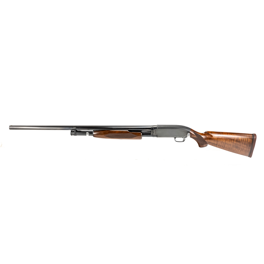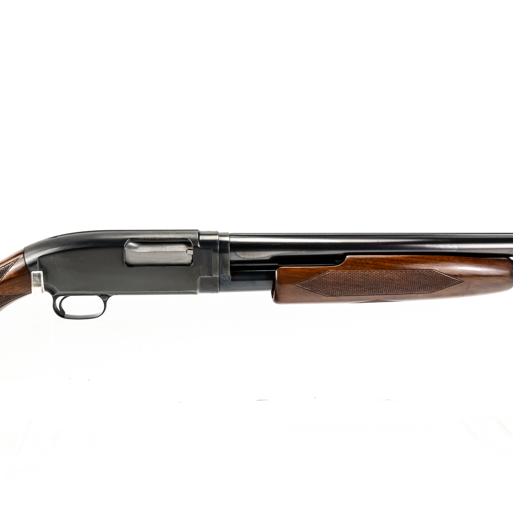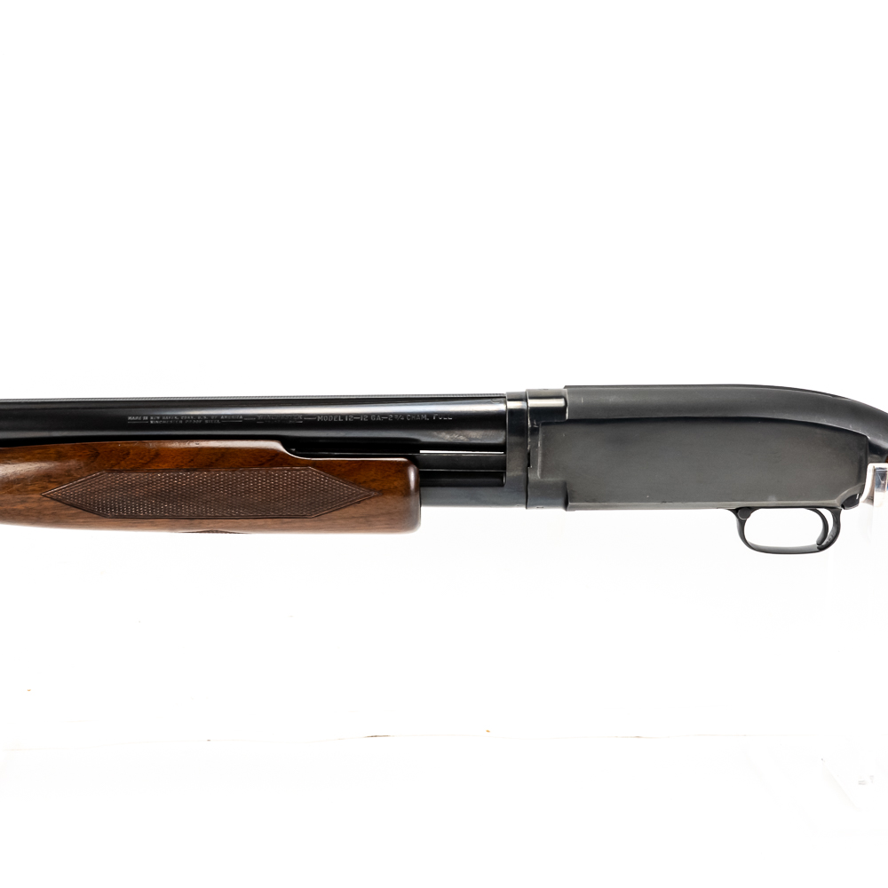 This is an all original, highly collectable 1949 manufactured Winchester Model 12 Trap, 12-gauge shotgun that has NEVER BEEN FIRED! This well-preserved gun has a 30” barrel with full choke, solid rib, and a 14.25” length of pull. The magazine tube holds 5, 2.75” shells and weights 8.3lbs. The wood stock and forend are in perfect condition, with no knicks or scraps. The stock has its factory recoil pad. All metal work is LIKE FACTORY NEW! This shotgun looks like it should still be in the cabinets of a hardware store from 1950. It would definitely elevate any collection it joins. Please see photos for overall condition. Overall Length: 49.5.
