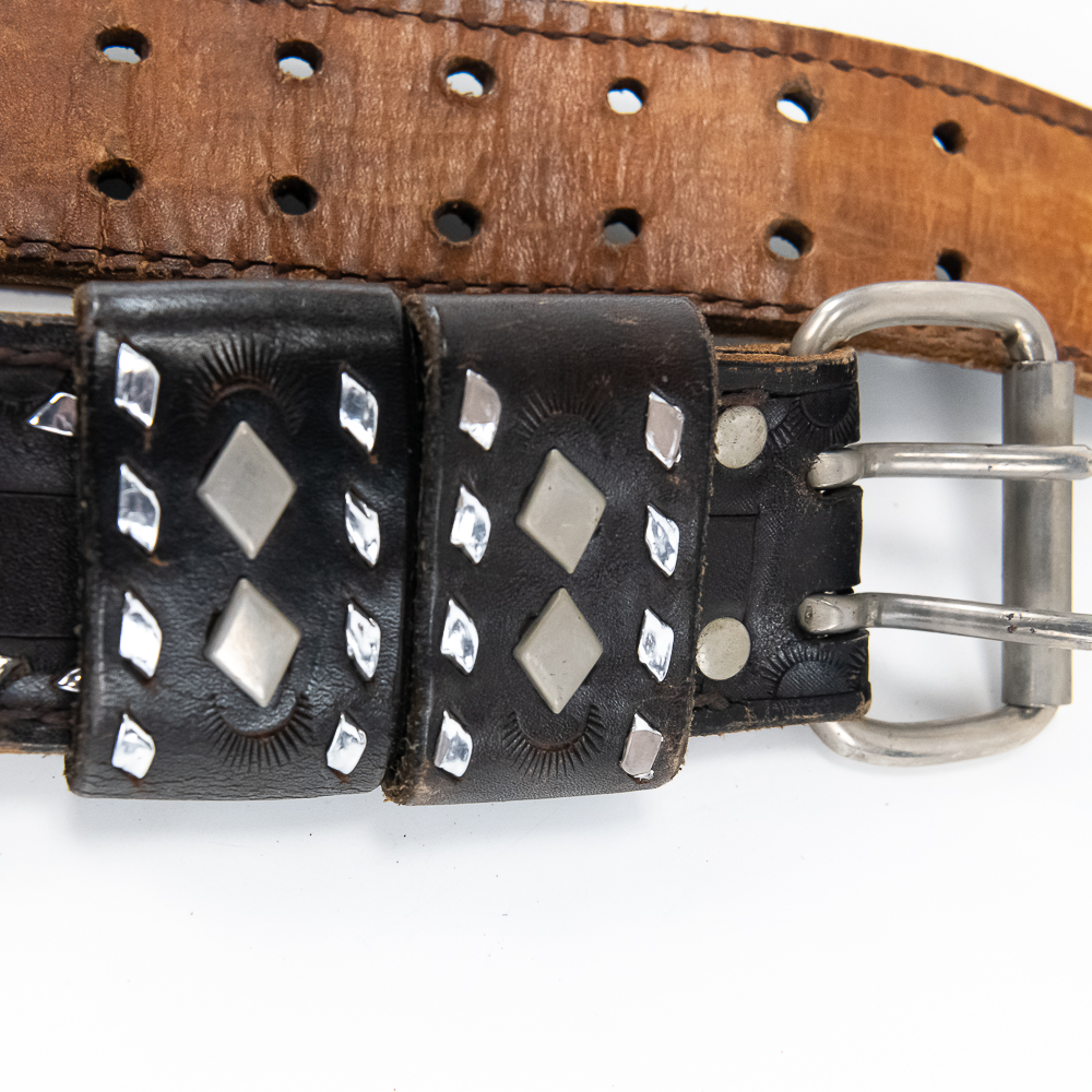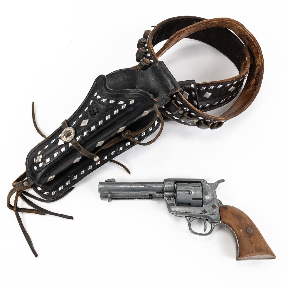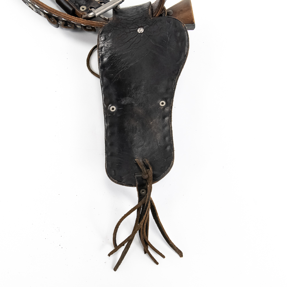 Hondo Single Gun 44″ .45LC Western Rig with 1x Prop Gun. Heavily studded with Diamond Studs in the leather. Used in our Wild West Town and museum .