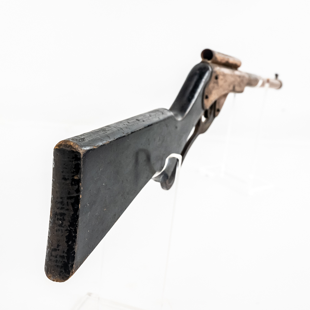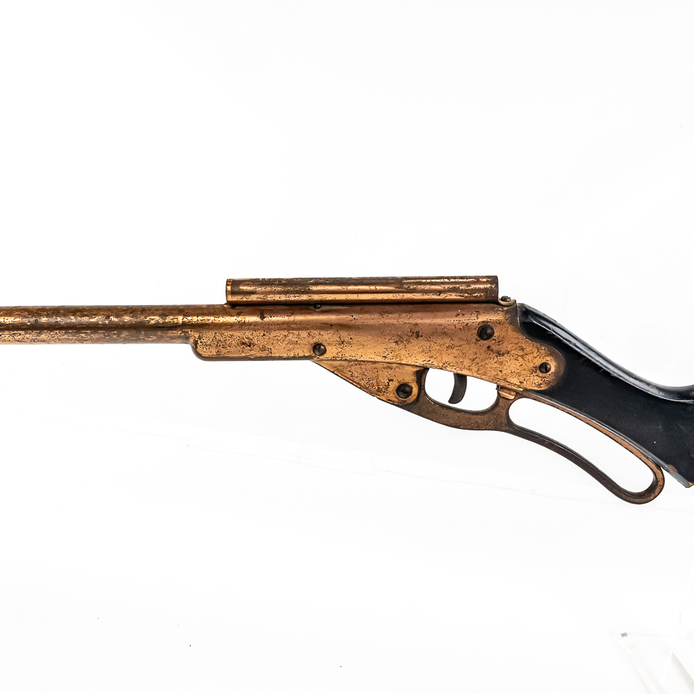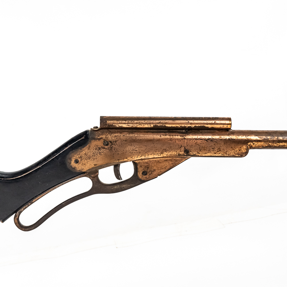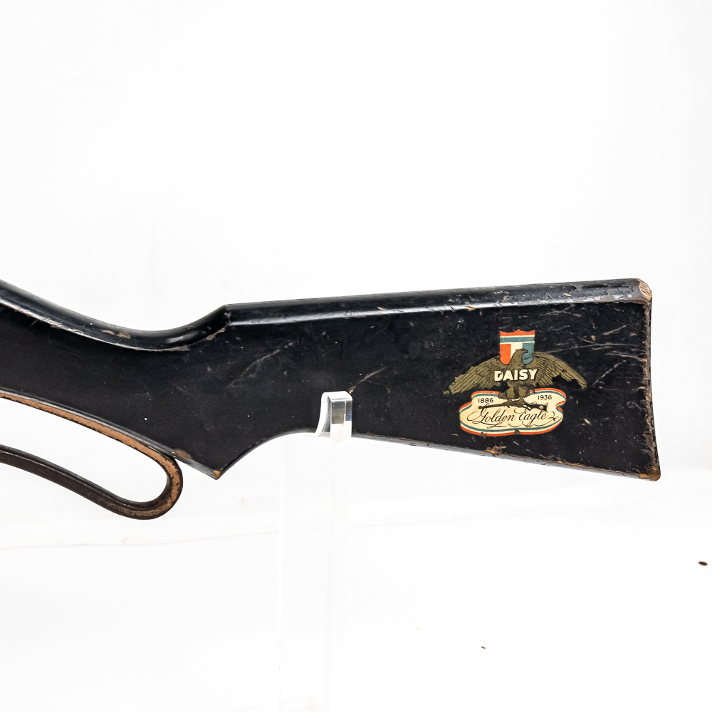 The Daisy number 50 Golden Eagle is a very scarce BB gun, making it a great collectable. These were manufactured between 1936, and 1940 to commemorate Daisy’s 50th anniversary. They feature a rare special copper plating, and a Daisy Golden Eagle decal on the stock. Another unique feature is the rear sight tube that works much like a peep sight – marked No. 50 Daisy Golden Eagle on the top.