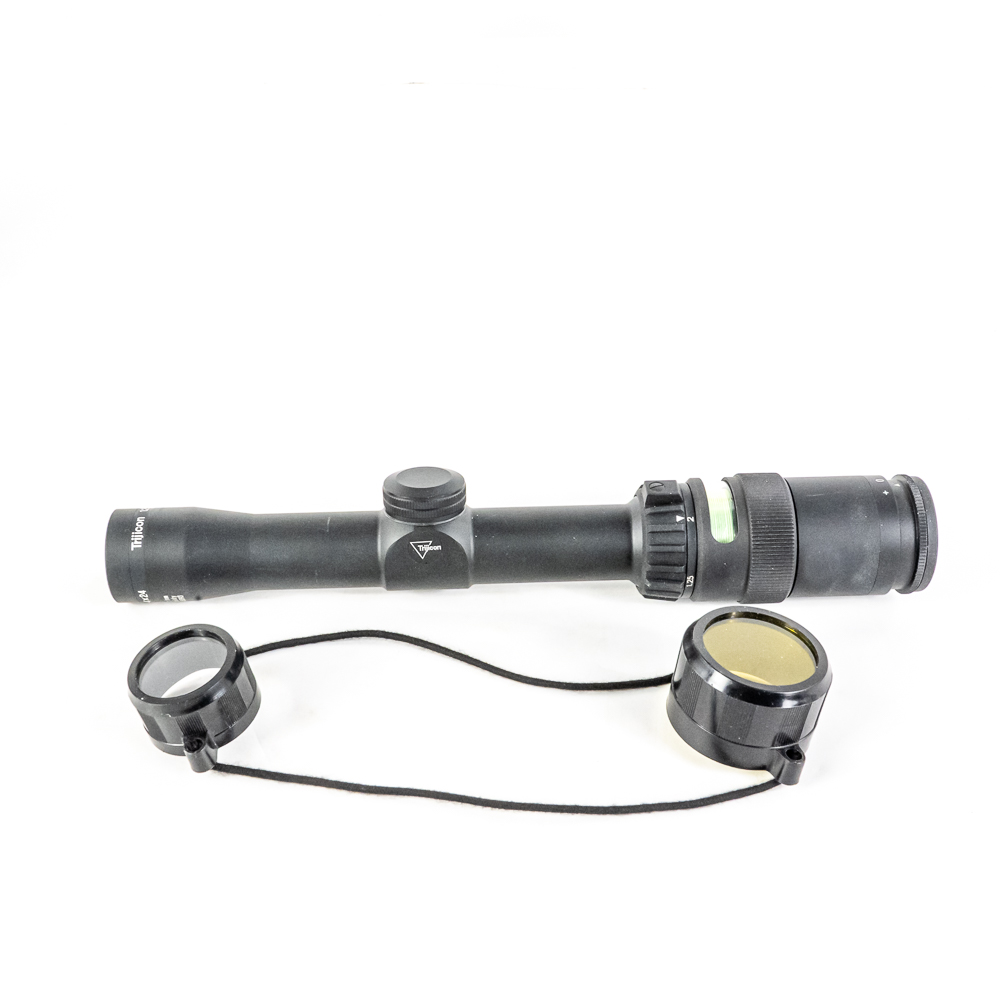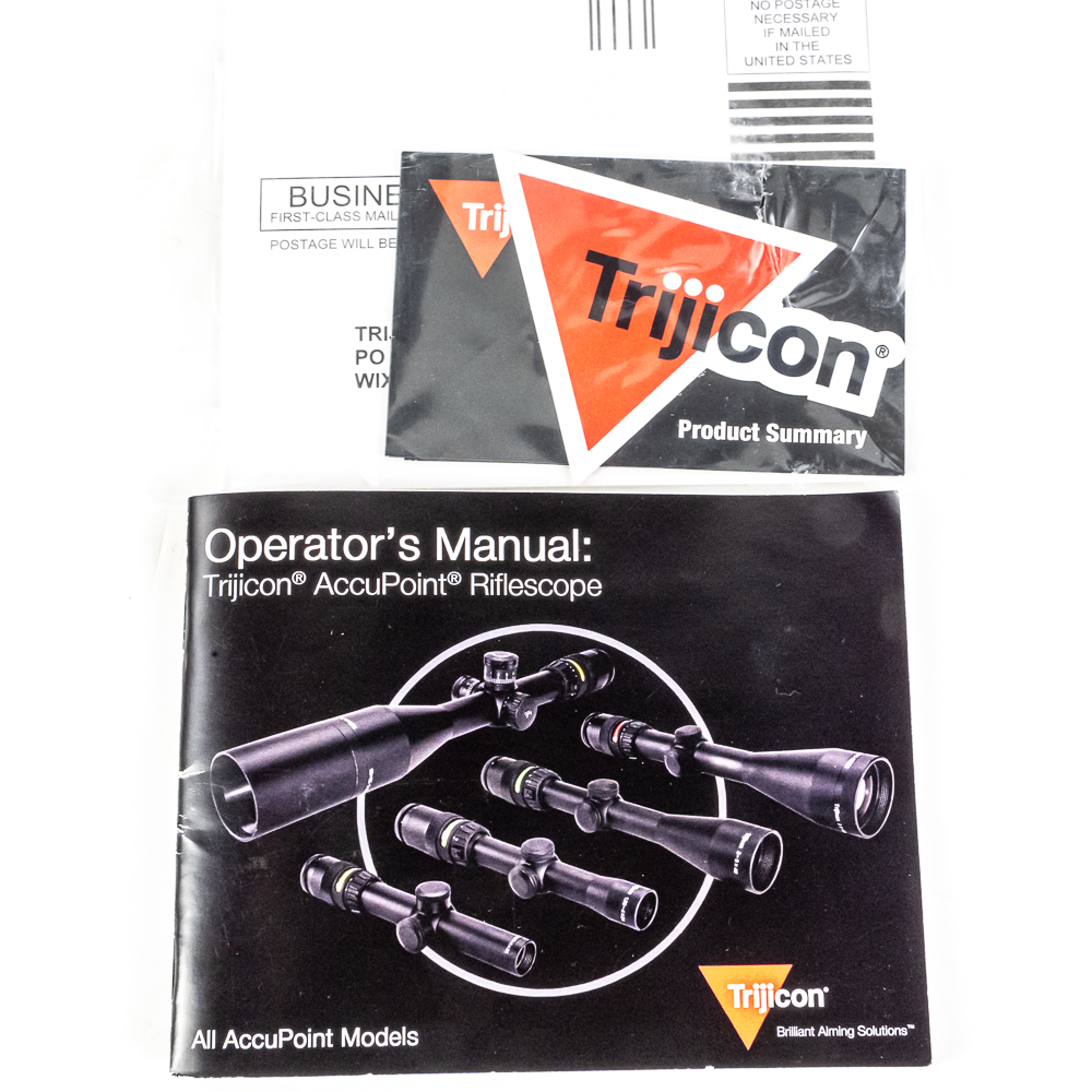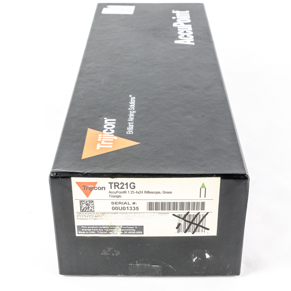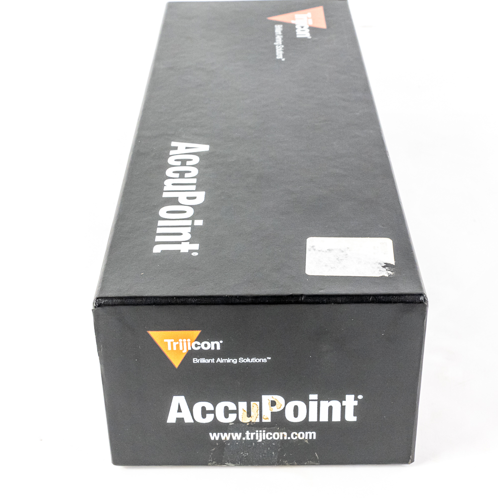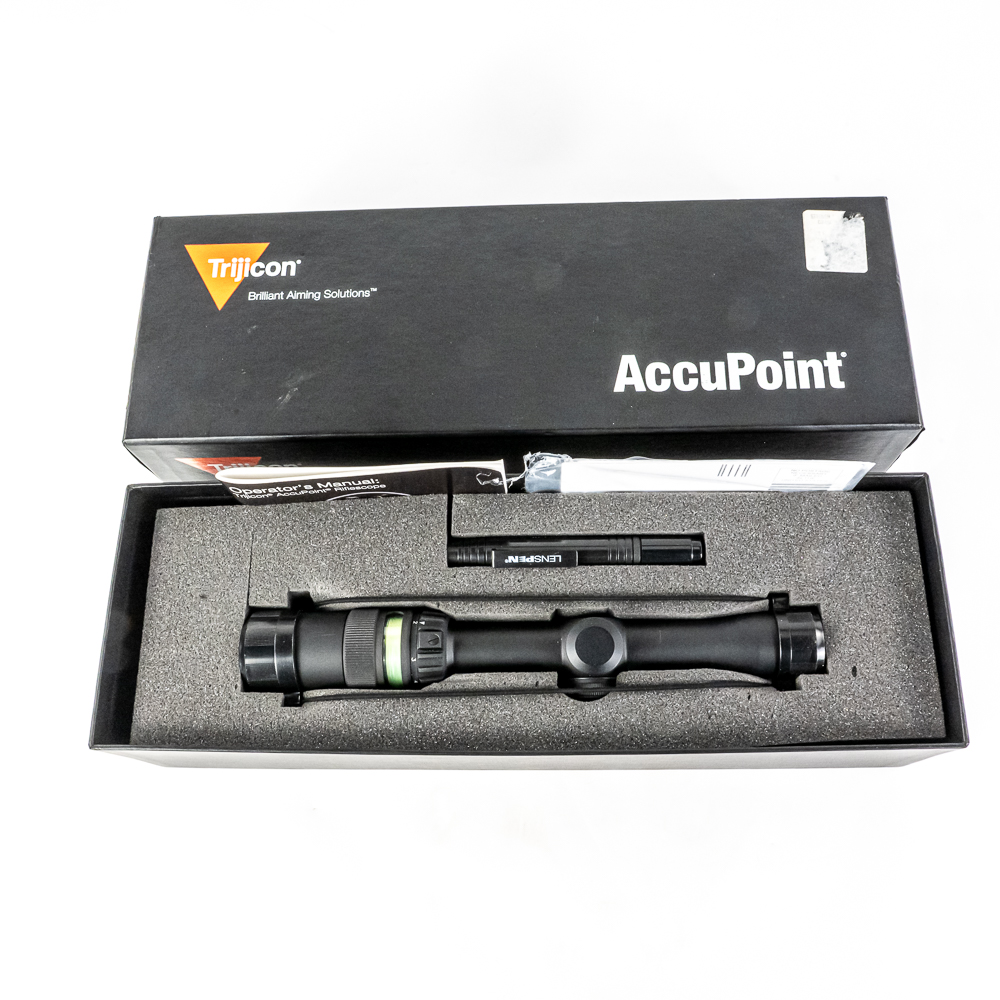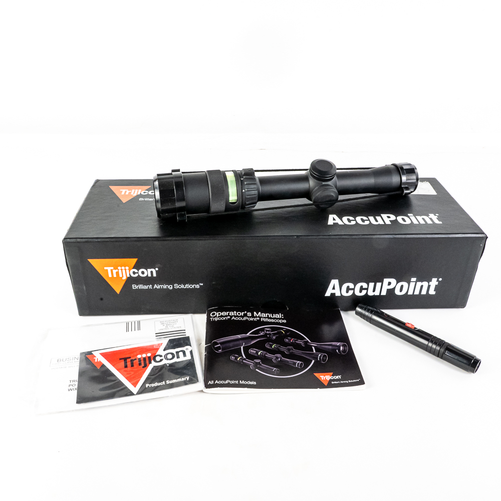 Trijicon AccuPoint 1.25-4X24 Rifle Scope. Dual illuminated Tritium and fiber optic reticle. Scope is Brand new in box, but is older production so tritium is starting to lose brightness. High Quality American made optic ideal for patrol rifles. See photos.