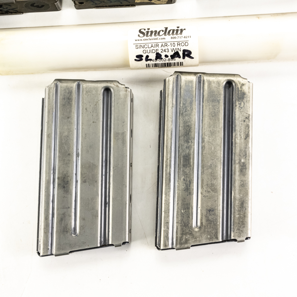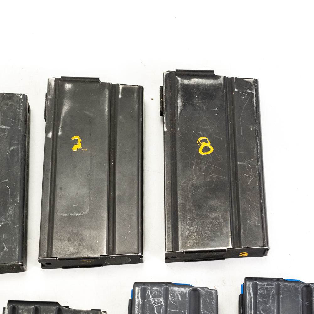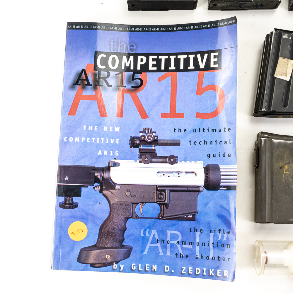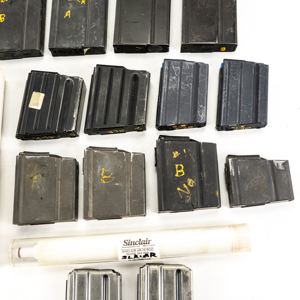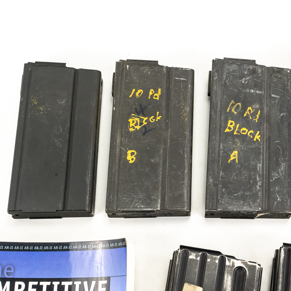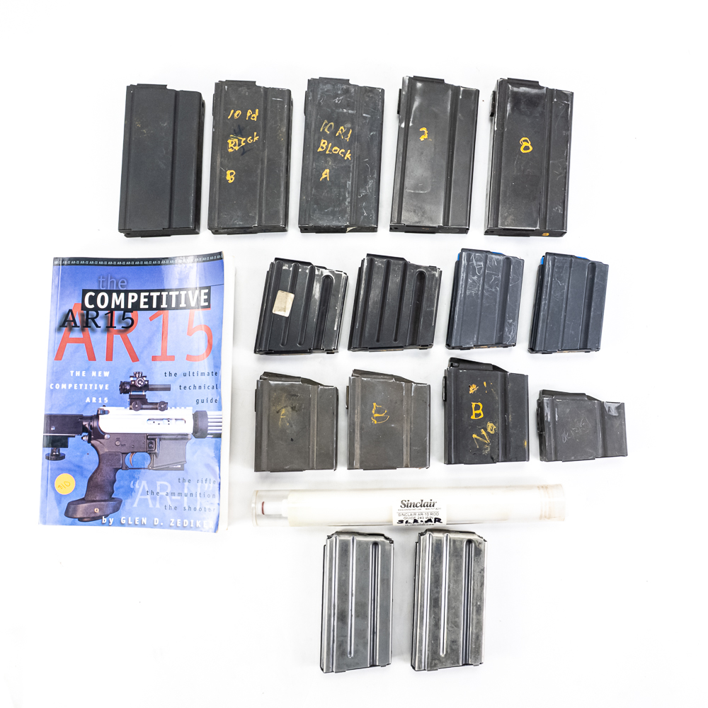15 magazines for M1A and AR pattern rifles. 5 20rd M1A/M14 20rd mags, 3 10rd, and 1 5rd. 2 20rd AR-15, 2 10rd AR-10, and 2 10rd 6.5 Grendel AR-15 mags. Lot also includes AR 10 cleaning rod guide and Competition AR book. Good reseller lot. See photos.