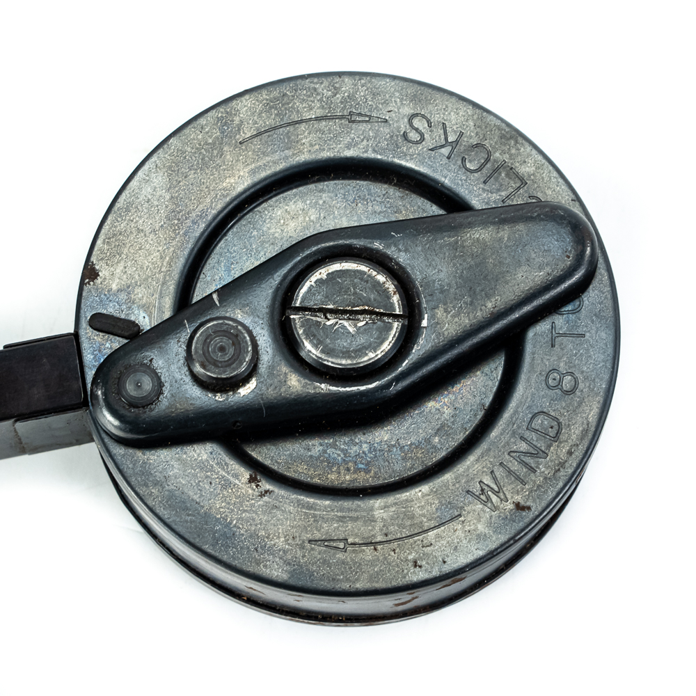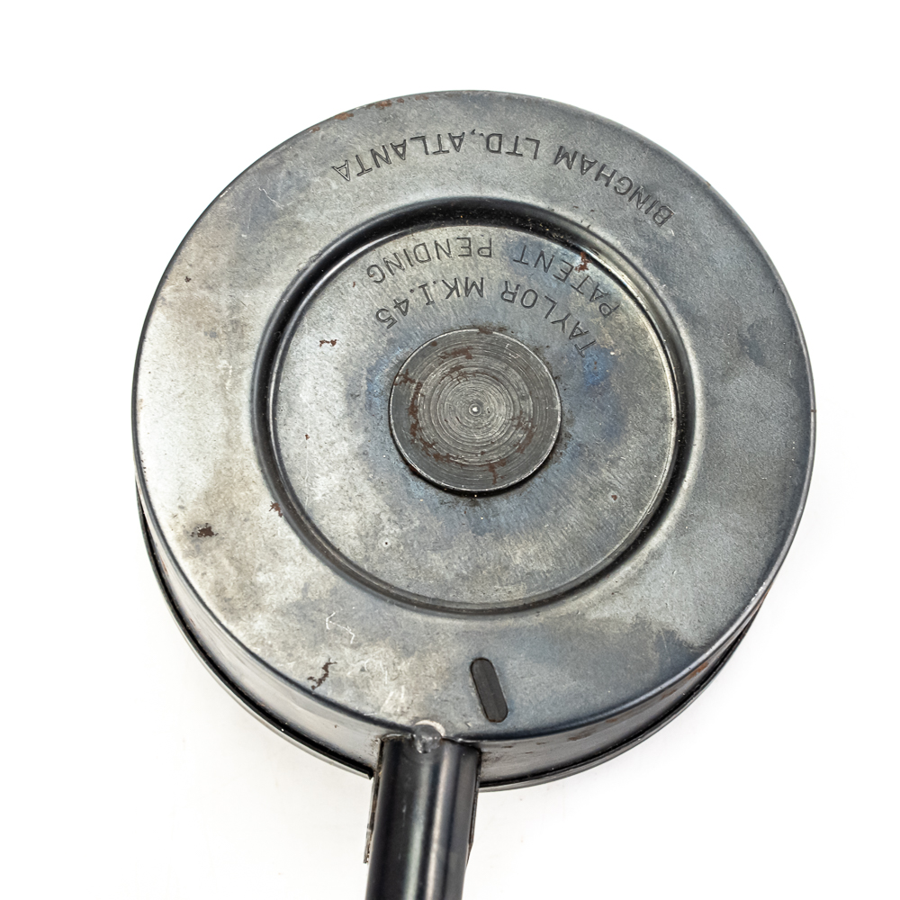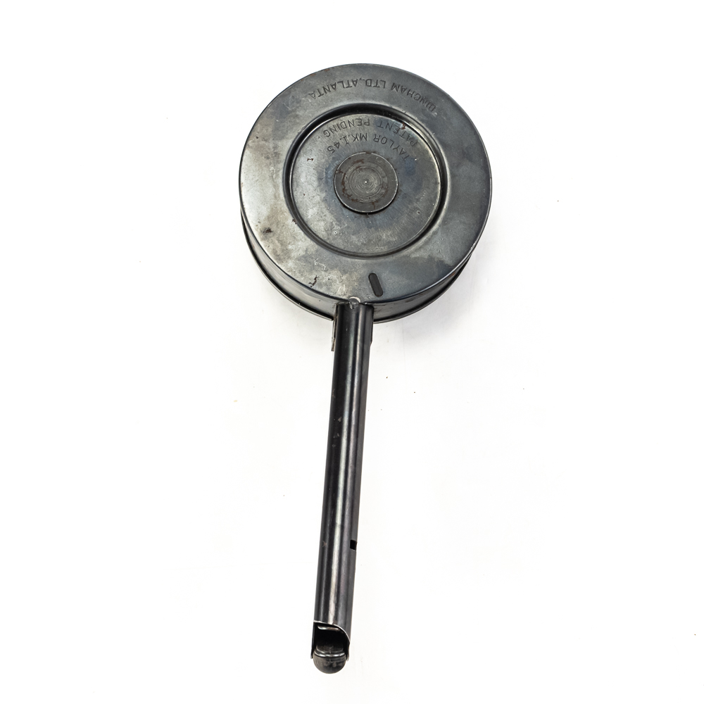 Vintage Taylor MKI Snail Drum Magazine for 1911 Pistol. 29rd. Capacity magazine is similar to German Luger pistol type. Very rare and seldom seen magazine is in good condition with some surface rust from poor storage. Interesting collector item or range toy. See photos.