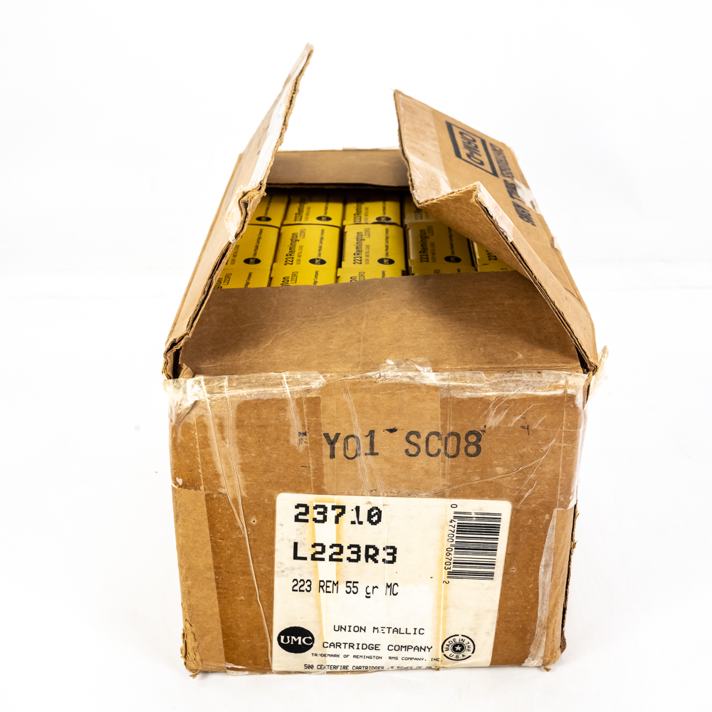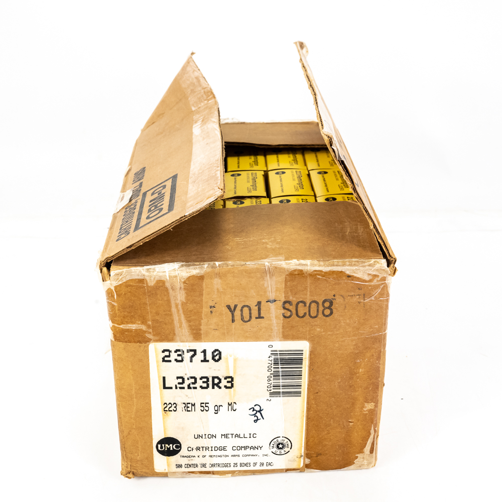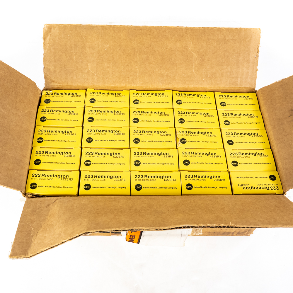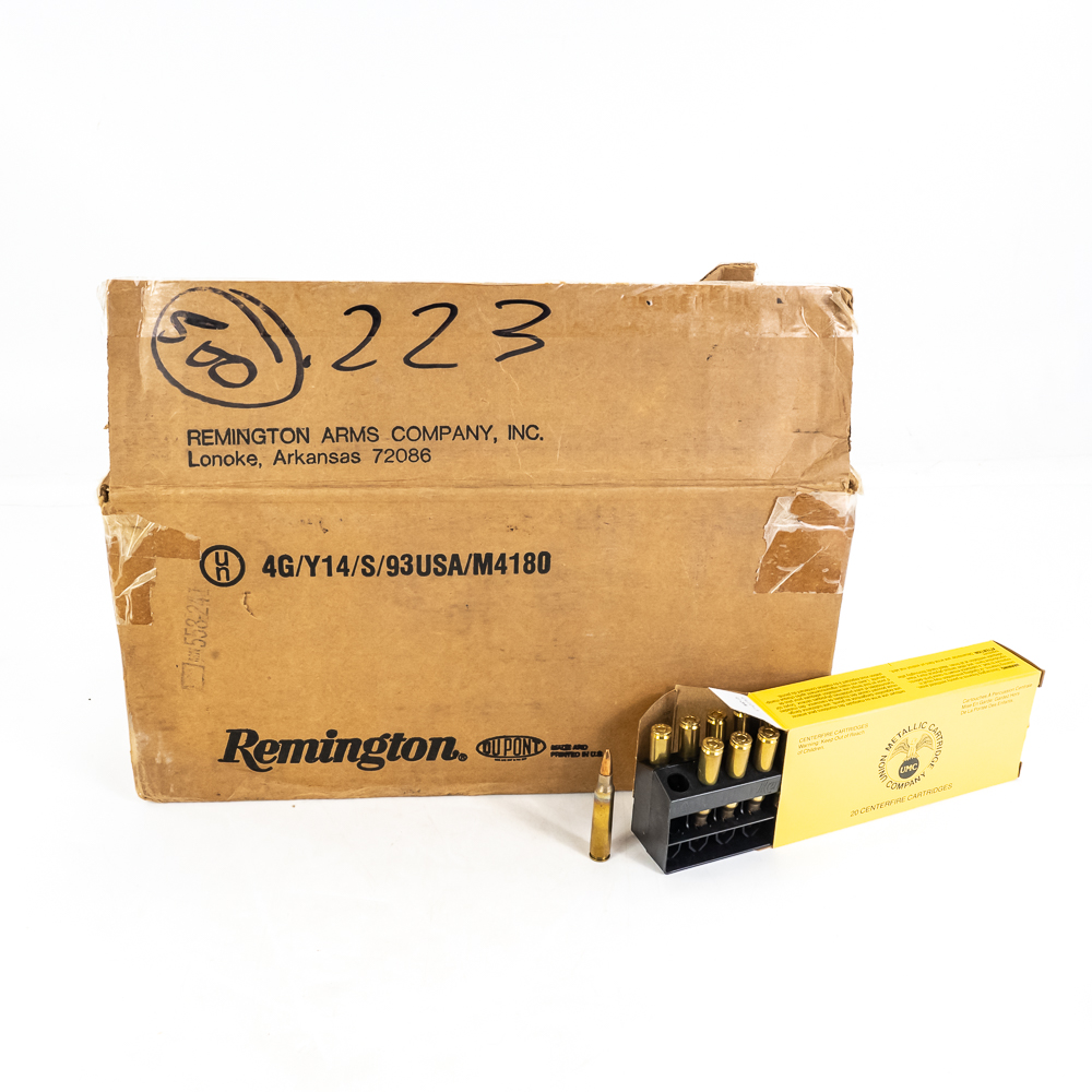 500 rounds of Remington caliber .223 Remington ammunition. 55gr. FMJ bullets. Brand new brass case ammunition in 20rd boxes. Great stockpile ammunition! See photos.