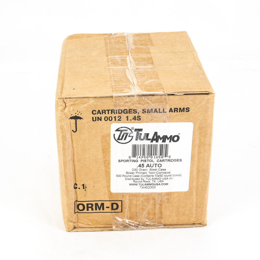 500rds of Wolf caliber 45ACP ammunition. 230Grain FMJ ammunition. New in box steel case ammunition. Great for blasting. See photos.