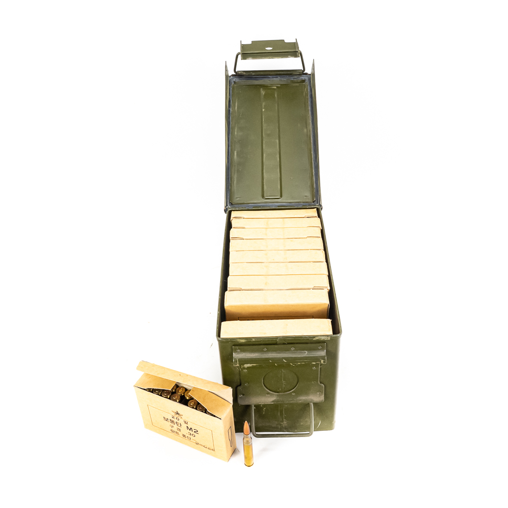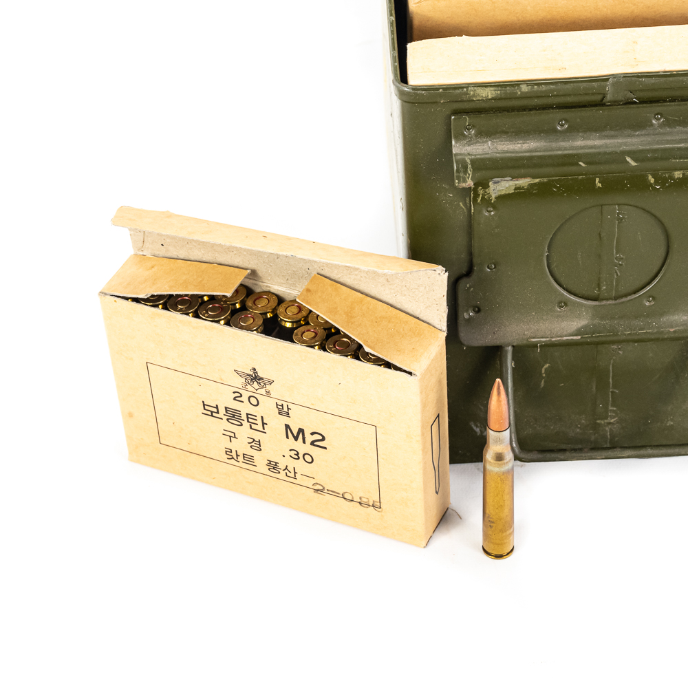 400 rounds of caliber .30-06 M2 ball ammunition. Korean Military surplus ammunition. Ammunition is packed in 20 round boxes inside metal .50cal ammunition can. Good range or stockpile ammunition. See photos.