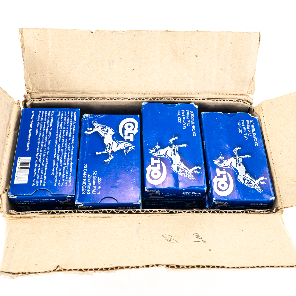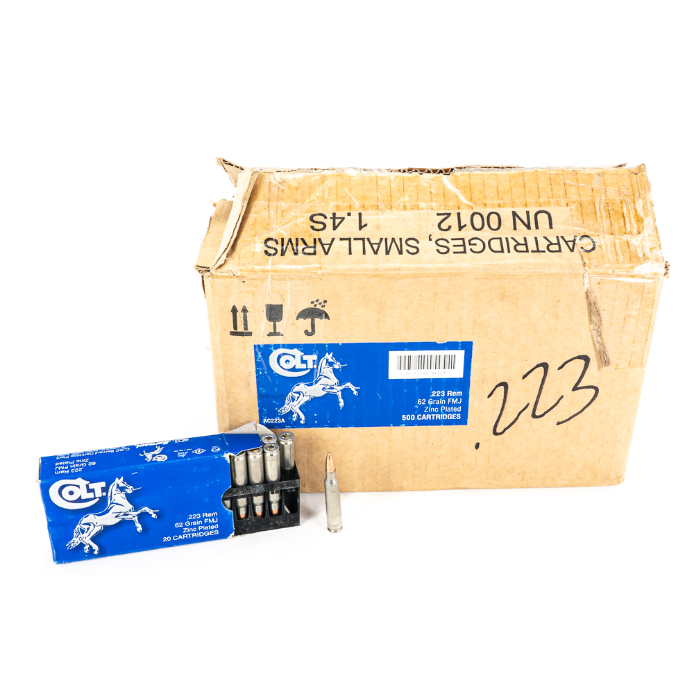 600 rounds of caliber .223 Remington ammunition. Ammunition is Barnaul Colt branded steel case 55gr. FMJ ammunition in 20 round boxes. Good range or stockpile ammunition. See photos.