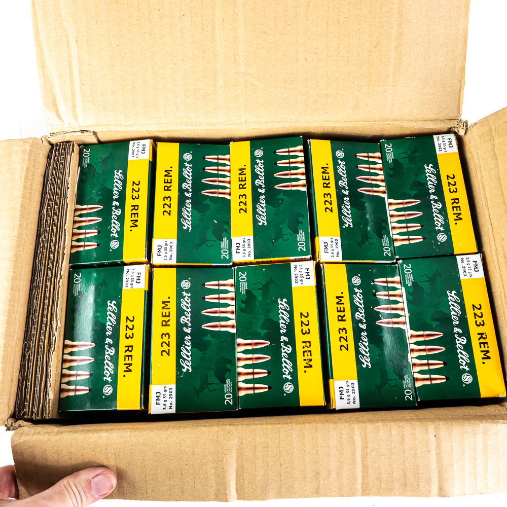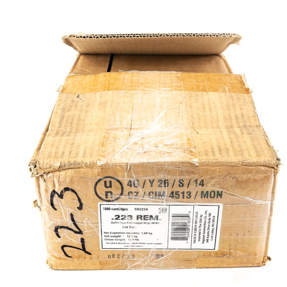 1000 rounds of caliber .223 Remington ammunition. Ammunition is Sellier & Bellot brass cased 55Gr FMJ ammunition. Ammunition is packaged in 20 rd boxes. Good range or stockpile ammunition. See photos.
