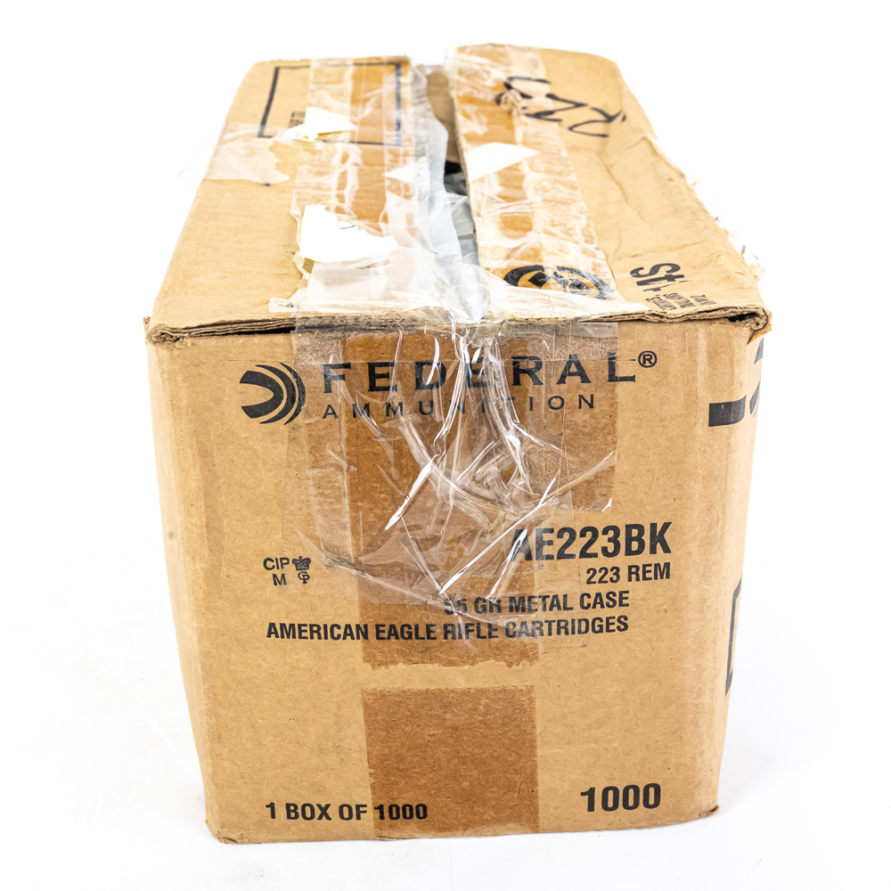 1000 rounds of caliber .223 Remington ammunition. Ammunition is Federal American Eagle 55gr. FMJ ammunition. Nice Brass cased reloadable ammunition in bulk pack. See photos.