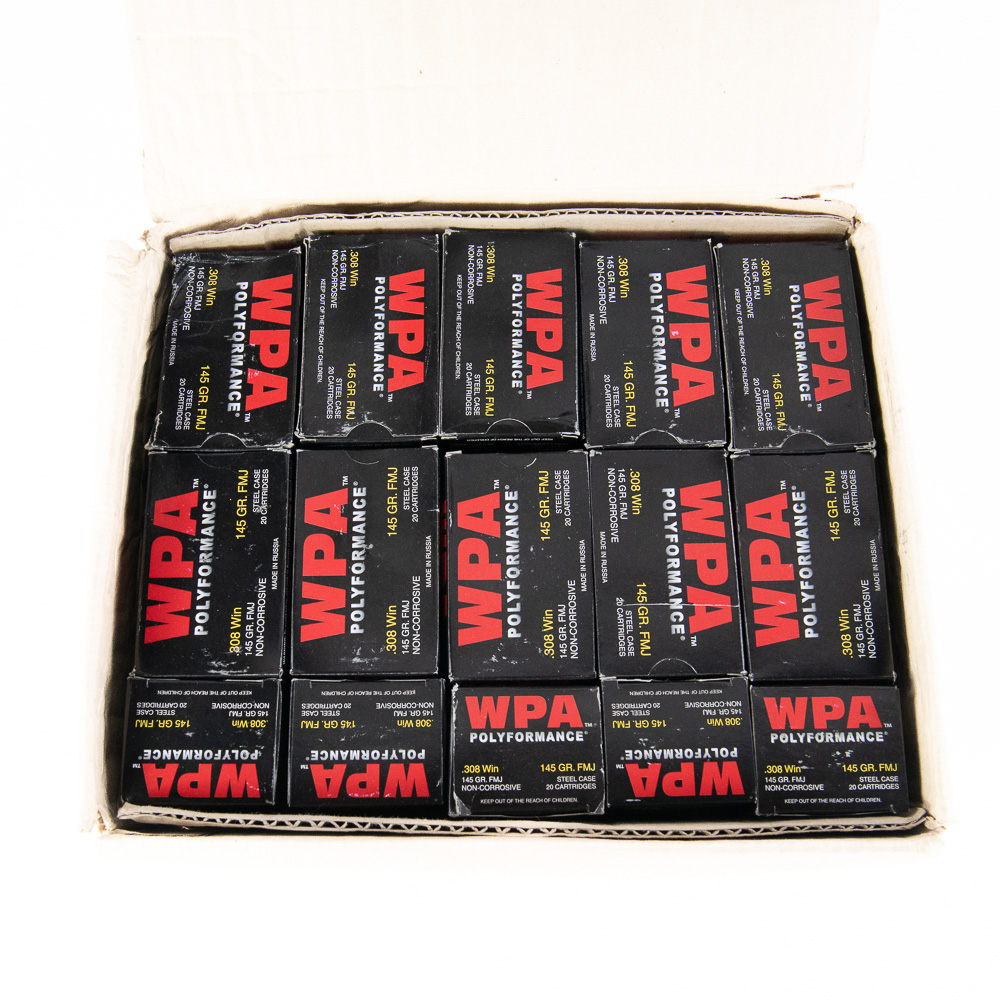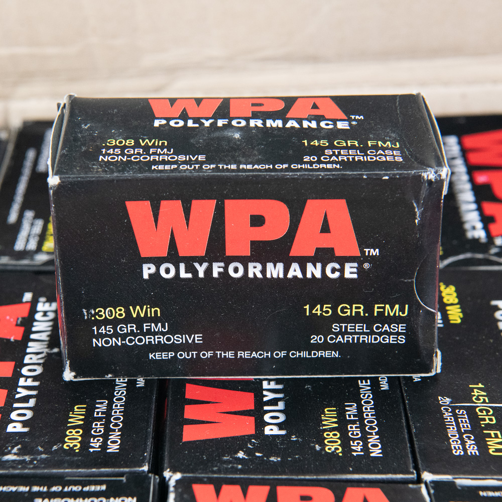 500 rounds of caliber .308 Winchester ammunition. Ammunition is Wolf polyformance steel cased 150gr. FMJ ammunition in 20 round boxes. Good range or stockpile ammunition that is hard to find. See photos.