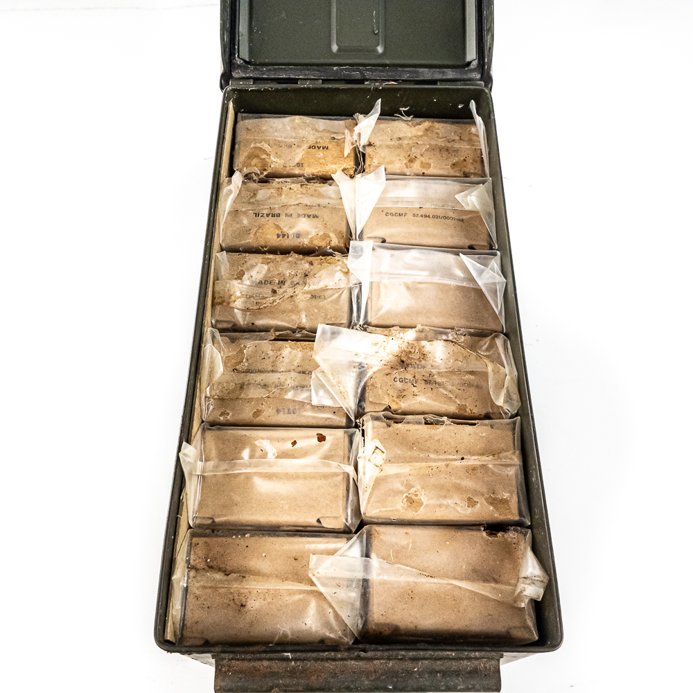 480 rounds of caliber 7.62 Nato Ammunition. Ammunition is 1976 dated Brazilian CBC made Ammunition. Being dated 1976 means it is safe Ammunition made after the recalled military ammunition. ammunition is in sealed factory 20 round boxes and comes in a military 50 caliber ammunition can. See photos.
