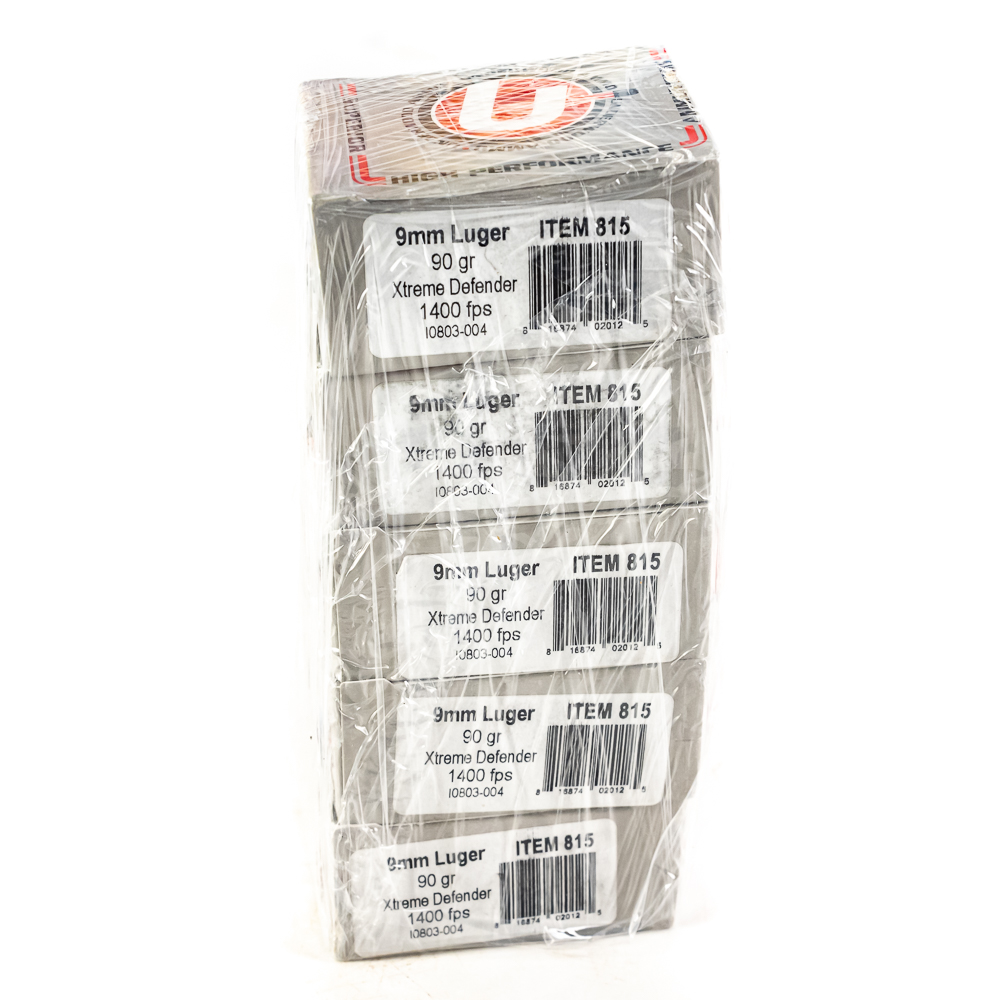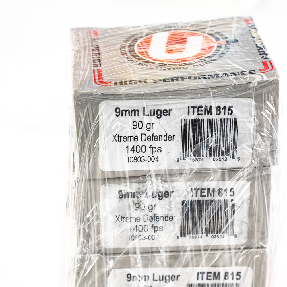 100rds of caliber 9mm Luger ammunition. Ammunition is Underwood Xtreme Defender 90gr. Copper monolithic bullet ammunition. 1400fps bullets work like hollow points but are solid copper bullets. Very hard to find in quantity. See photos.