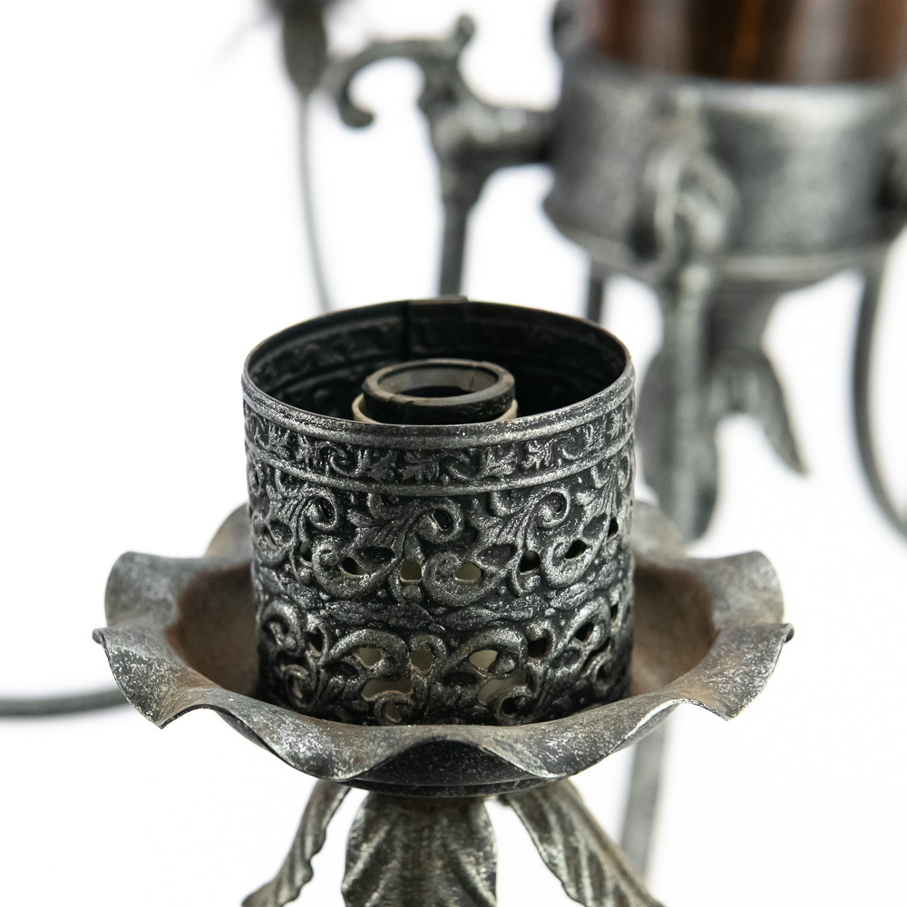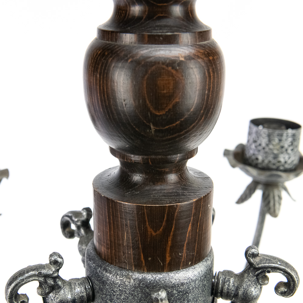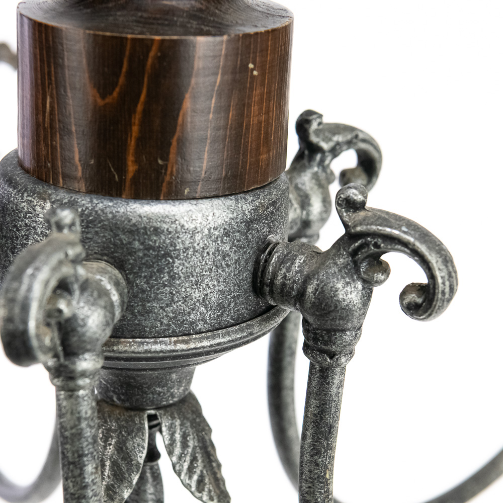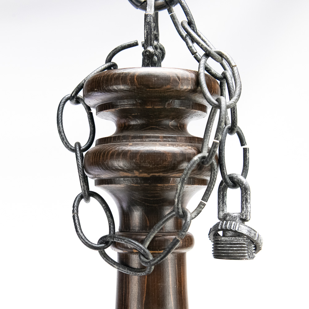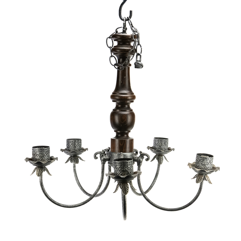 Handsome wood & metal 24″ Chandelier in good overall condition. Some age and wear on the wood base and will require rewiring as it has been cut. Perfect addition to your home, please use photos to judge condition and bid accordingly.