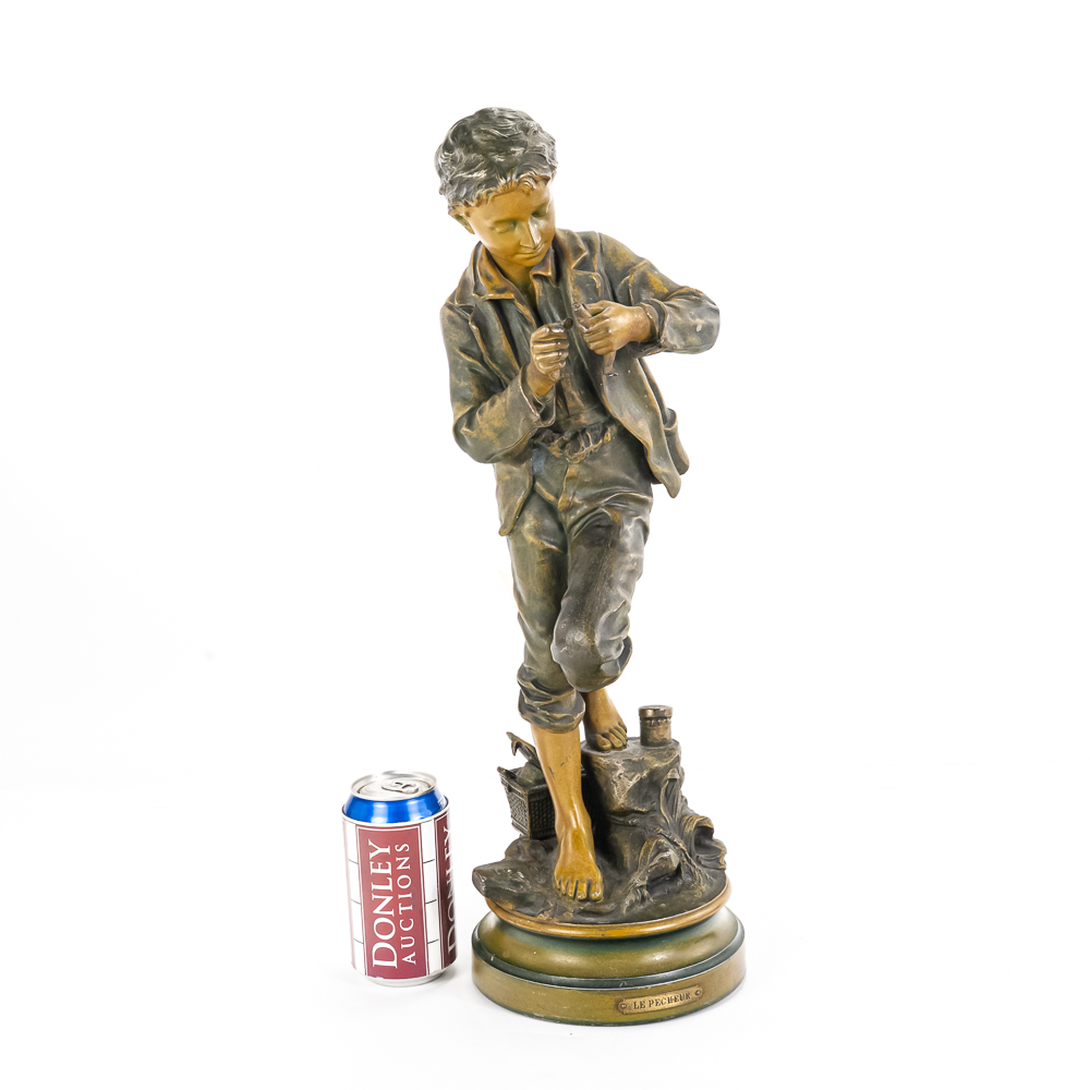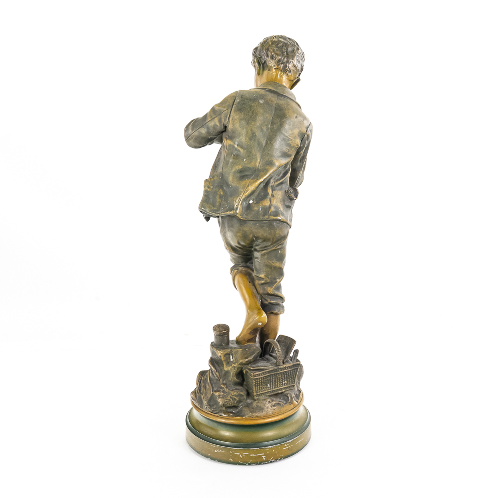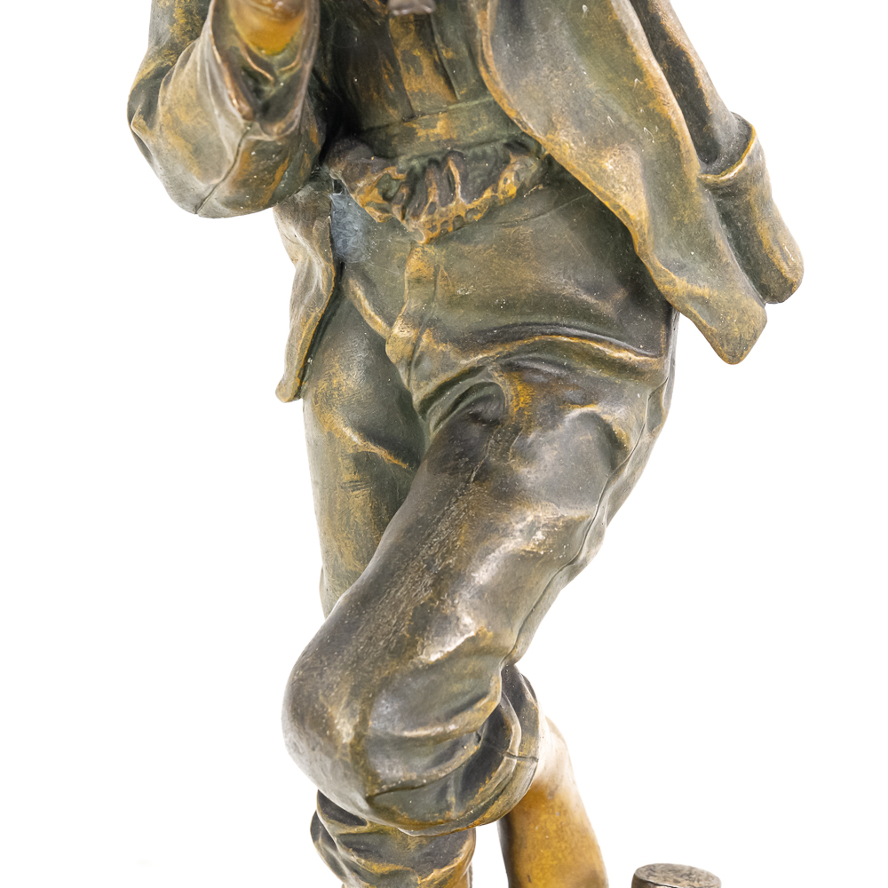 Painted metal sculpture fashioned after original bronze.Dates circa 1930’s. Measures 6 3/4″ diameter 21 1/2″ highGood condition